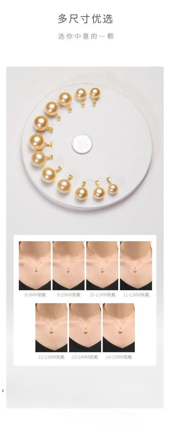 Everlasting Leaf Young South Sea Gold Pearl Pendant Single Strong Glossy Seawater Women's Deep Gold Perfect Round Pearl Diameter 16mm