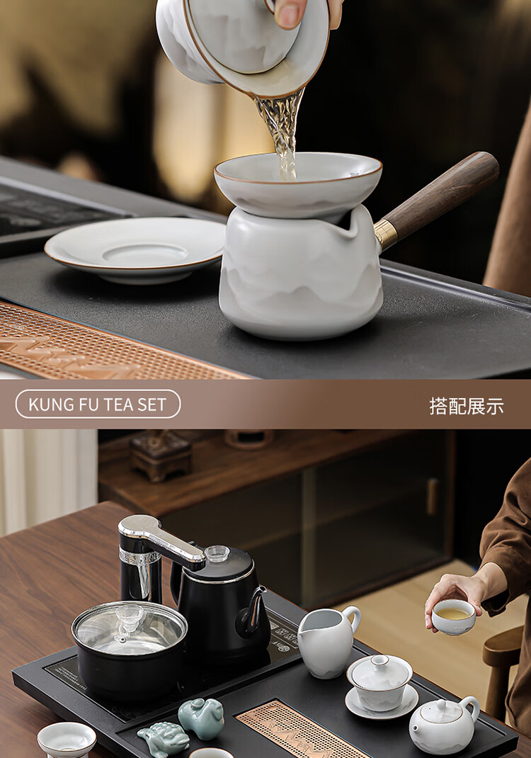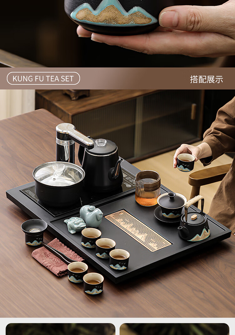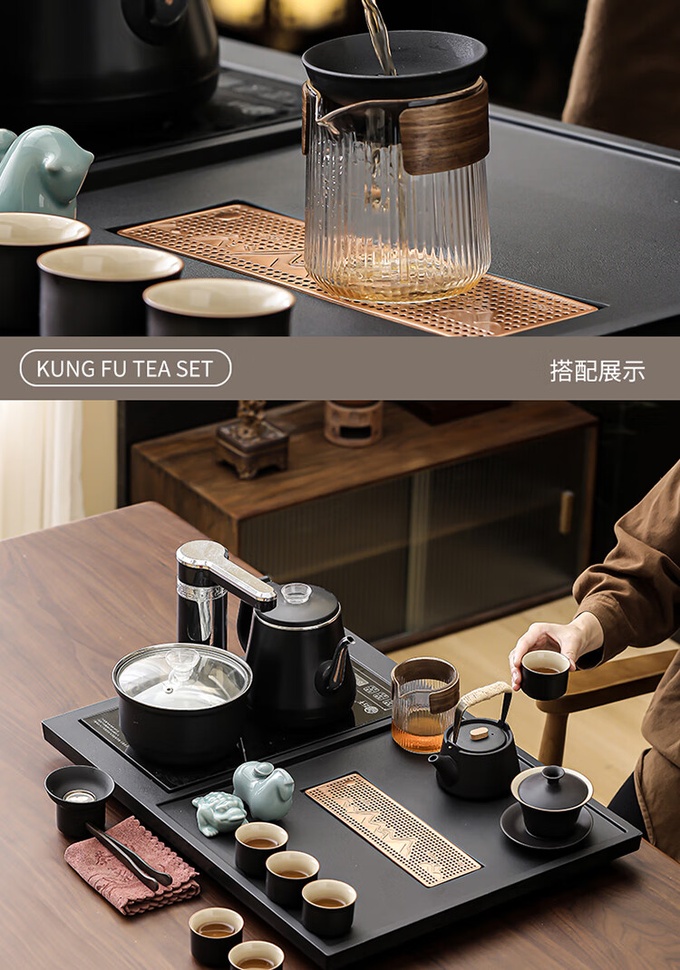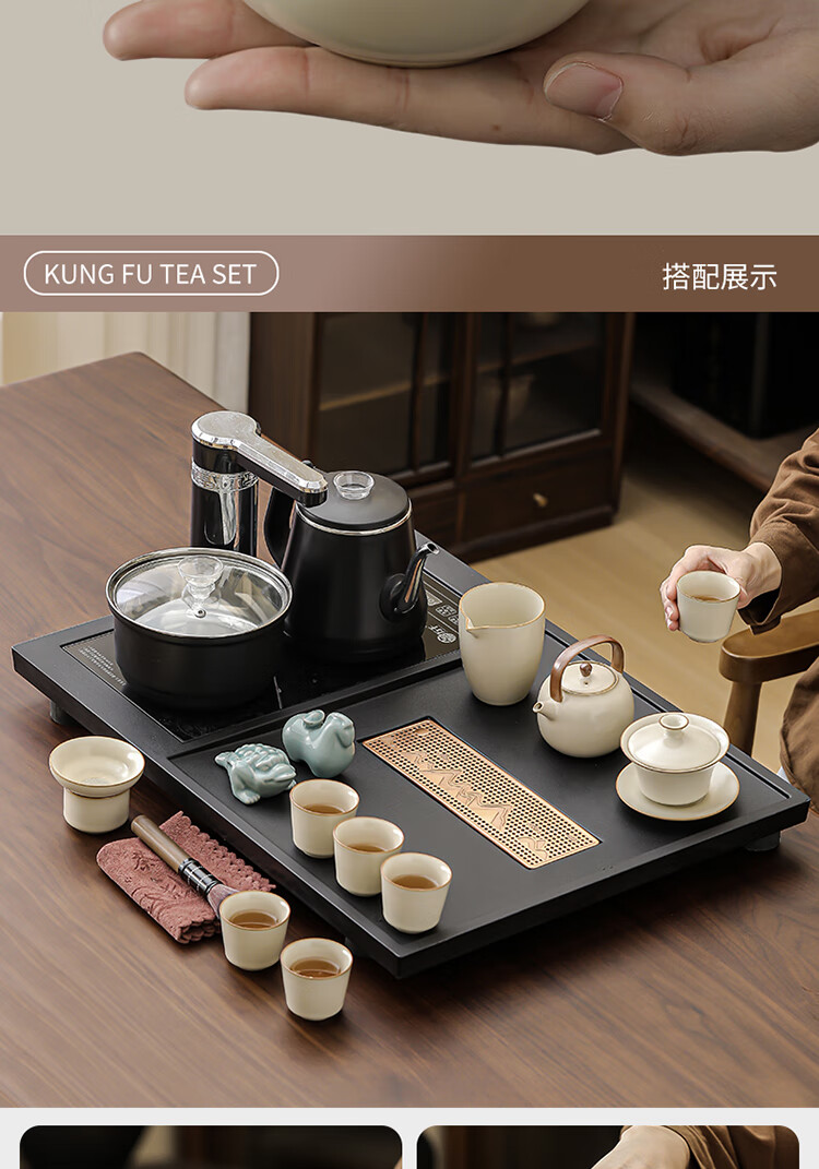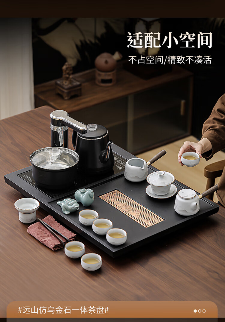 Dameng Zaozhuo's new imitation stone Wujin stone automatic water-filling small tea set simple household beige Ru kiln Kung Fu tea set Yuanshan imitation Wujin stone integrated tea tray 60*45 + double-layer anti-scalding automatic water boiling appliance