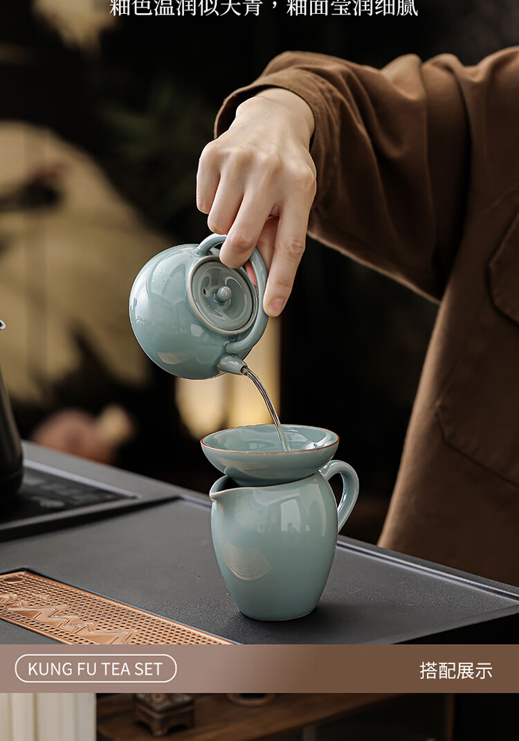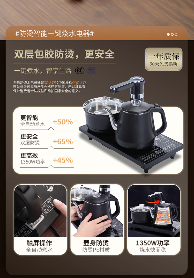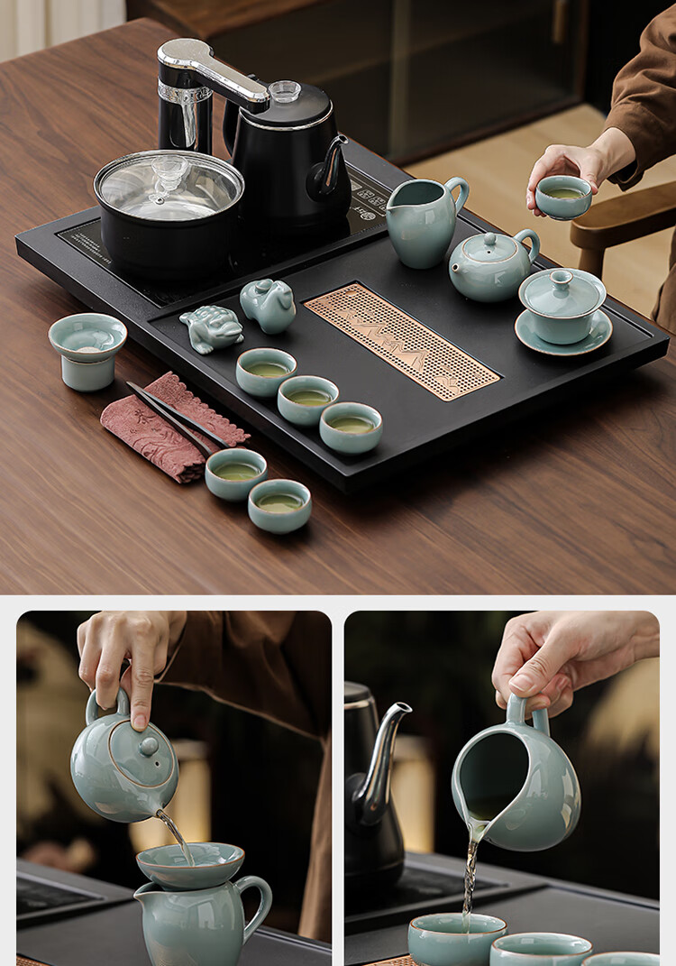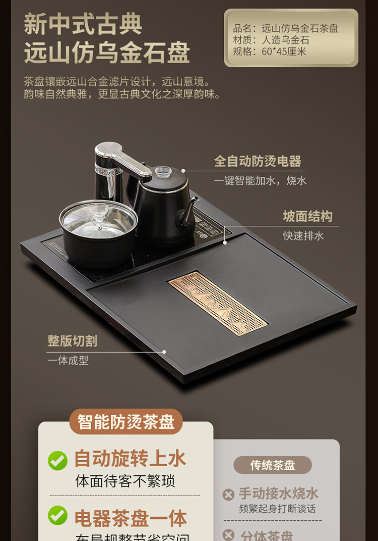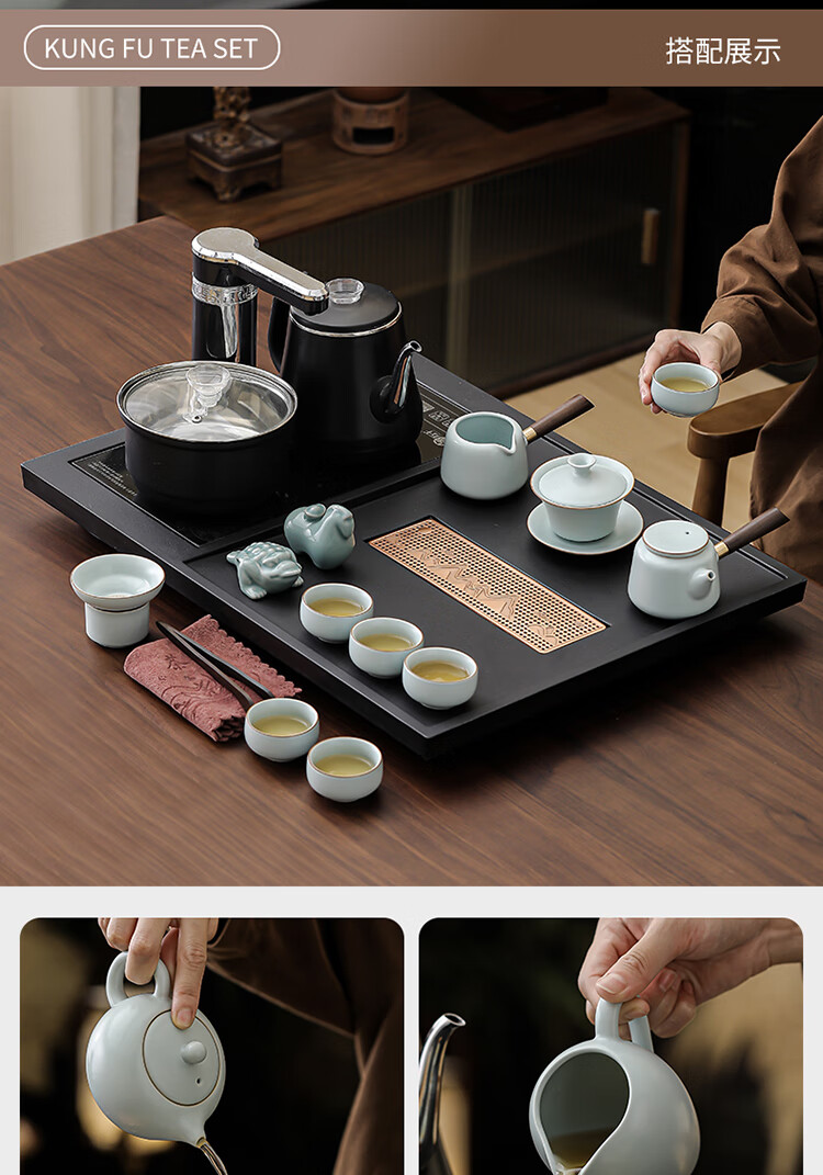 Dameng Zaozhuo's new imitation stone Wujin stone automatic water-filling small tea set simple household beige Ru kiln Kung Fu tea set Yuanshan imitation Wujin stone integrated tea tray 60*45 + double-layer anti-scalding automatic water boiling appliance