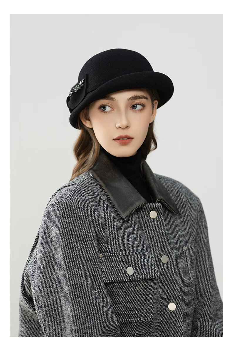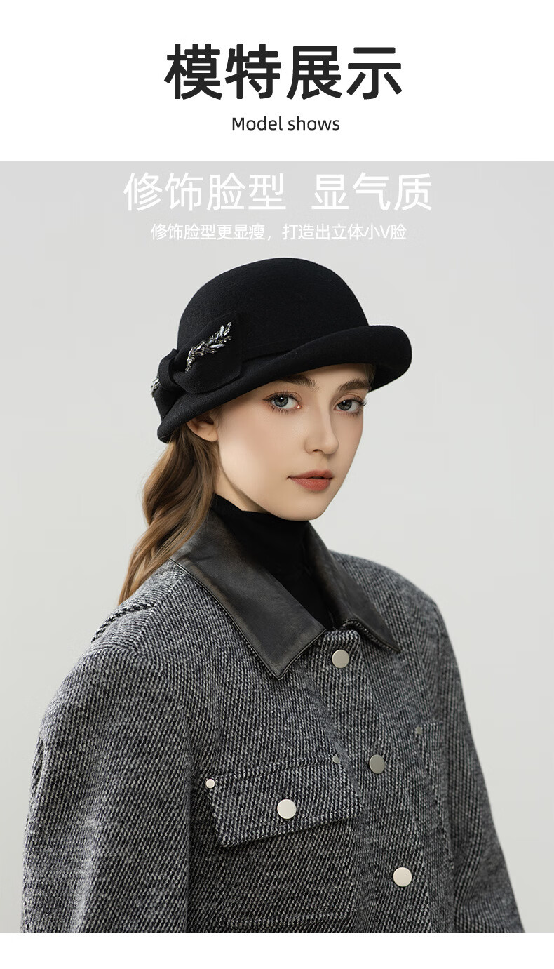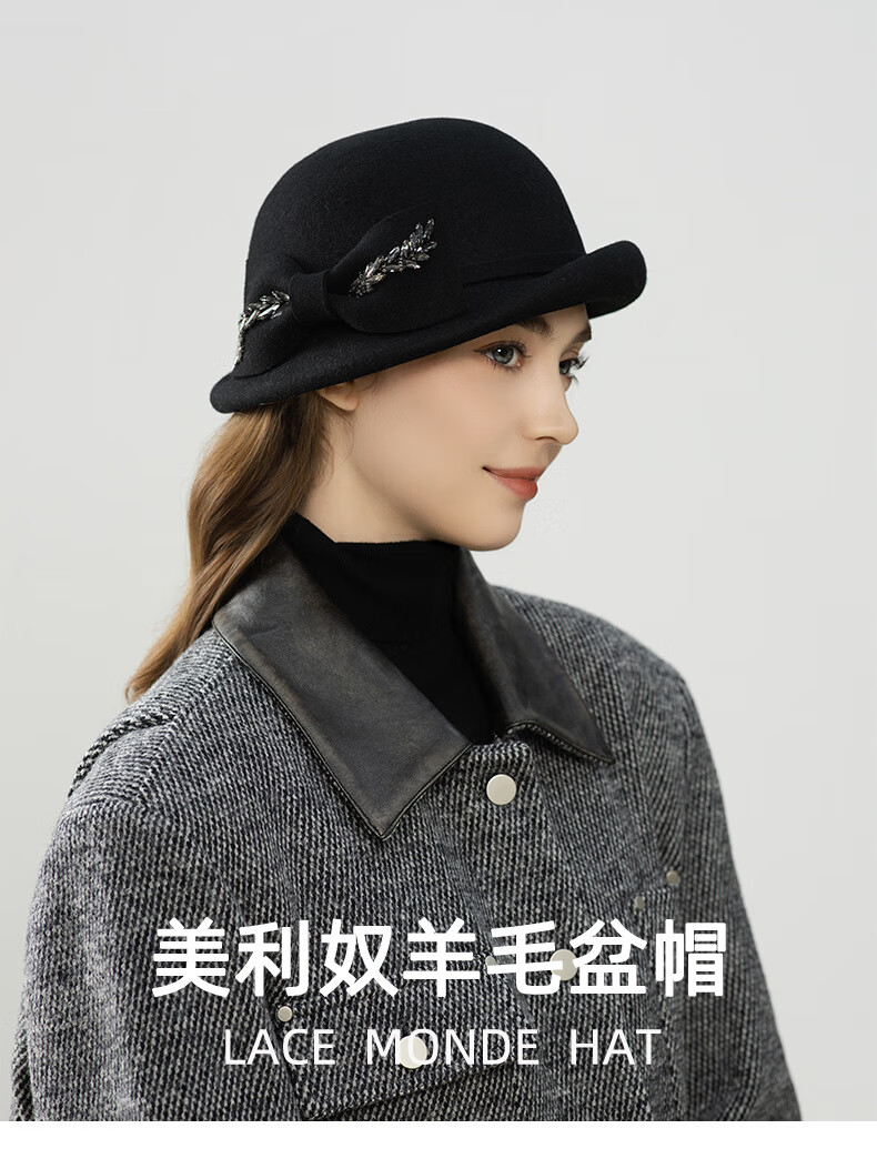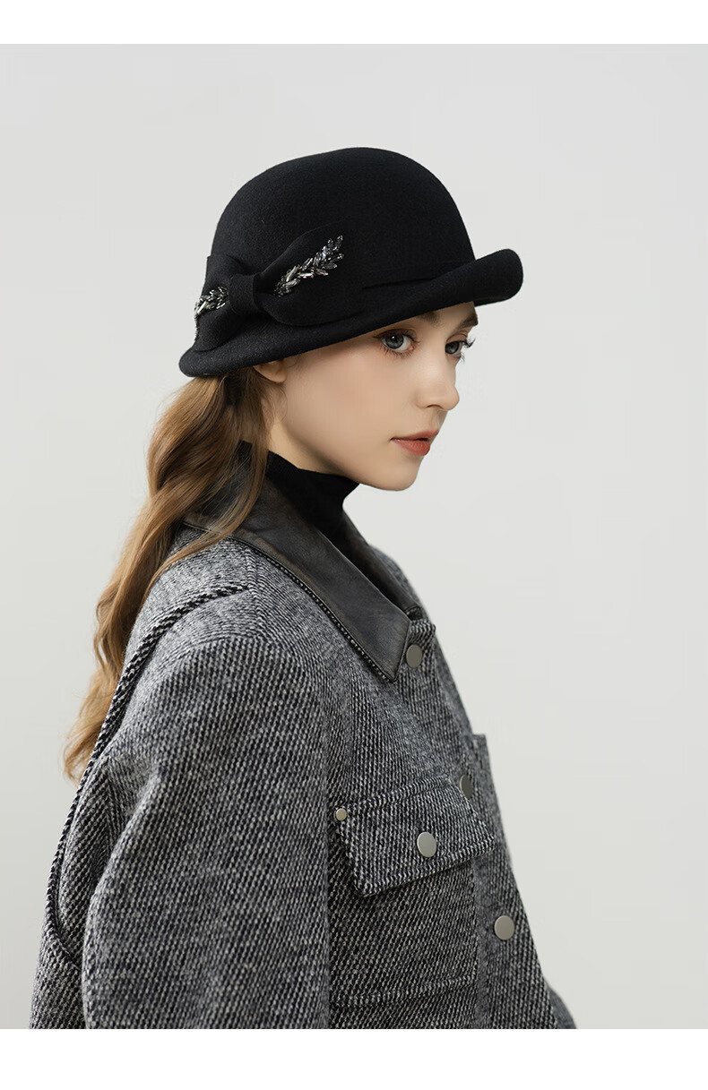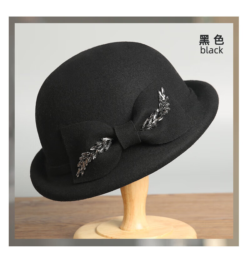 GEFWEIMKL Merino Wool Hat Women's Autumn and Winter New Bow Hepburn Style Women's Fashion Hat Elegant Warm Basin Hat Black Adjustable (56-58cm)