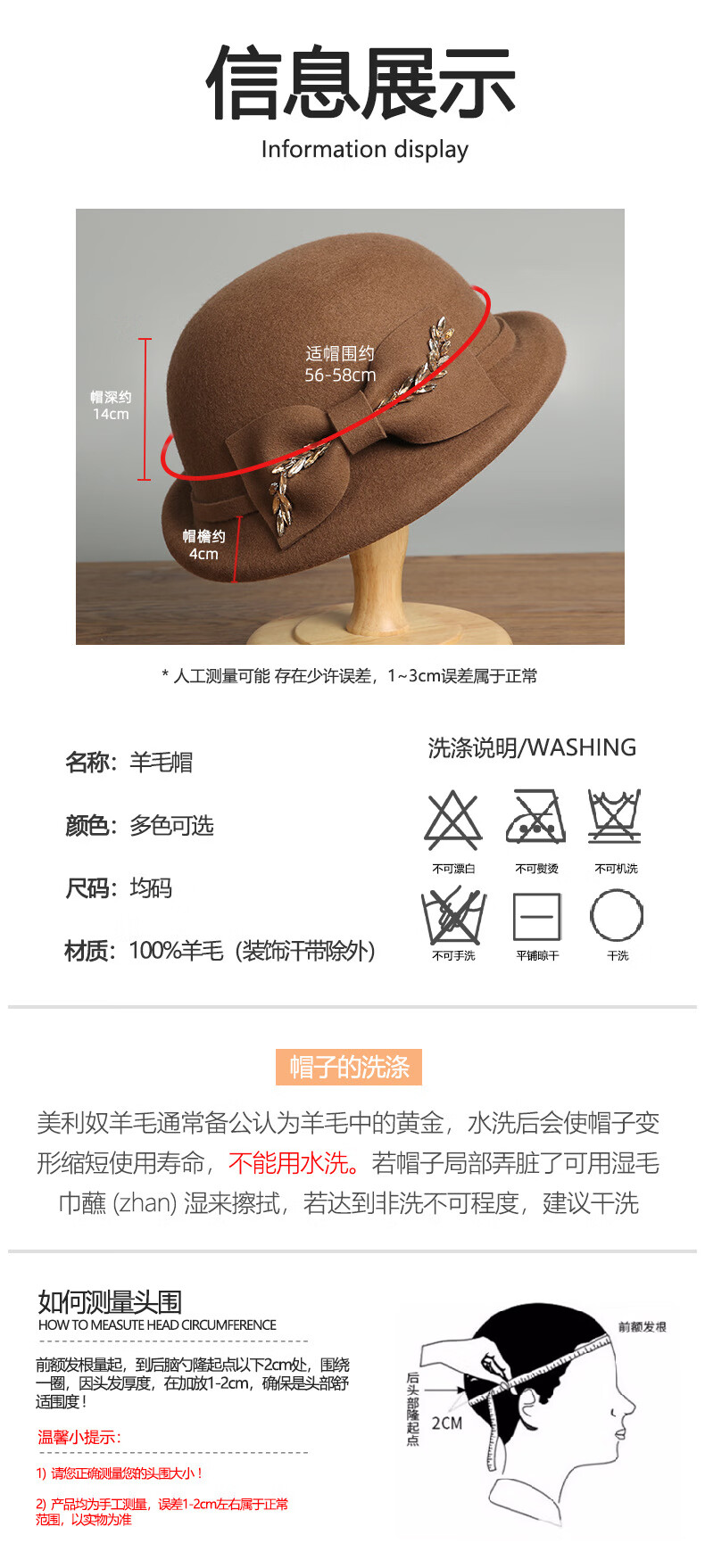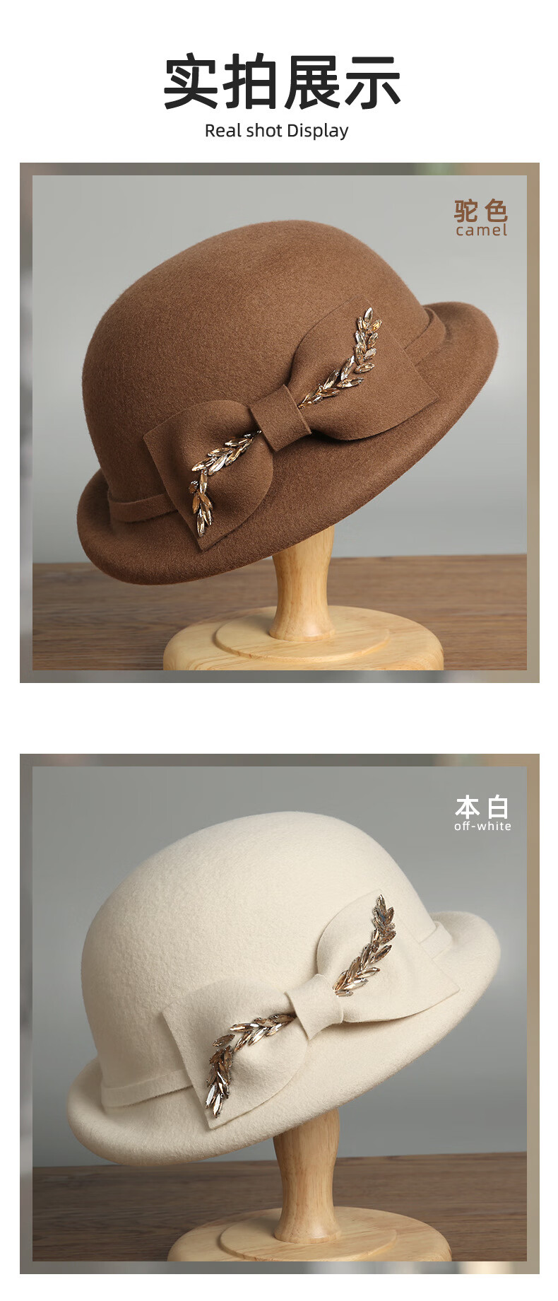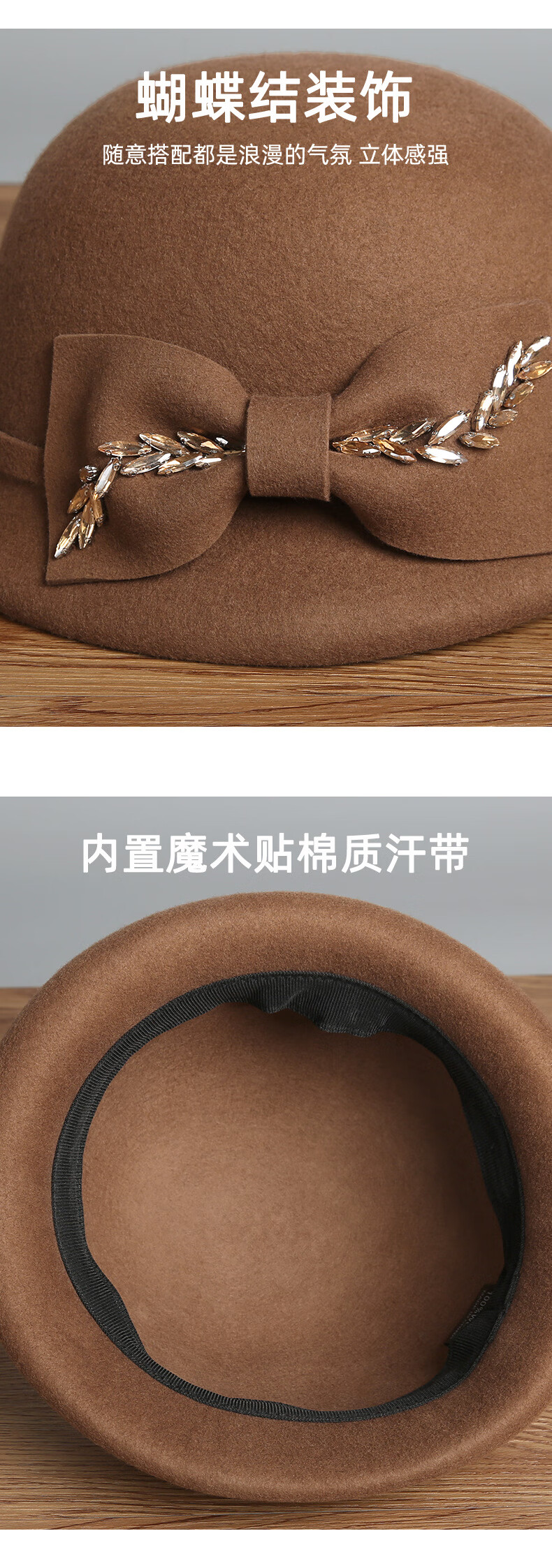 GEFWEIMKL Merino Wool Hat Women's Autumn and Winter New Bow Hepburn Style Women's Fashion Hat Elegant Warm Basin Hat Black Adjustable (56-58cm)