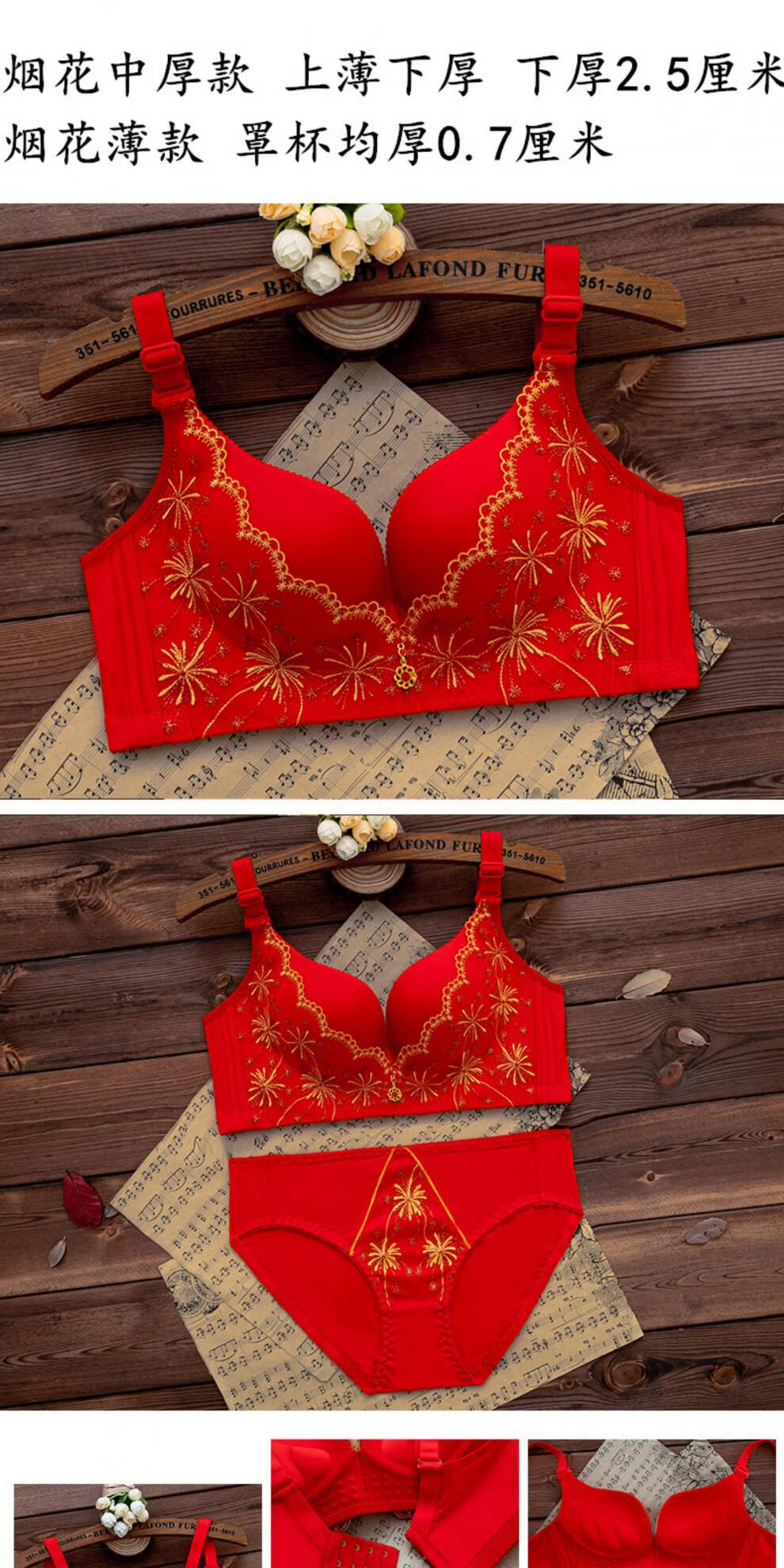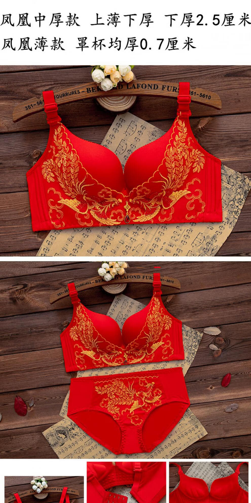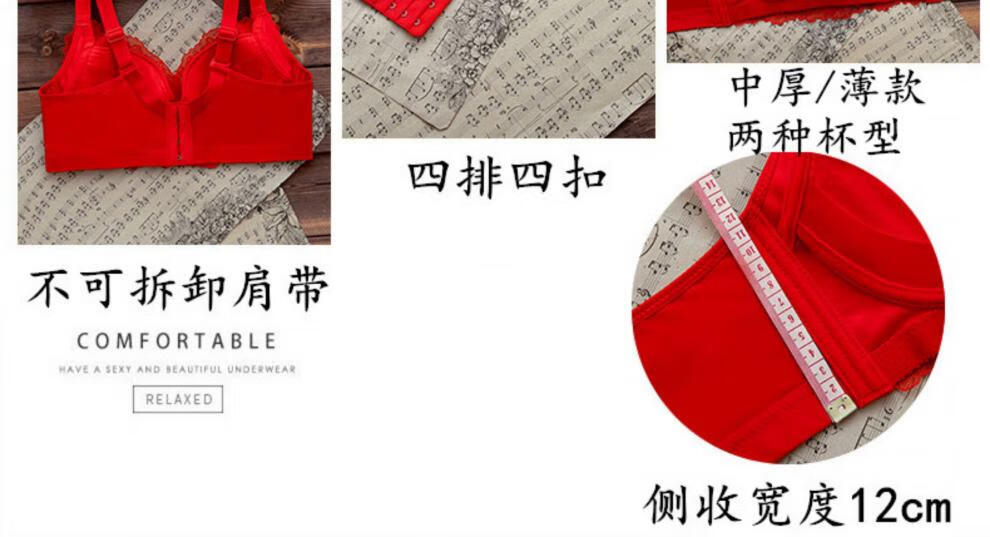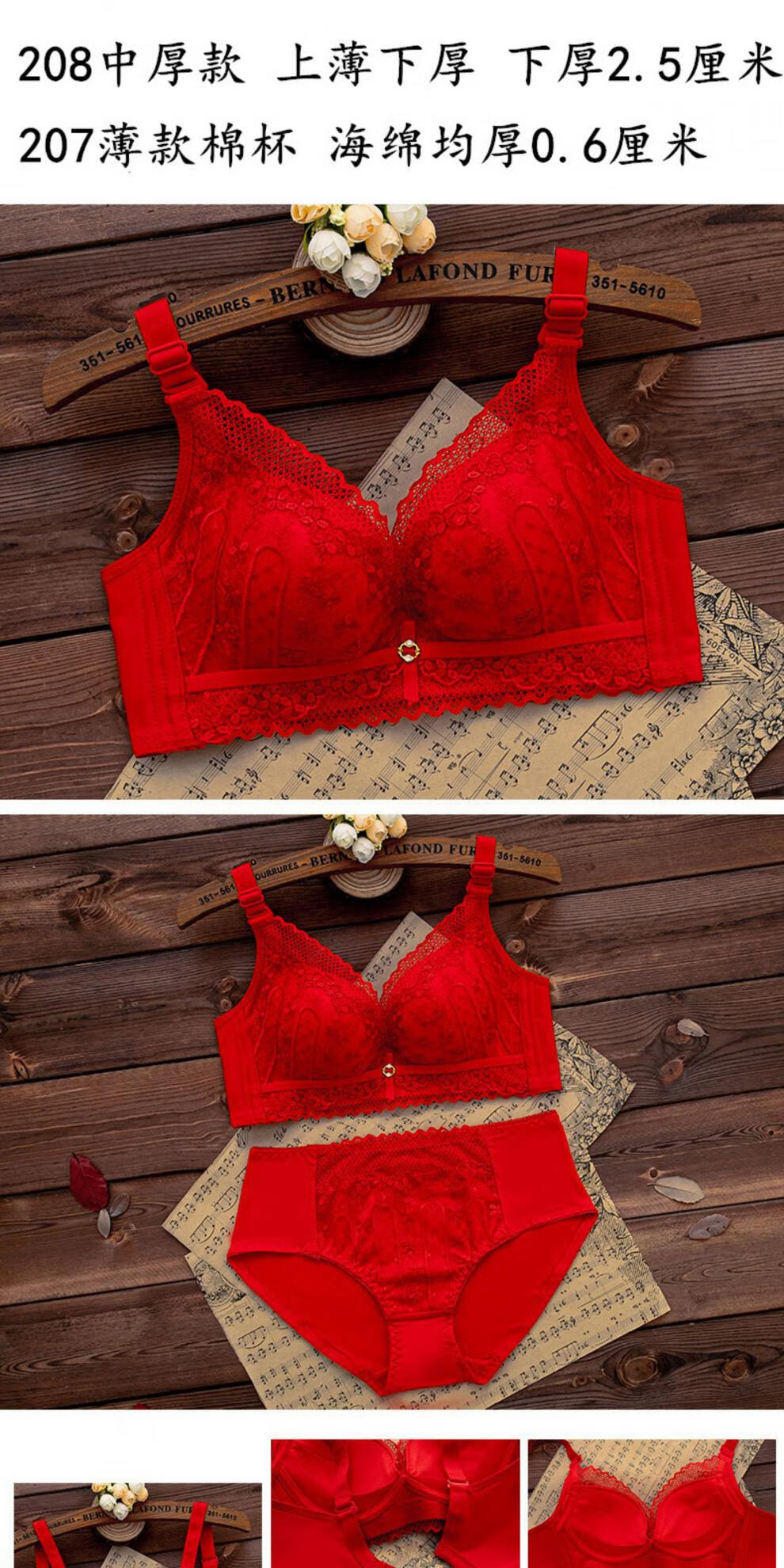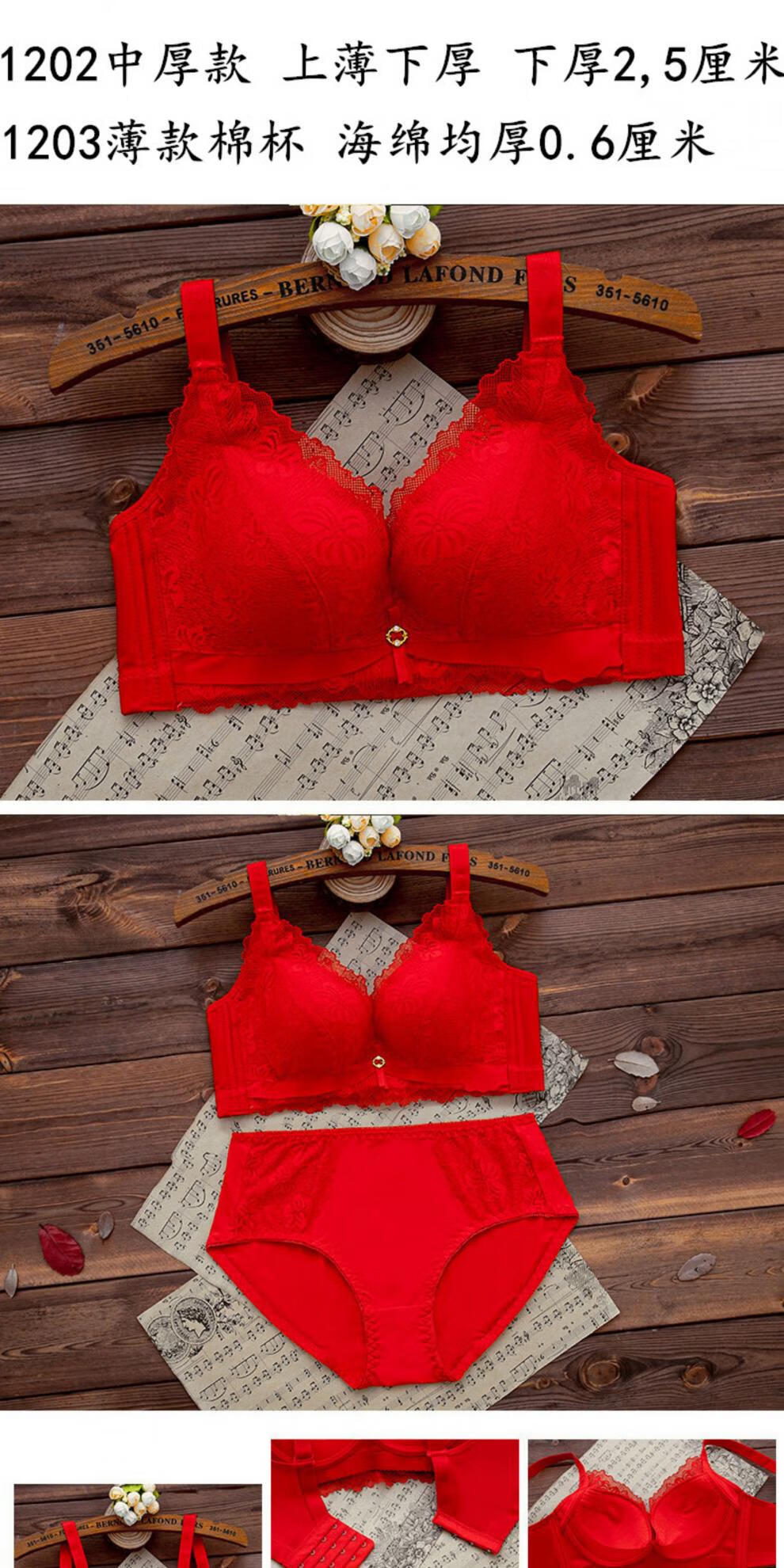 LangSha (LangSha) zodiac year red underwear set for women with big breasts, no steel ring push-up bra, wedding bride, small bra 1202 red set (medium thickness) 80B 36