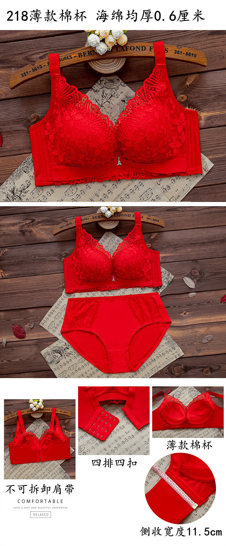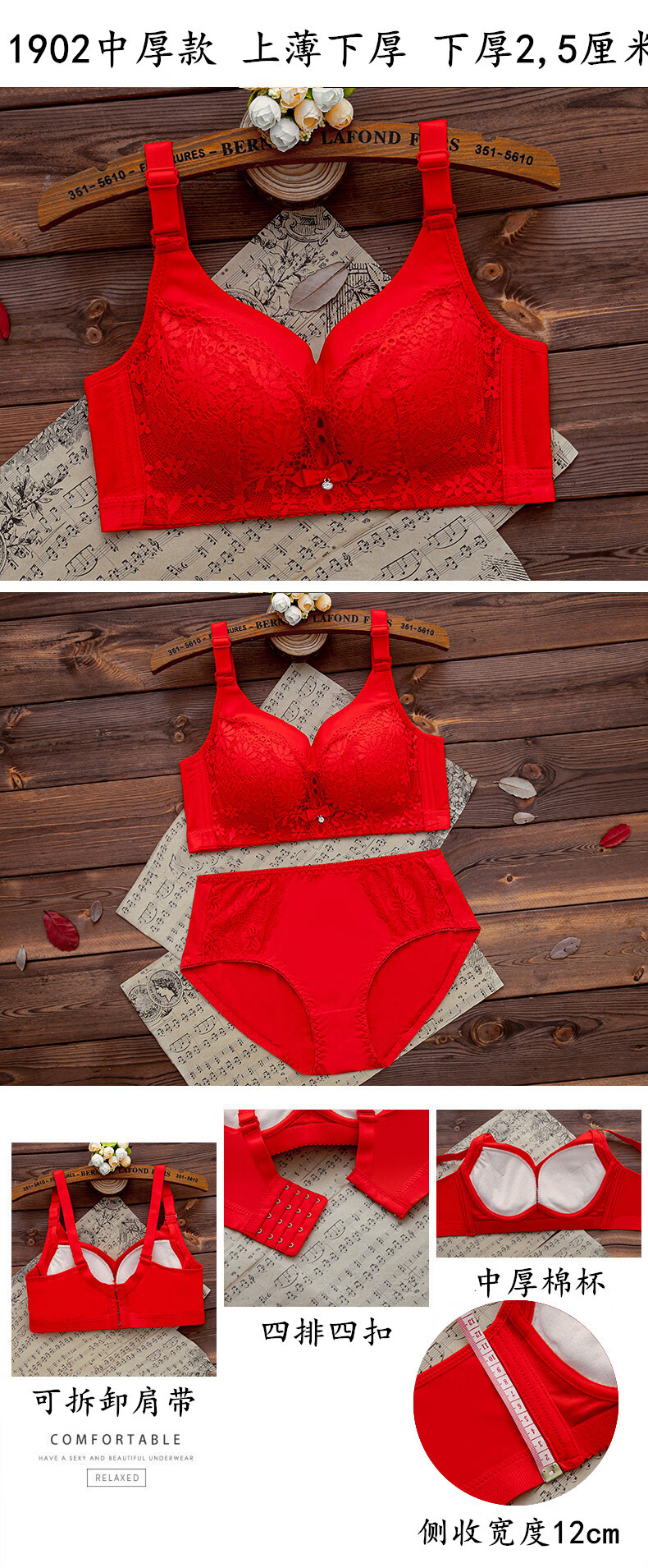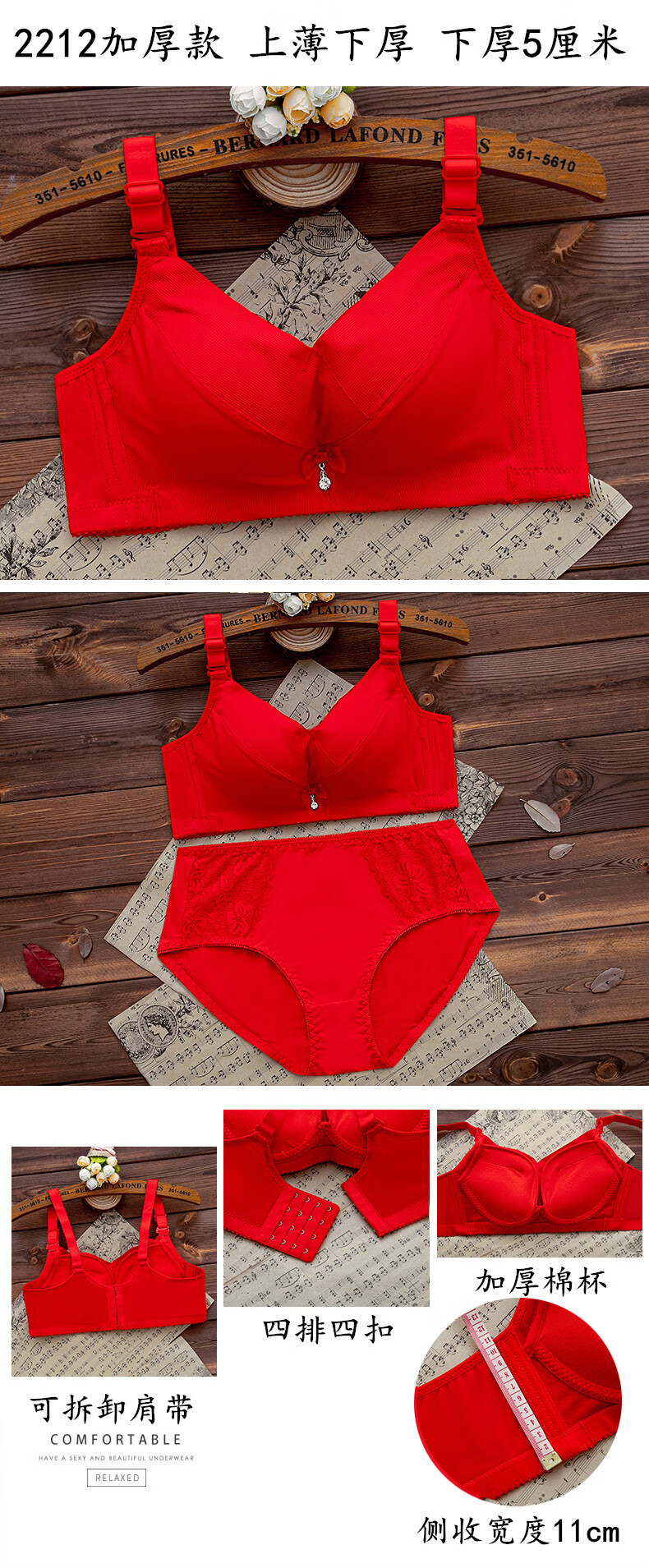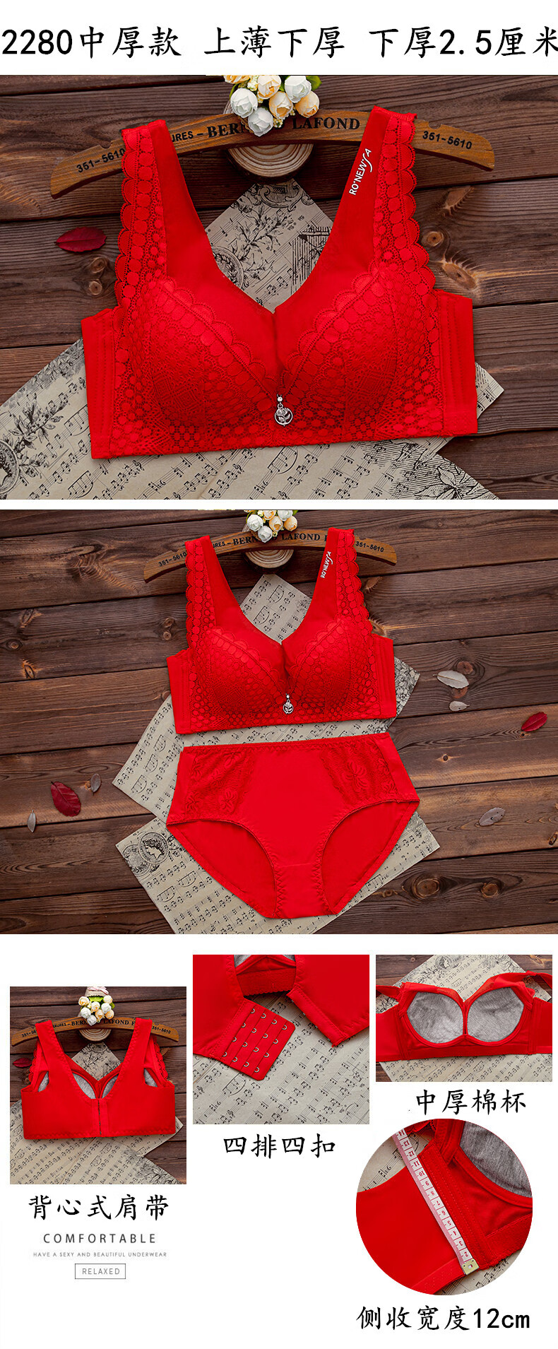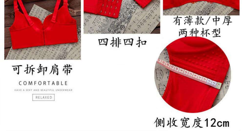 LangSha (LangSha) zodiac year red underwear set for women with big breasts, no steel ring push-up bra, wedding bride, small bra 1202 red set (medium thickness) 80B 36