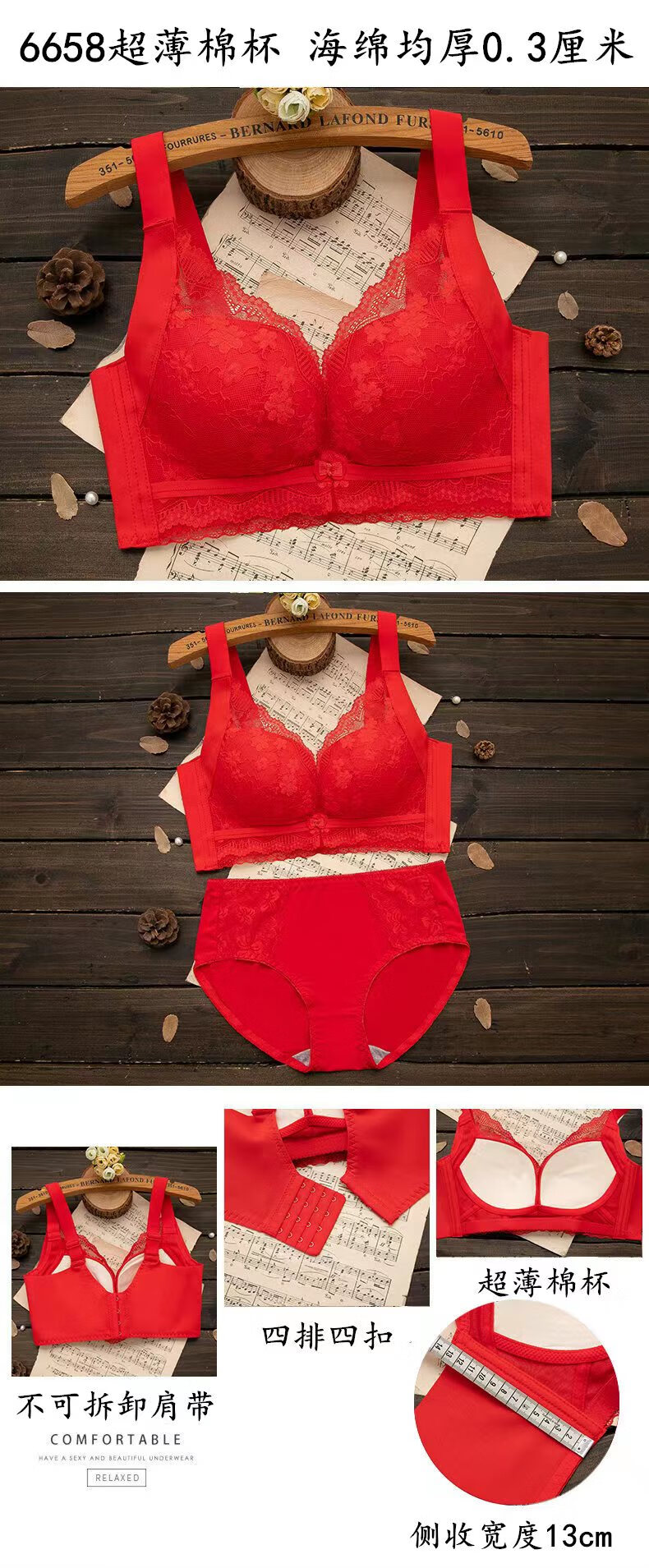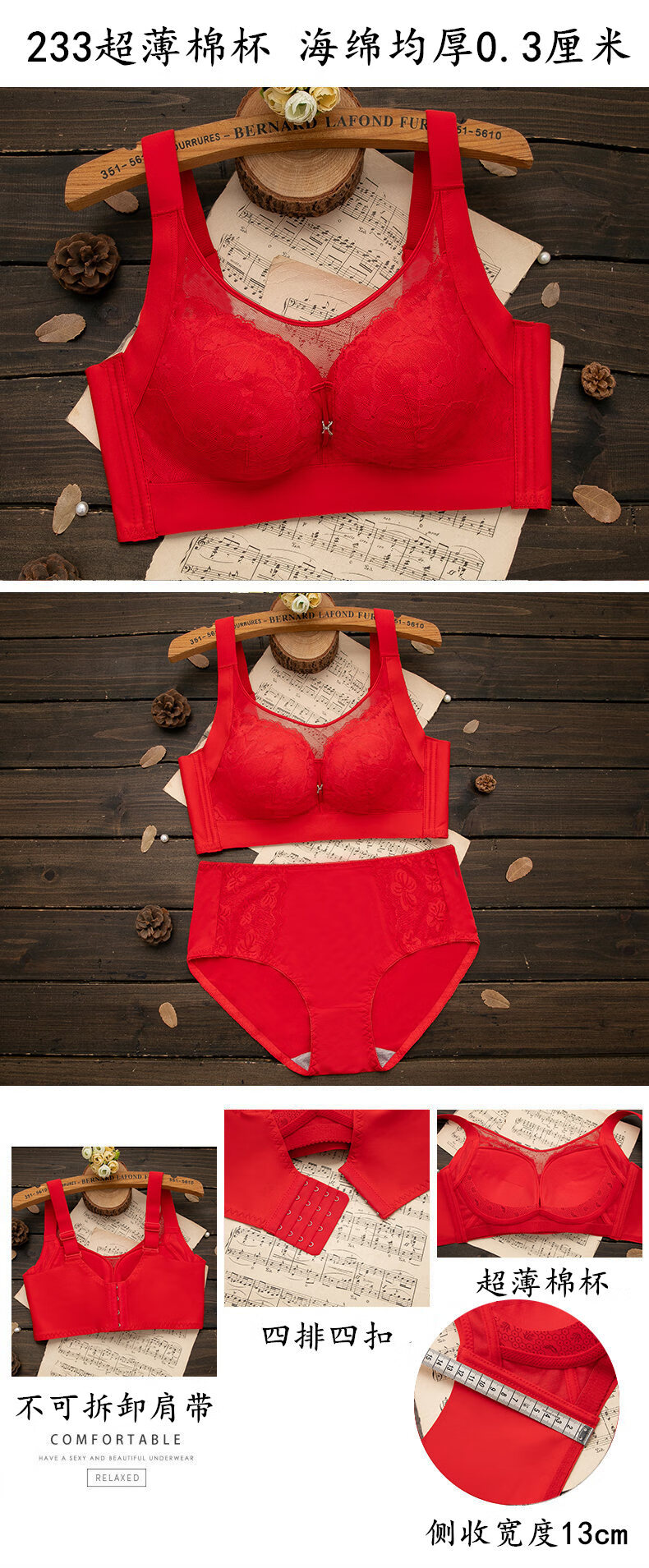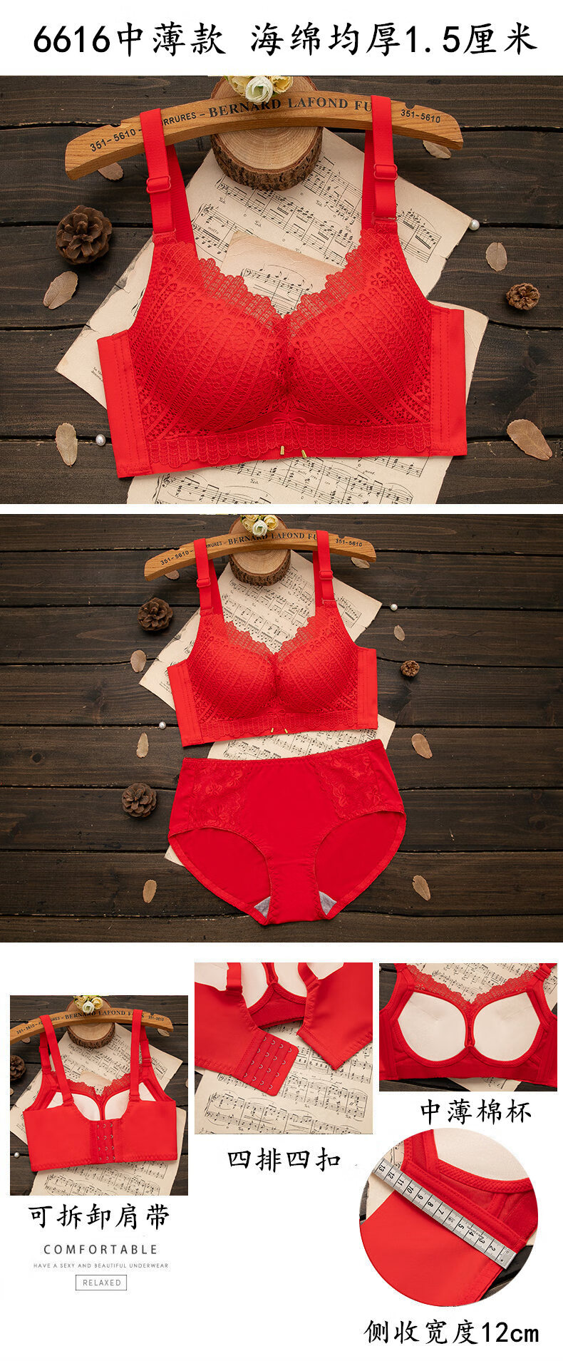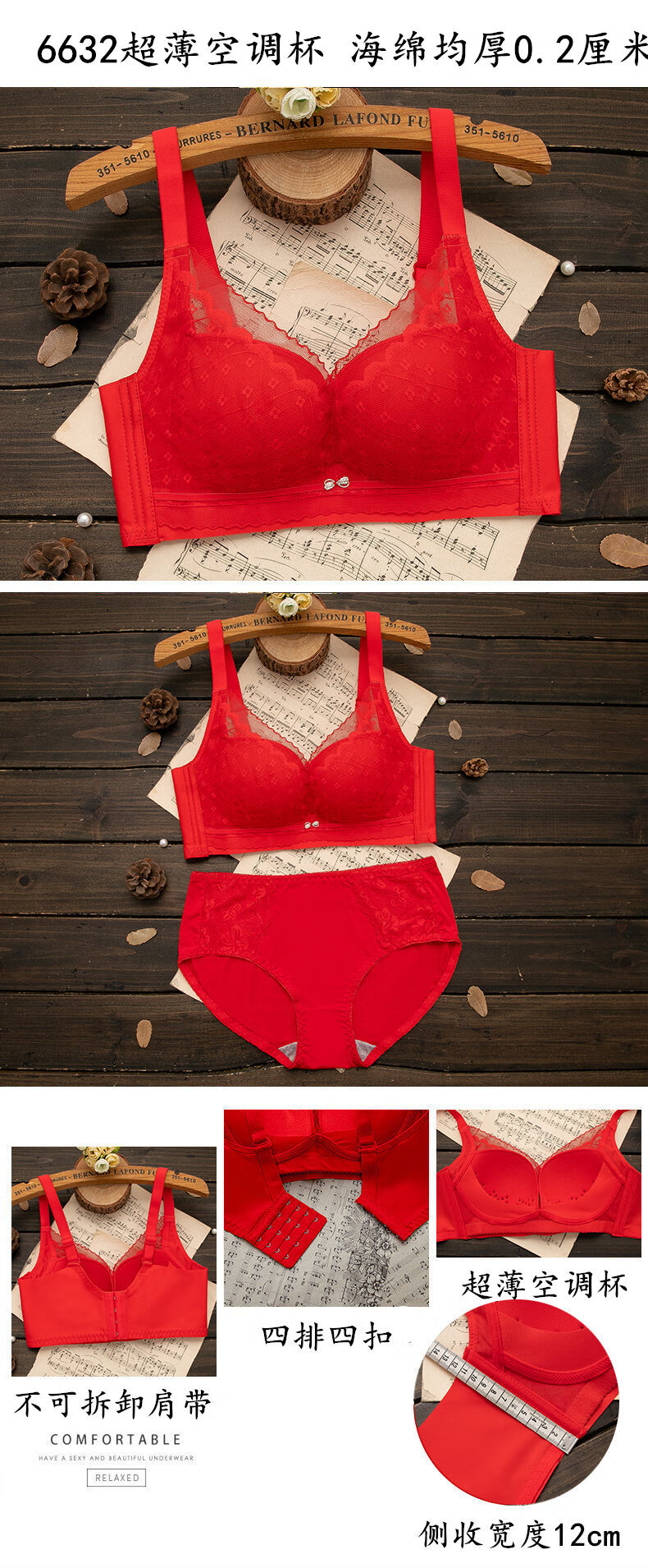 LangSha (LangSha) zodiac year red underwear set for women with big breasts, no steel ring push-up bra, wedding bride, small bra 1202 red set (medium thickness) 80B 36