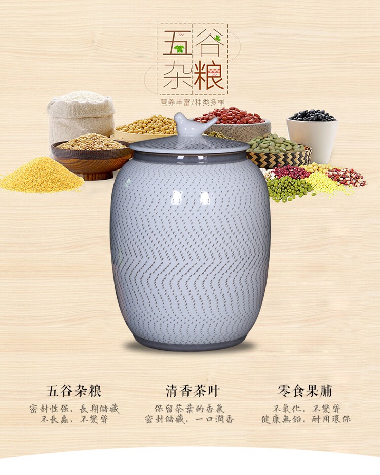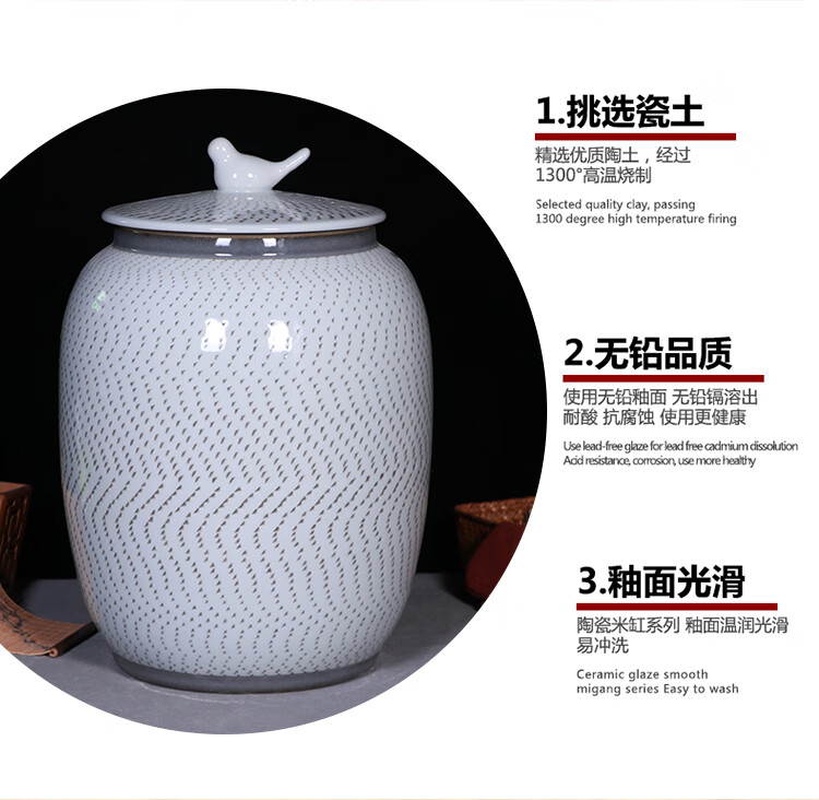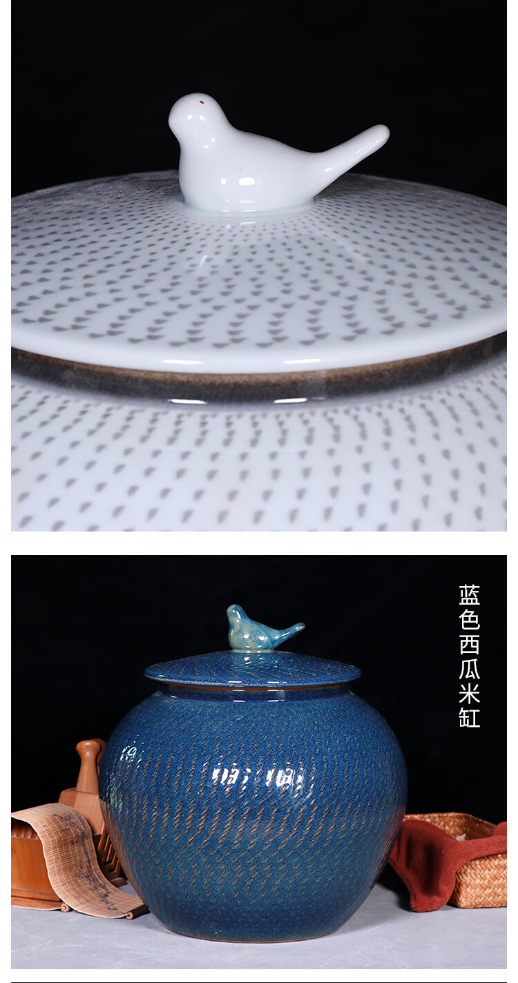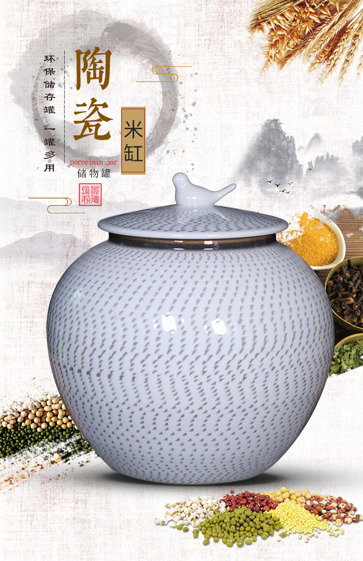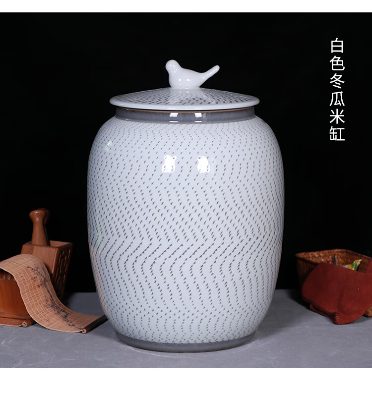 Fumi cylinder rice bucket Jingdezhen ceramic household 20 Jin Jin equals 0.5 kg 30 Jin Jin equals 0.5 kg Flour bucket moisture-proof and insect-proof with lid seal White winter melon 30 Jin Jin equals 0.5 kg Water capacity