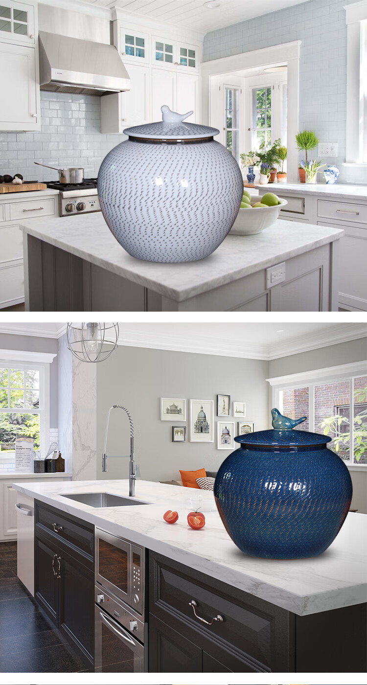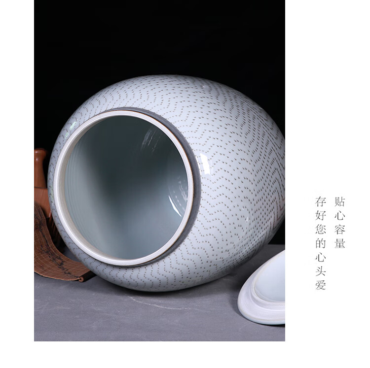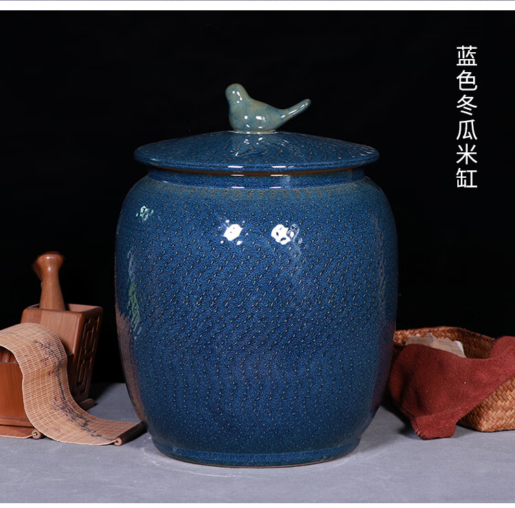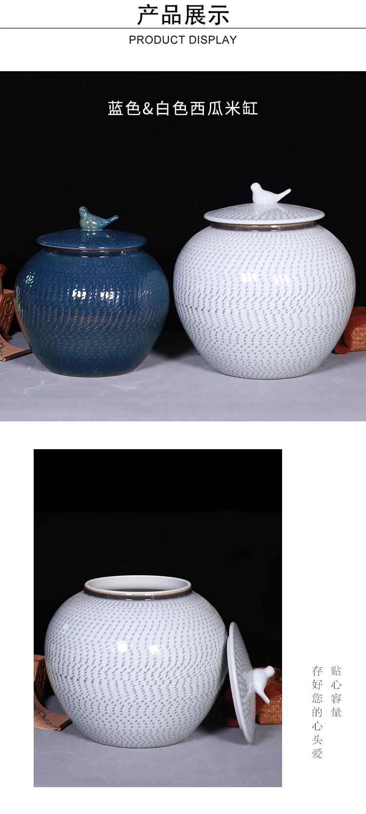 Fumi cylinder rice bucket Jingdezhen ceramic household 20 Jin Jin equals 0.5 kg 30 Jin Jin equals 0.5 kg Flour bucket moisture-proof and insect-proof with lid seal White winter melon 30 Jin Jin equals 0.5 kg Water capacity