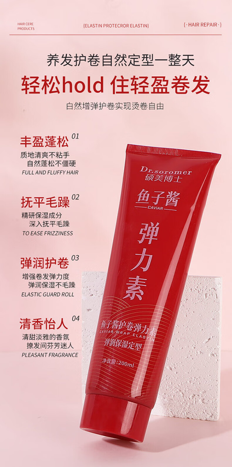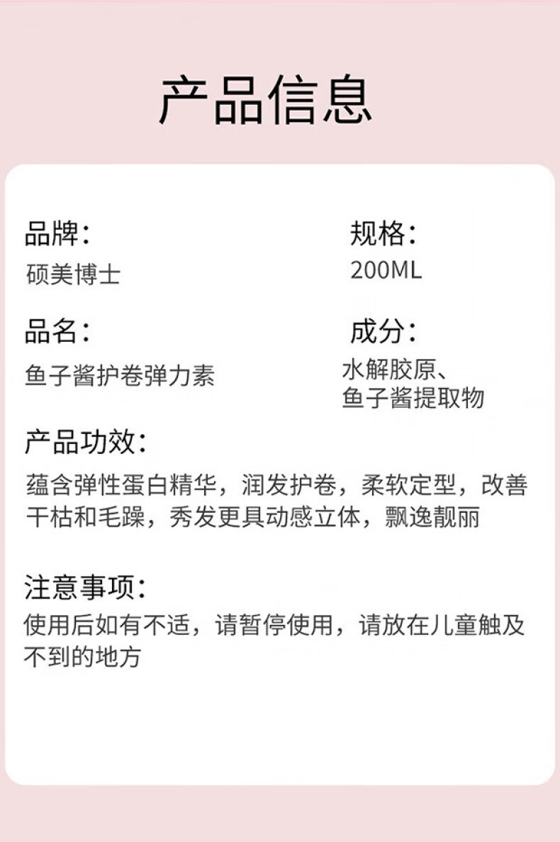 Dr. Shuomei Caviar Curl Protective Elastin is refreshing, fluffy and moisturizing, improves frizz, and has a long-lasting fragrance. 2 bottles 200ml/box