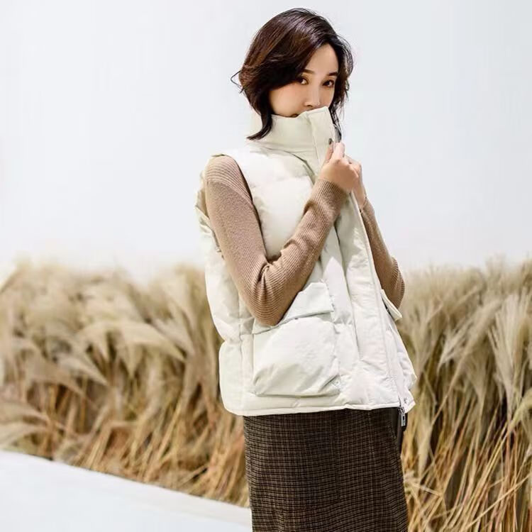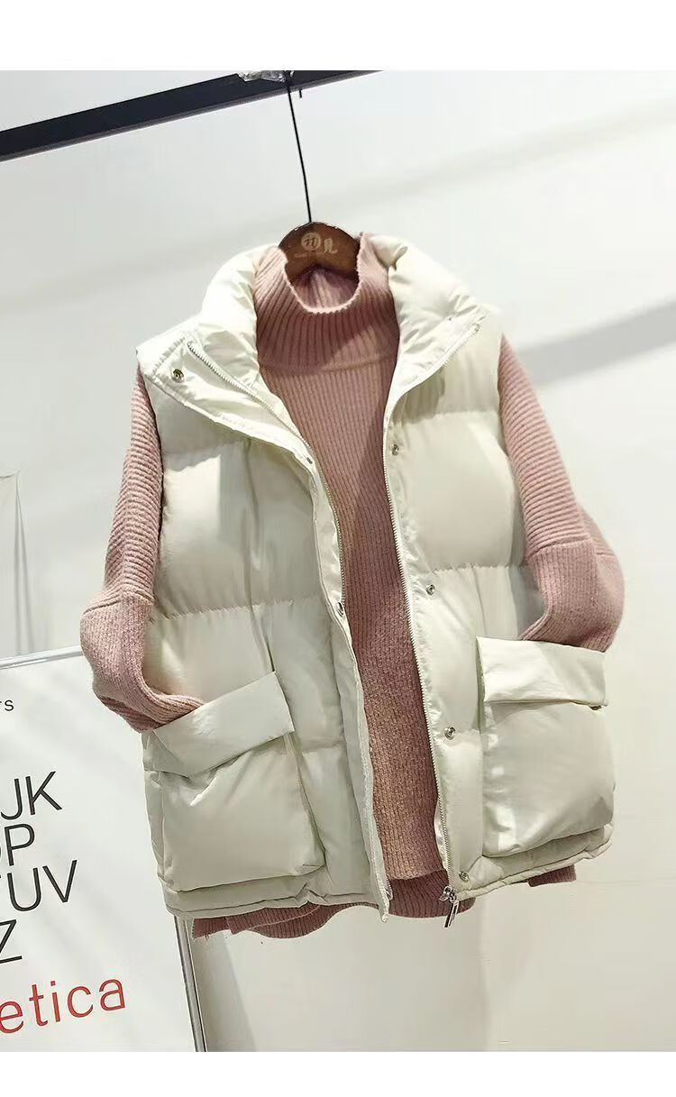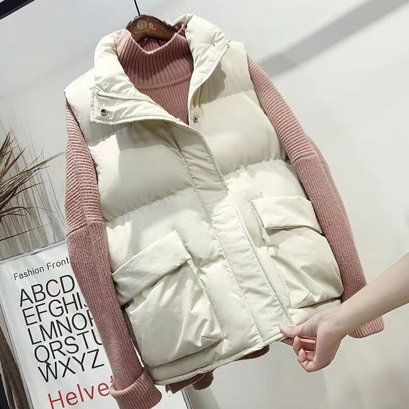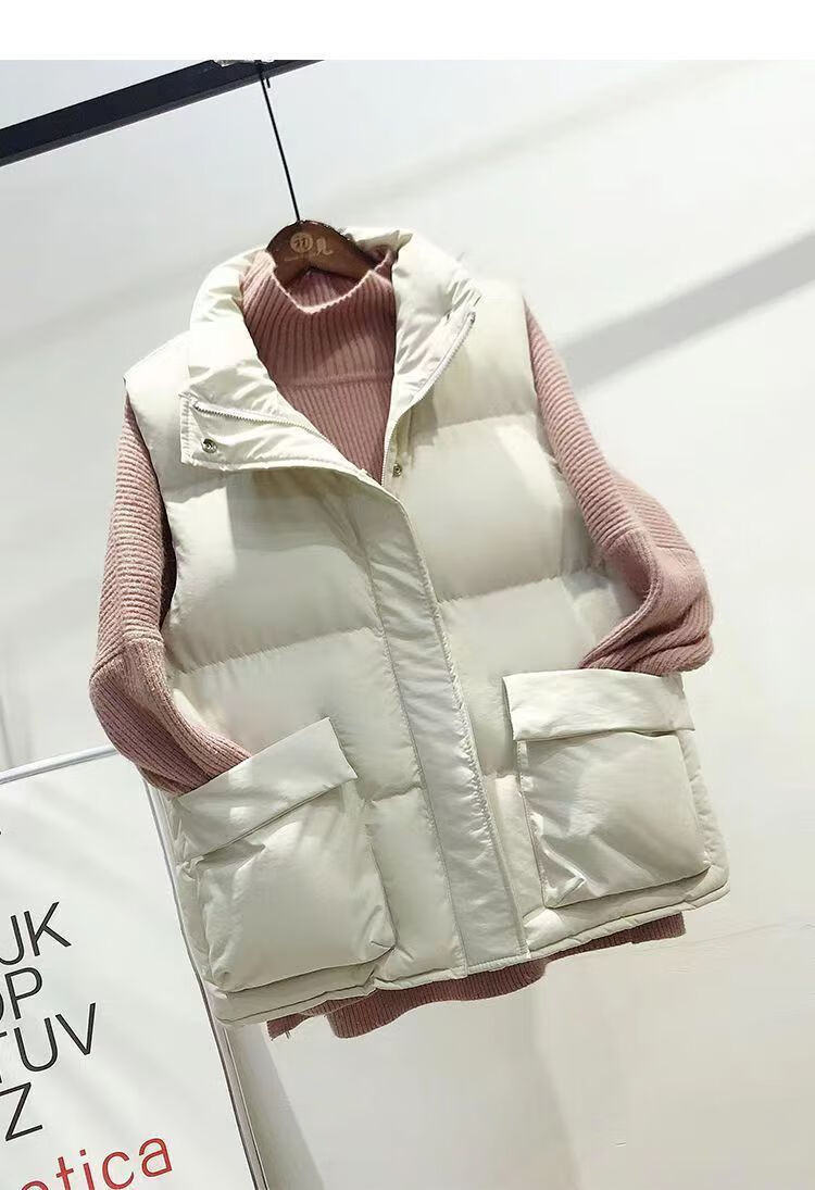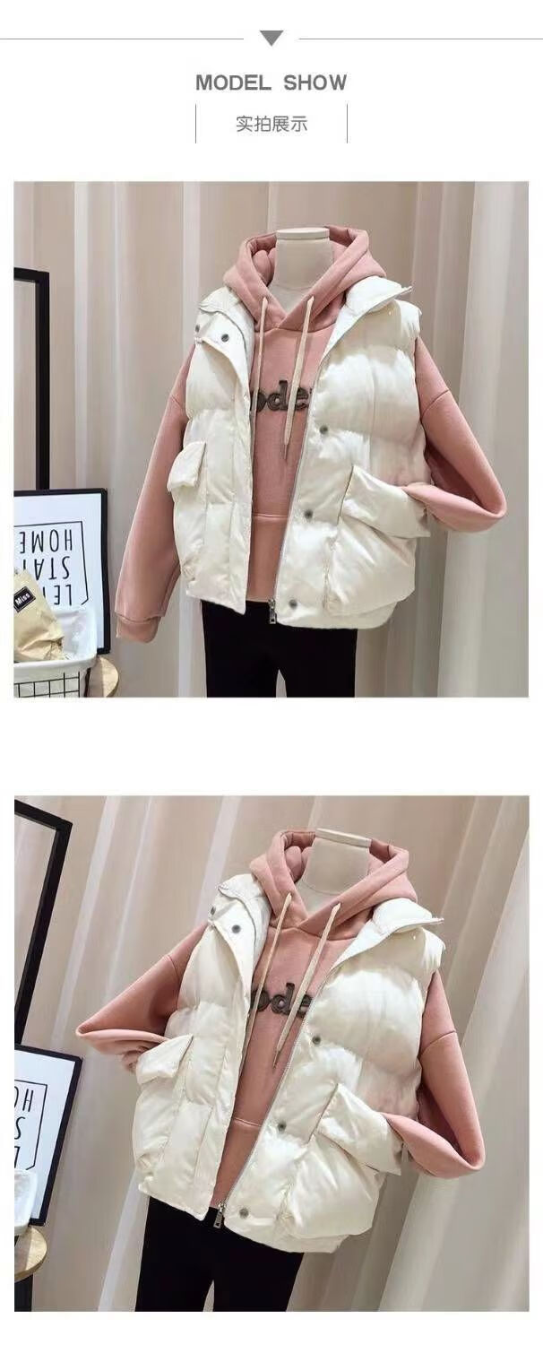 Sheng Saixi Vest Women's Jacket Women's Autumn and Winter Versatile 2025 Women's Vest New Down Cotton Vest Women's Outerwear Korean Style Loose Beige One Size Recommended 80-140 Jin Jin equals 0.5 kg
