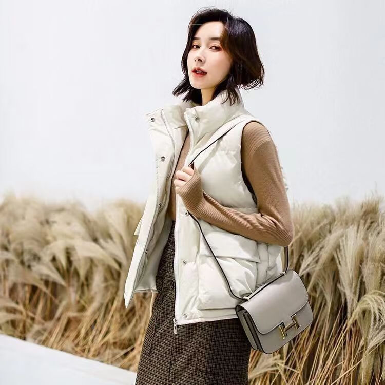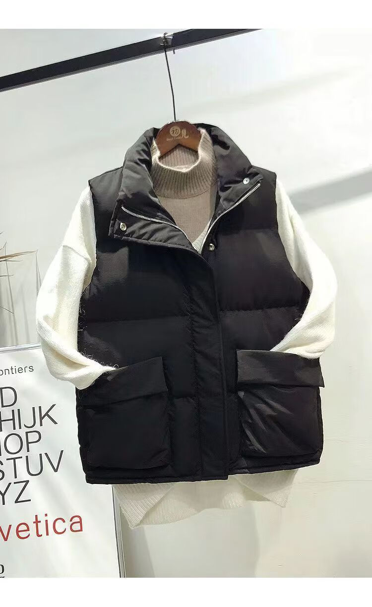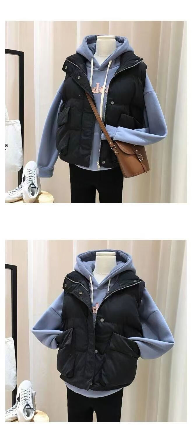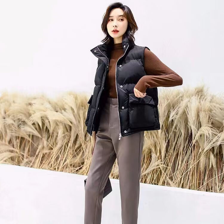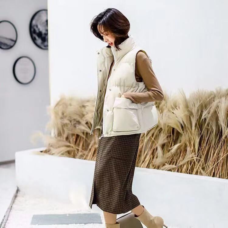 Sheng Saixi Vest Women's Jacket Women's Autumn and Winter Versatile 2025 Women's Vest New Down Cotton Vest Women's Outerwear Korean Style Loose Beige One Size Recommended 80-140 Jin Jin equals 0.5 kg