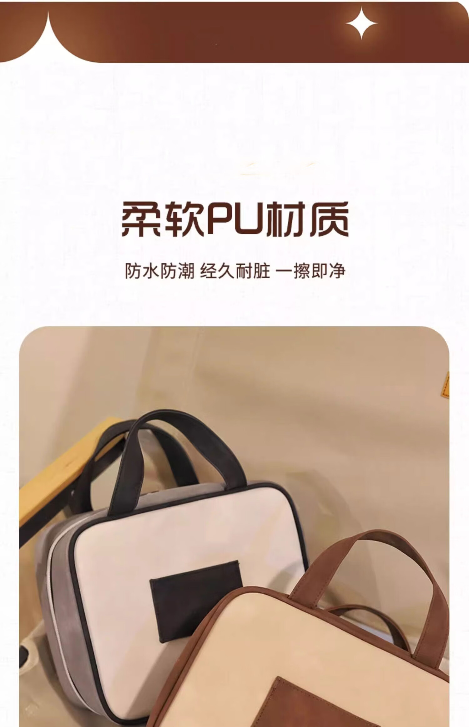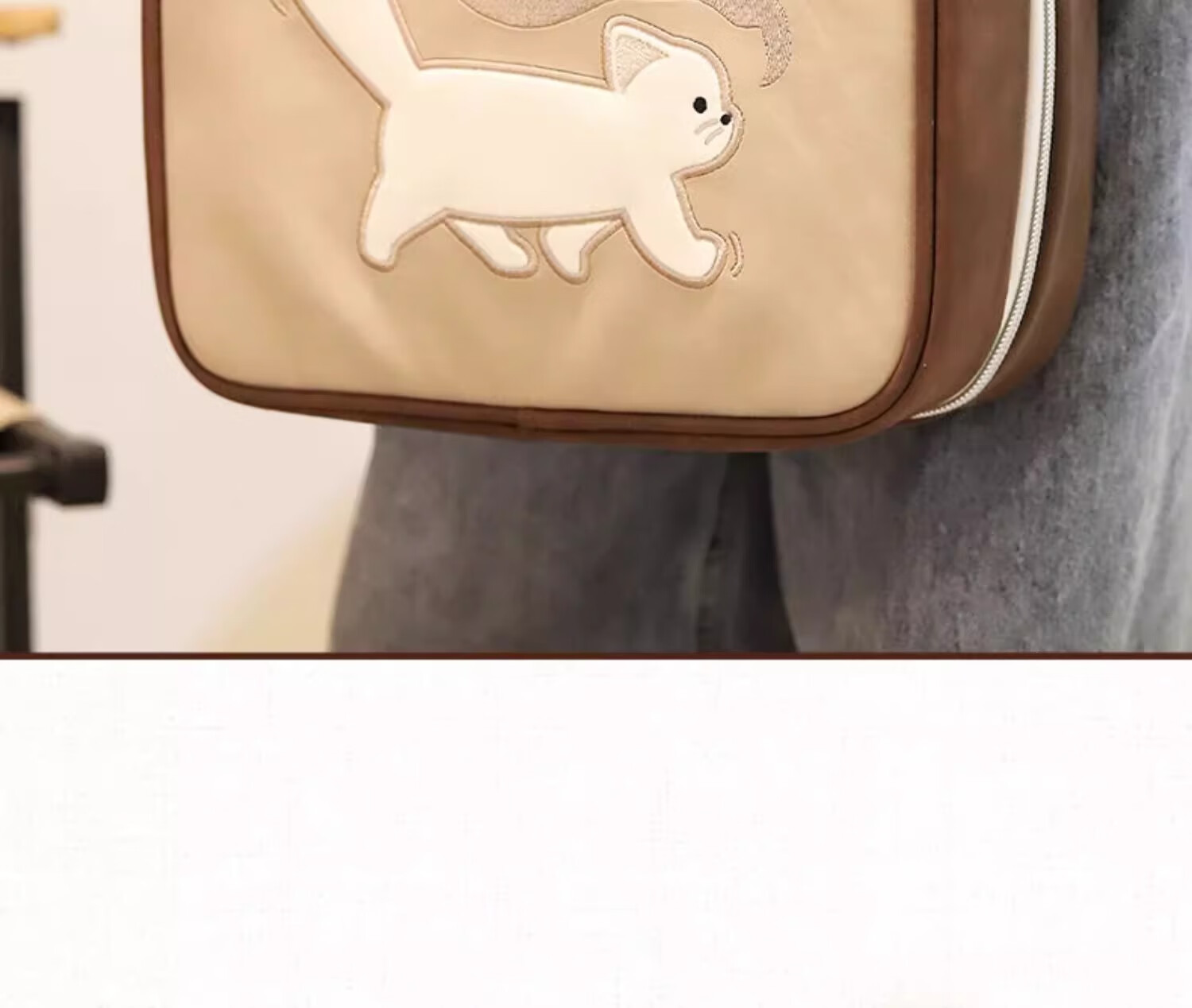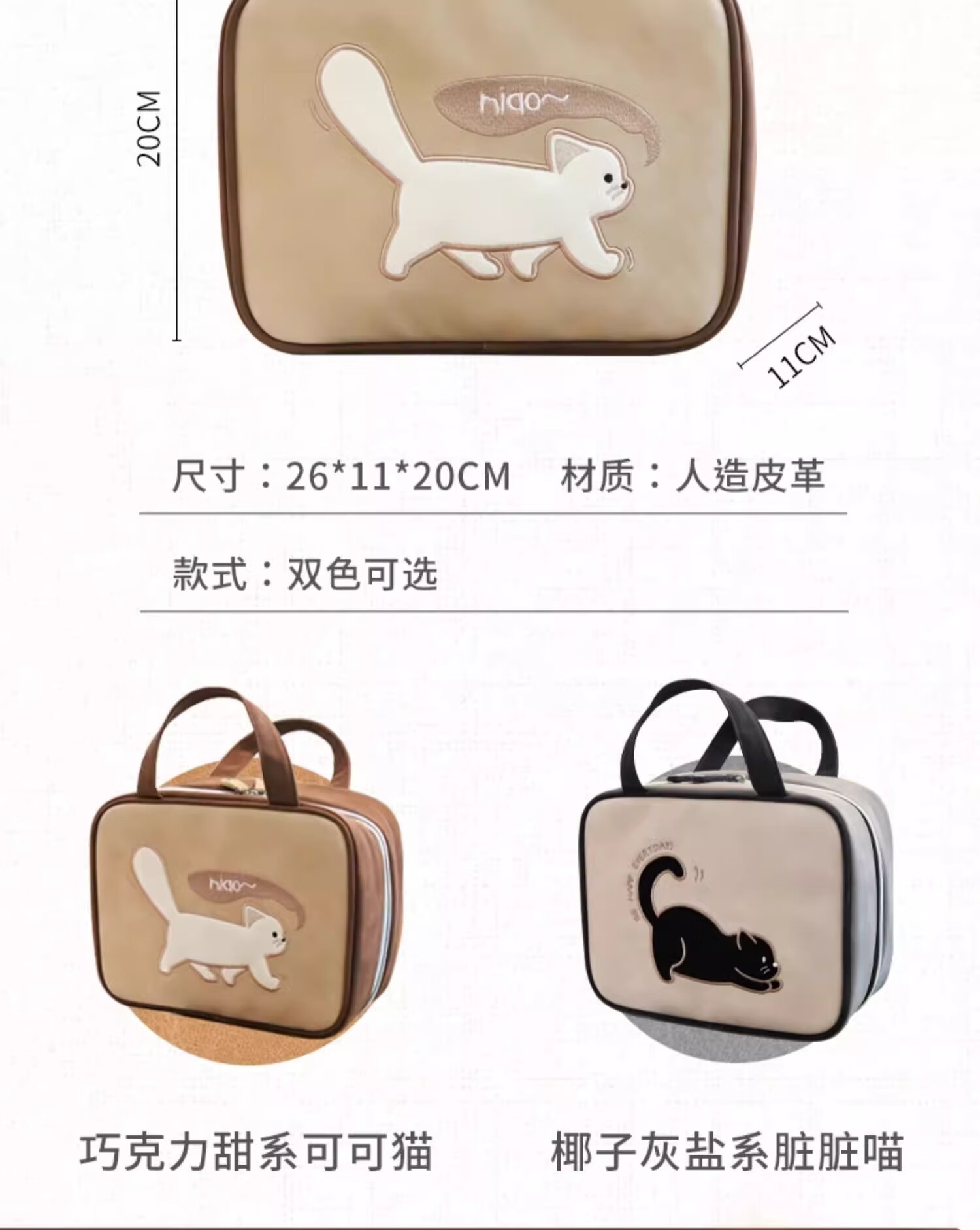 Light luxury cosmetic bag, portable zipper cosmetic bag, waterproof large-capacity storage bag, handbag for makeup artists, kitten cosmetic bag, brown