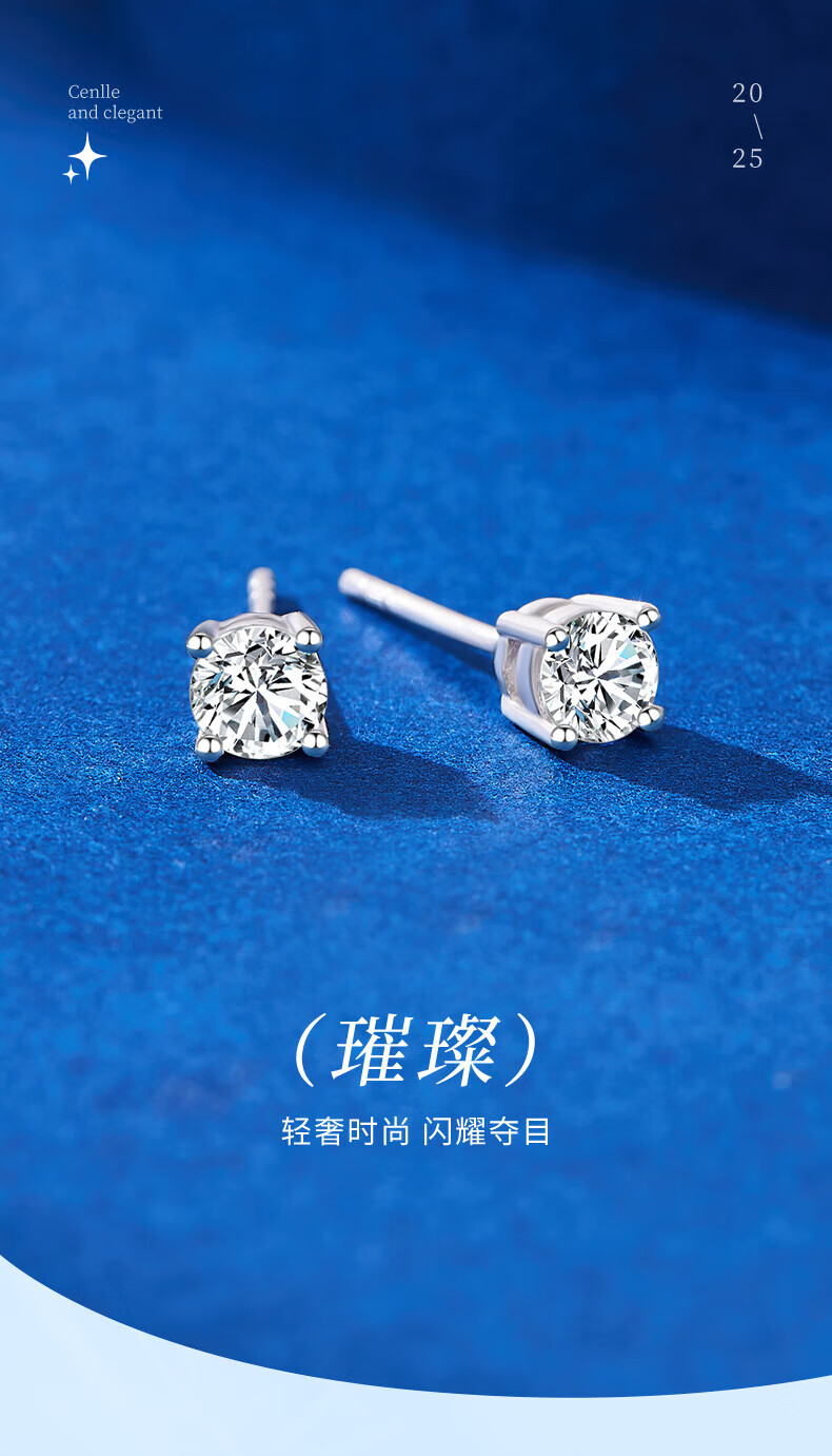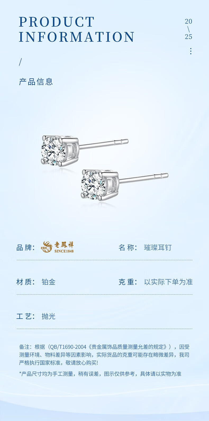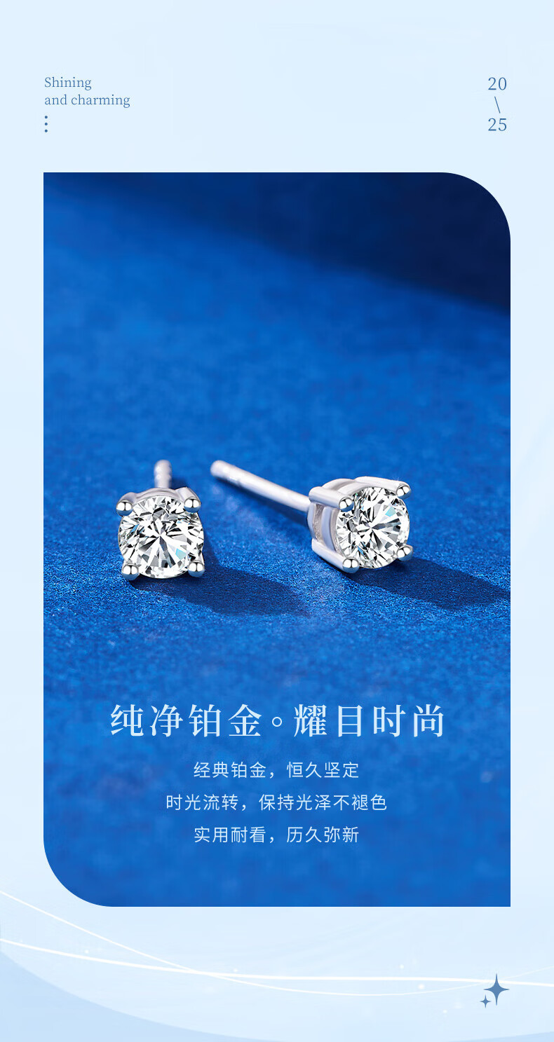 Lao Fengxiang PT950 Platinum Brilliant Earrings for Women New Platinum Birthday Gift for Girlfriend and Wife Teacher's Day Gift Platinum Brilliant Earrings About 0.8g Brand Gift Box