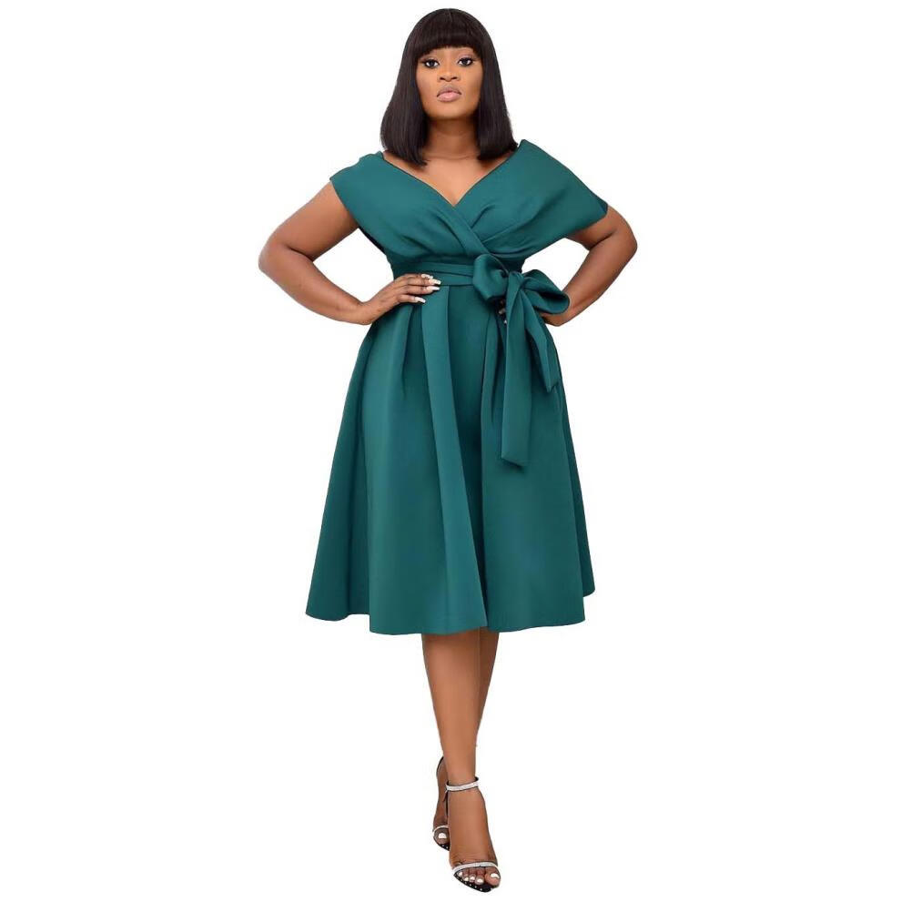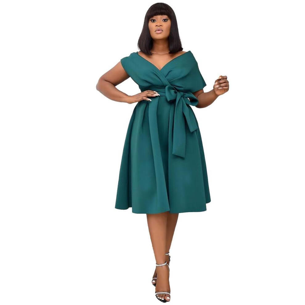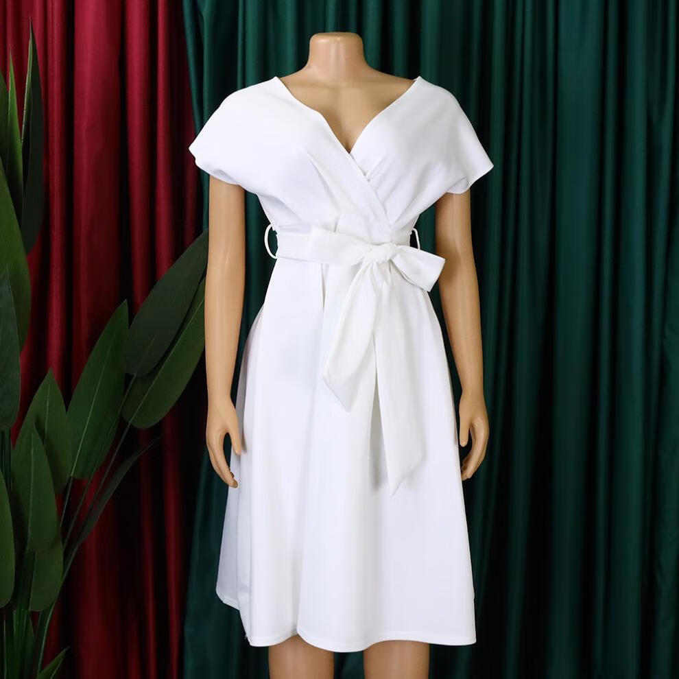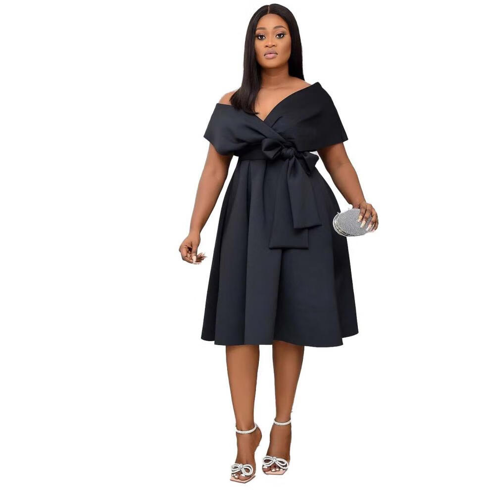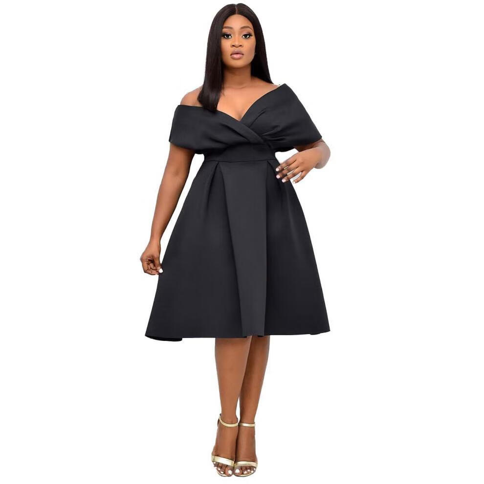 S.SOFEA African large size V-neck off-the-shoulder evening dress European and American style white S