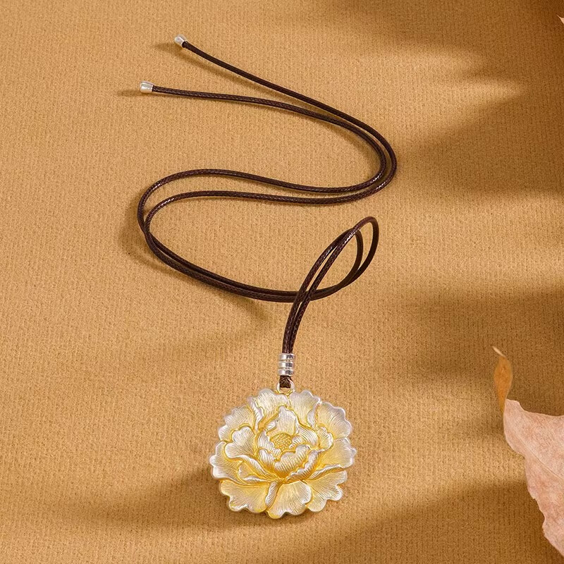 Qiuyu Pure Silver 999 Gold Peony Flower Pendant Silver Necklace Pure Silver Pendant New Chinese Style Pure Silver Necklace as a Gift for Your Girlfriend 999 Pure Silver Peony Flower Necklace Exquisite Gift Box Heavy Weight Solid
