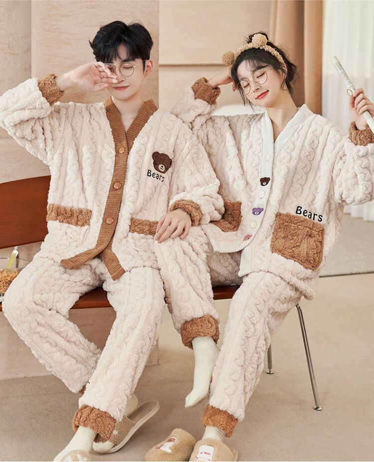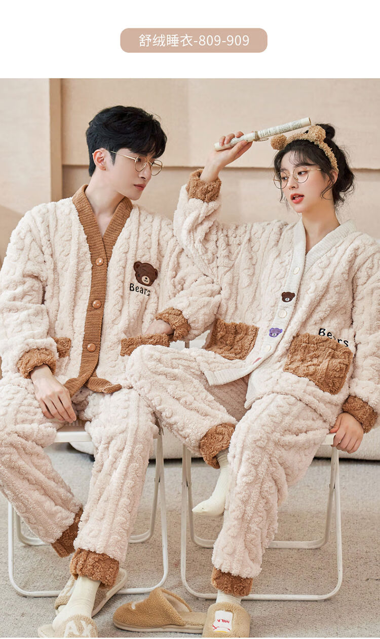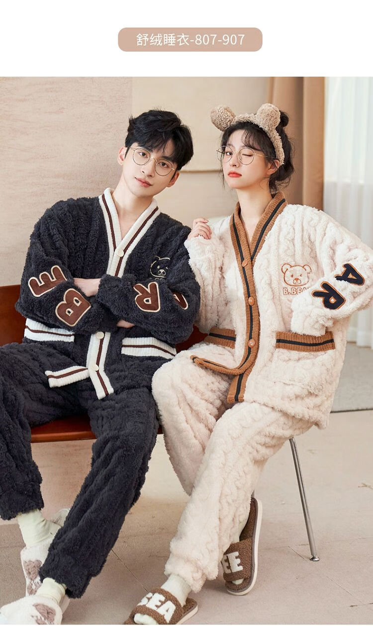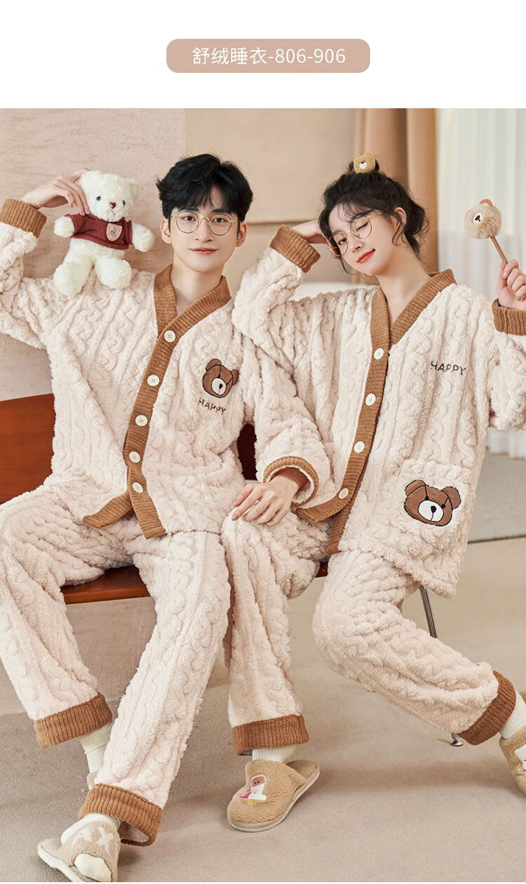 Woodpecker winter coral velvet pajamas for couples, plus velvet and thickened home clothes for men and women, flannel warm and wearable suit QGL806 L, women get men's L, two sets of price