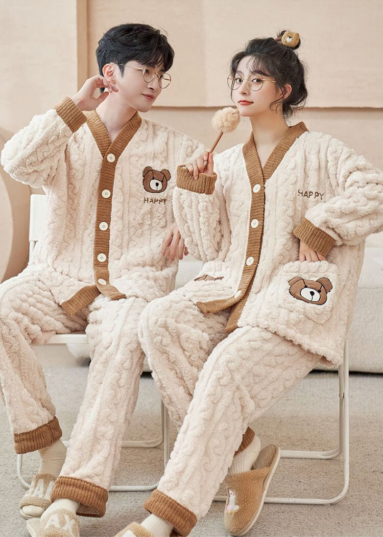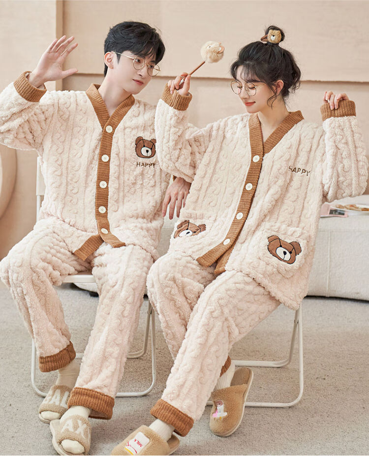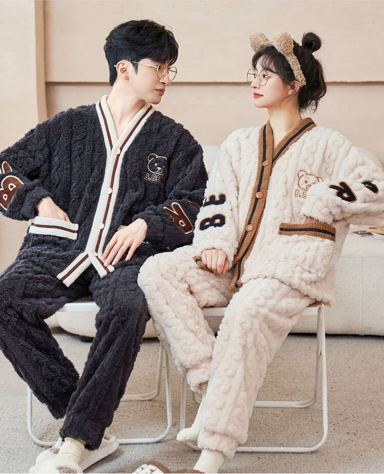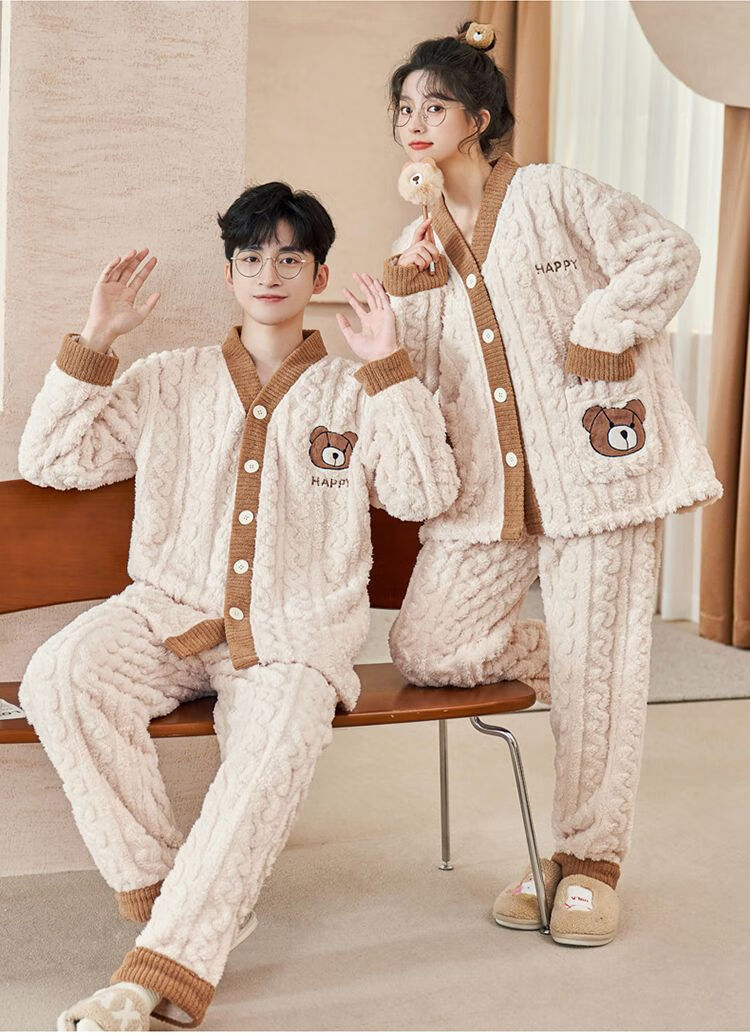 Woodpecker winter coral velvet pajamas for couples, plus velvet and thickened home clothes for men and women, flannel warm and wearable suit QGL806 L, women get men's L, two sets of price