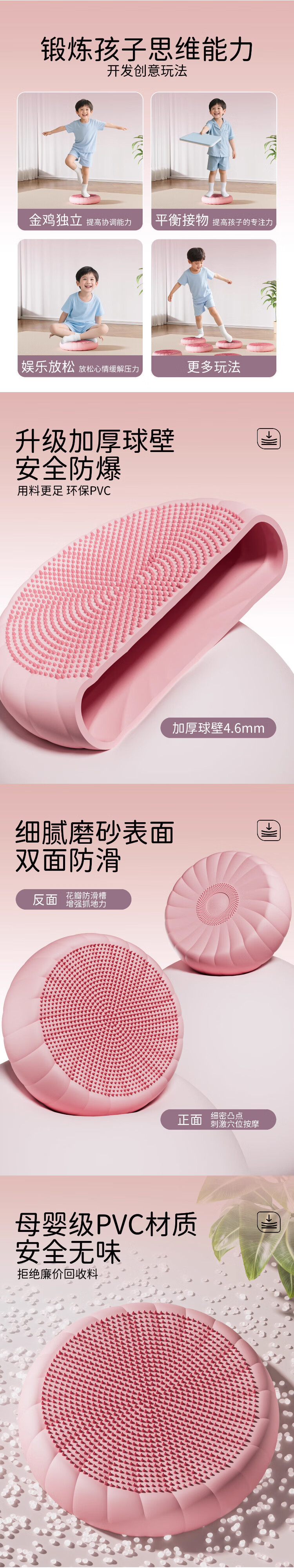 SPXINE children's balance ball yoga foot pedal inflatable disc air cushion core sensory training equipment home vestibular acupressure board minimalist black upgraded thickened liner diameter 34cm/environmentally friendly and odorless/free pump