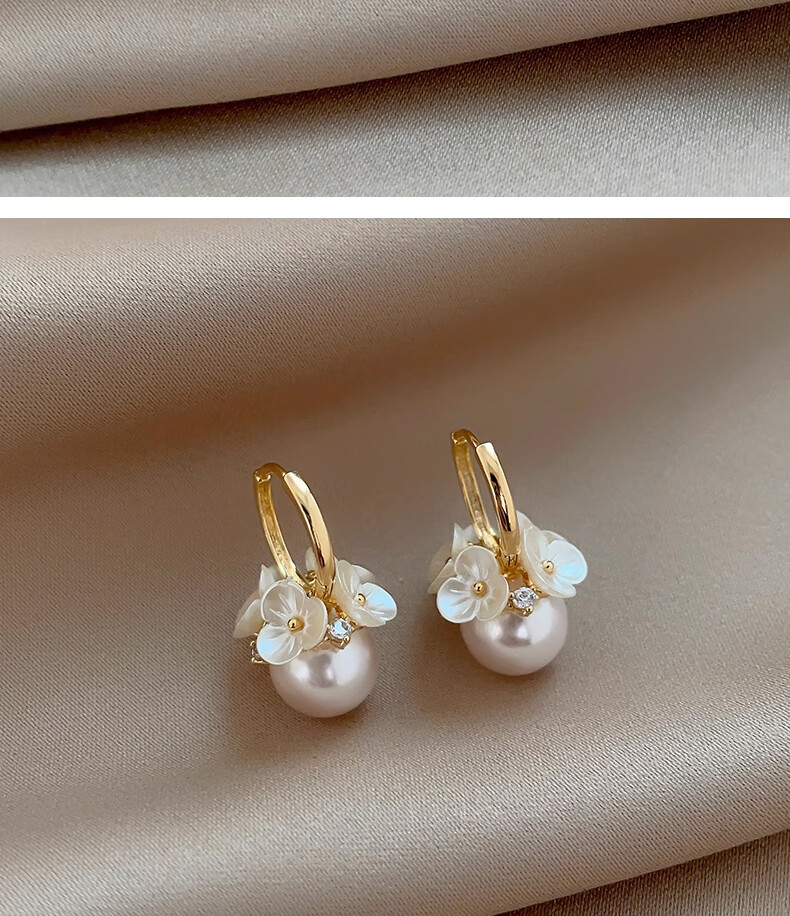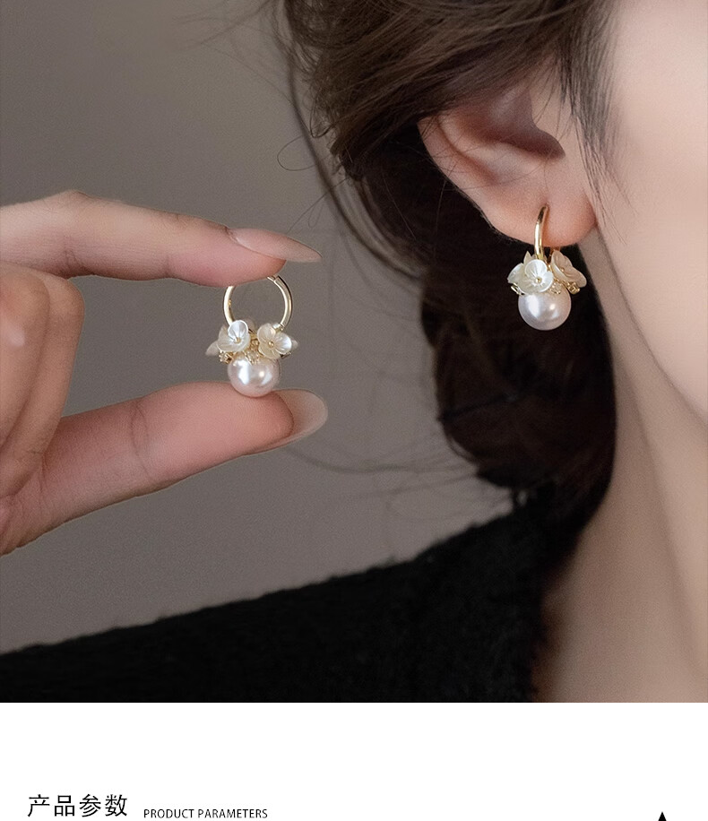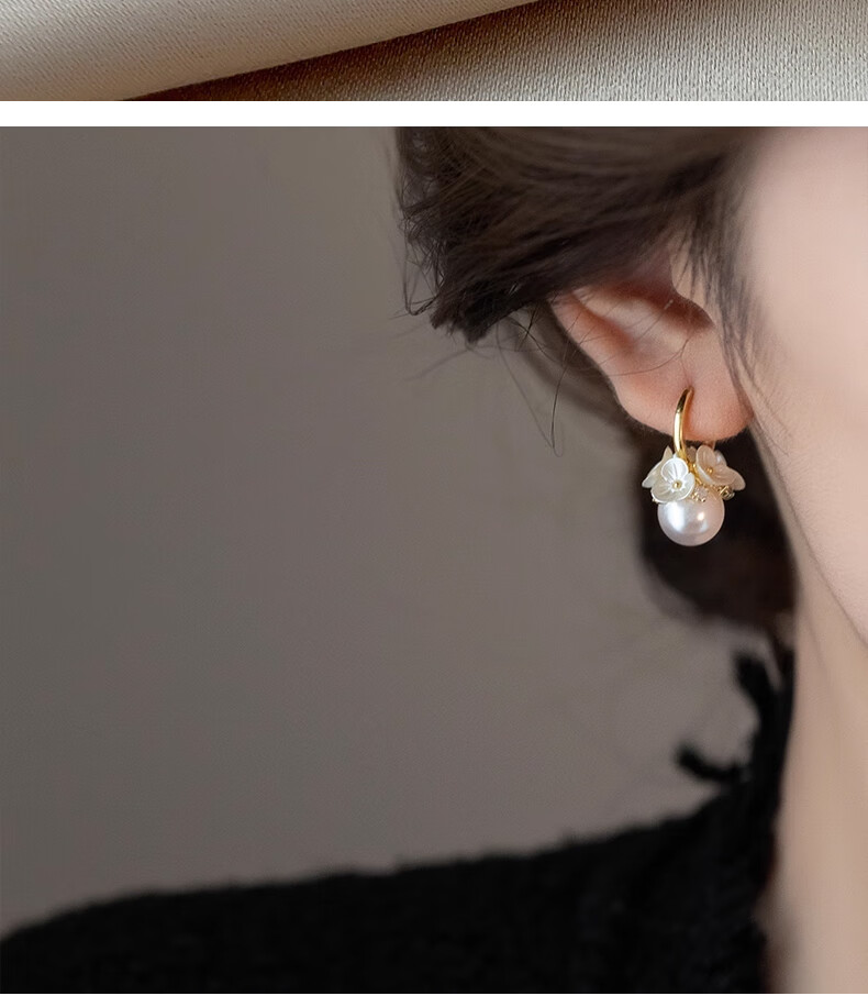 Qi Xiaomi Super Immortal Flower Pearl Earrings Women's Earrings Niche Design Light Luxury Earrings High-Quality Temperament Imitation Pearl Earrings A Pair of Flower Earrings