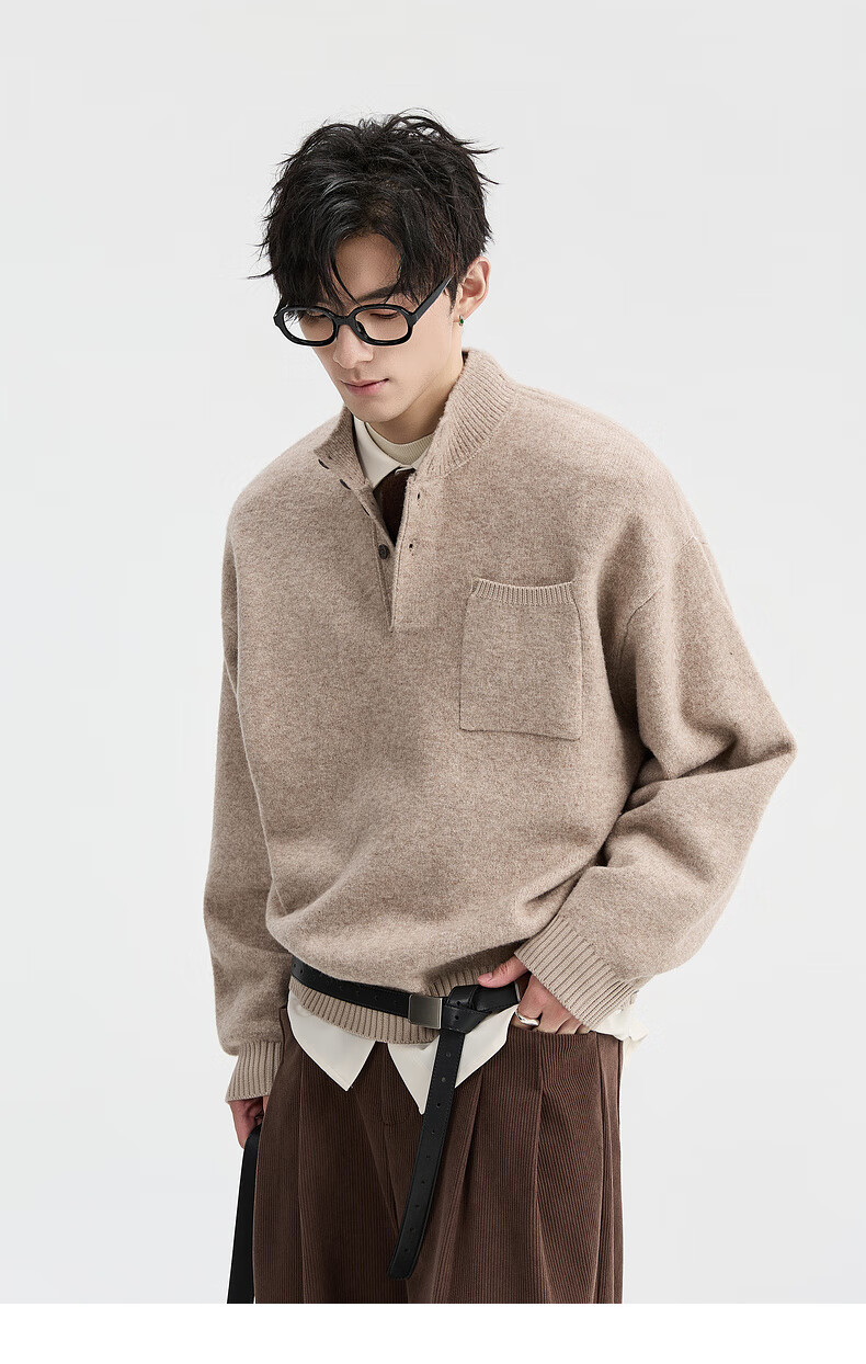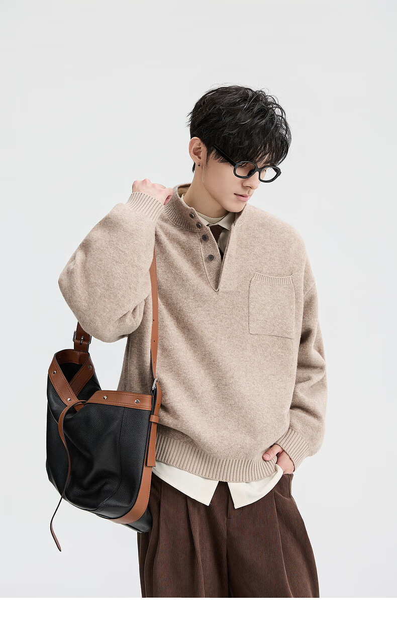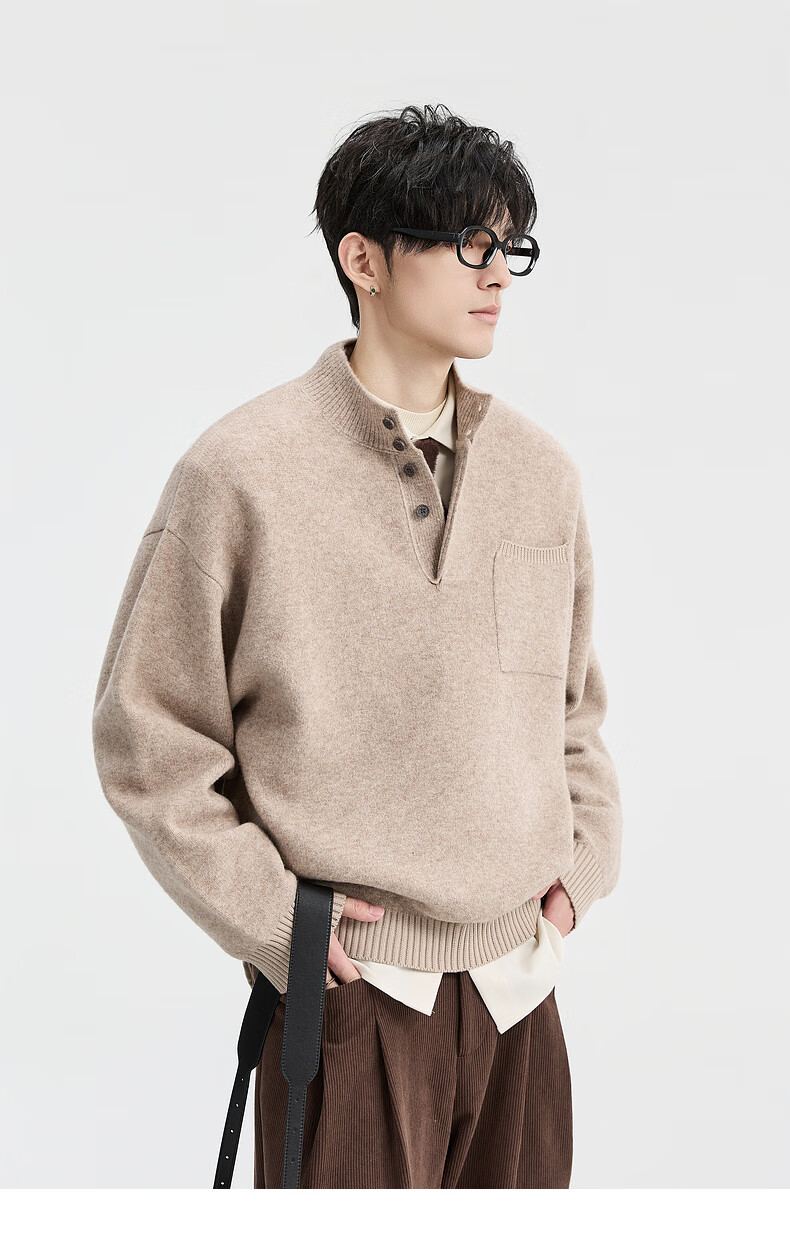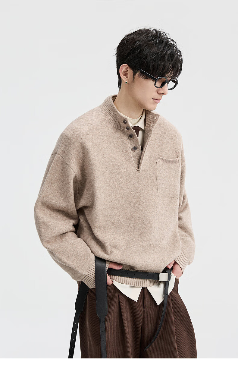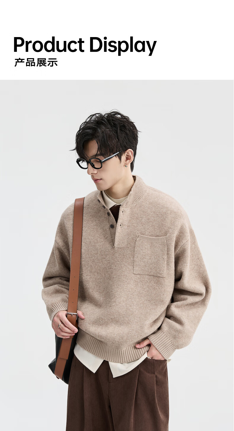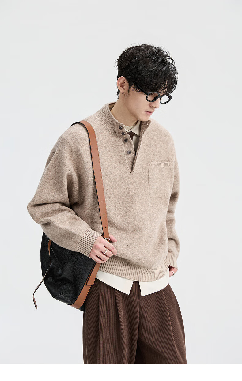 Piaget Zall Wool Henley Collar Commuting Sweater Men's 2025 Early Winter New Sweater Men Y541555 Mocha Color 2XL (185)