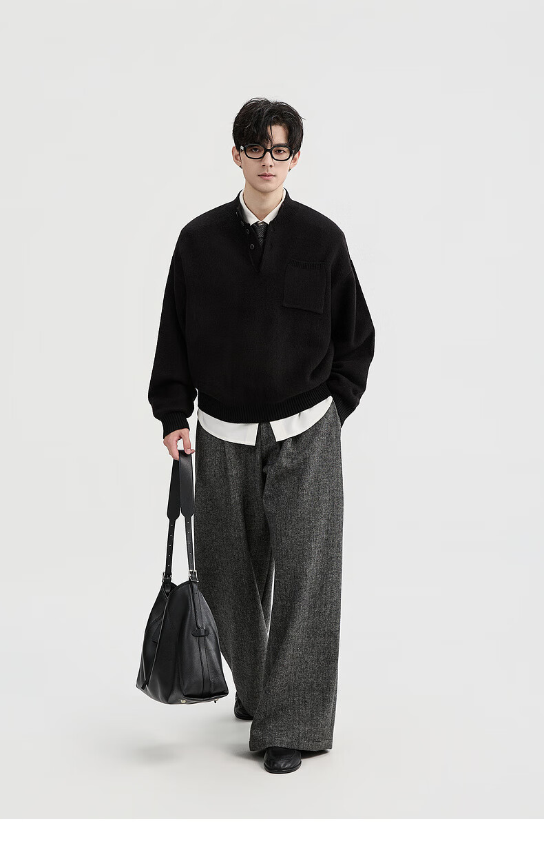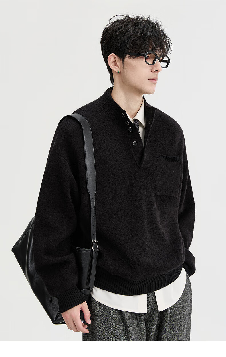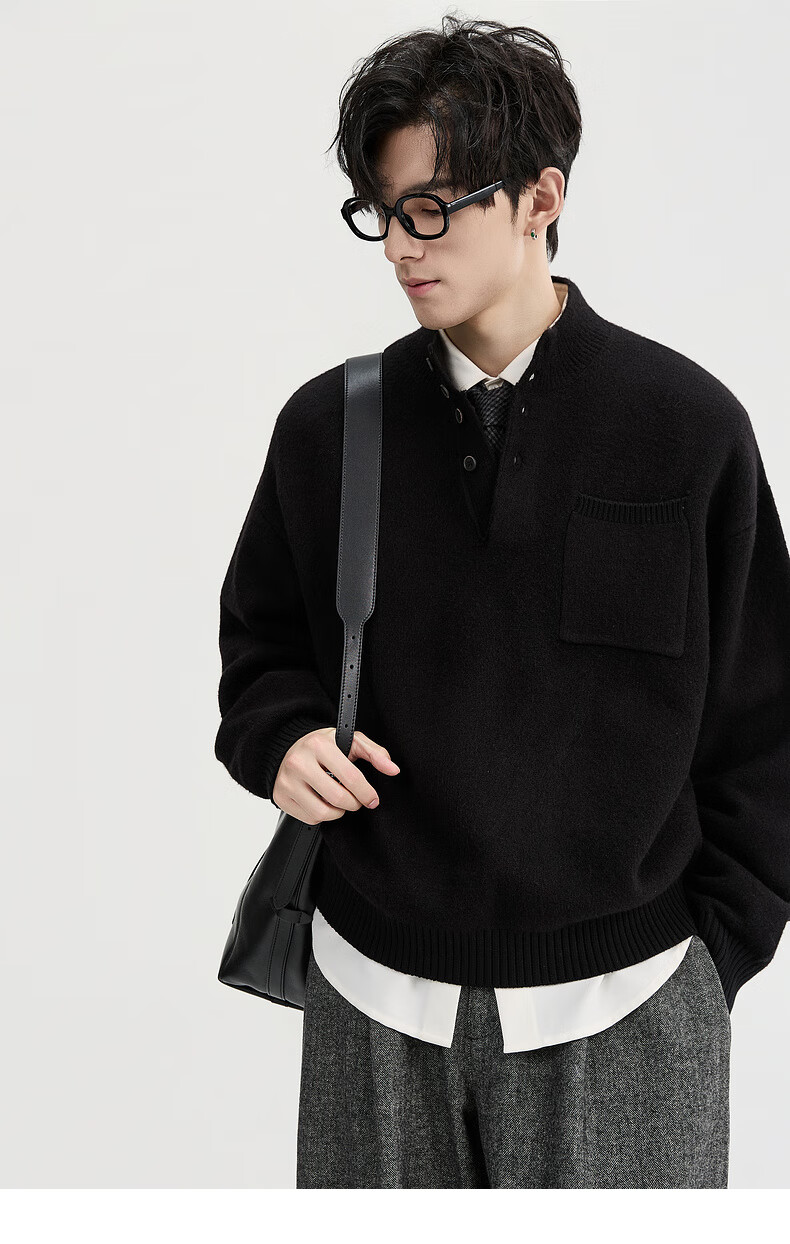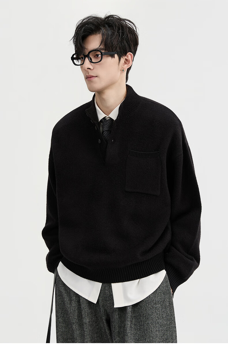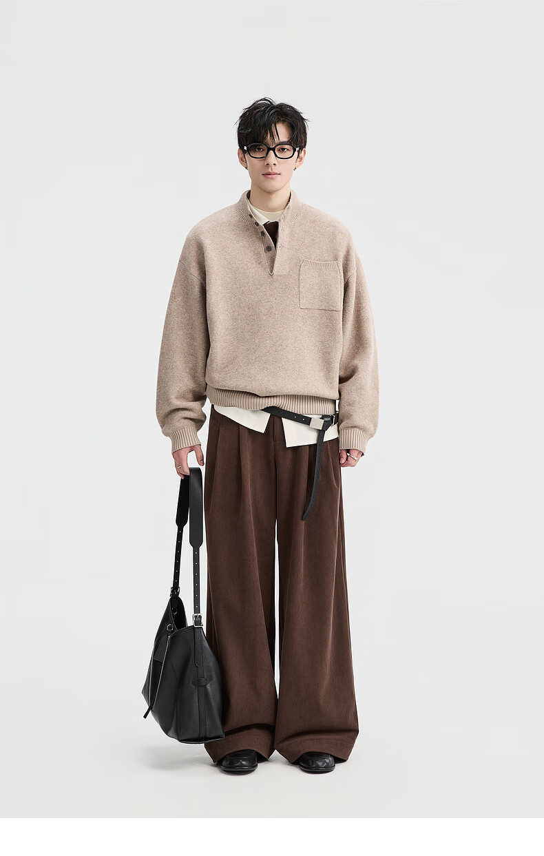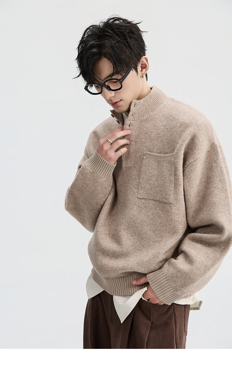 Piaget Zall Wool Henley Collar Commuting Sweater Men's 2025 Early Winter New Sweater Men Y541555 Mocha Color 2XL (185)