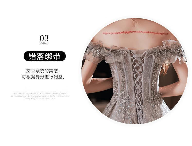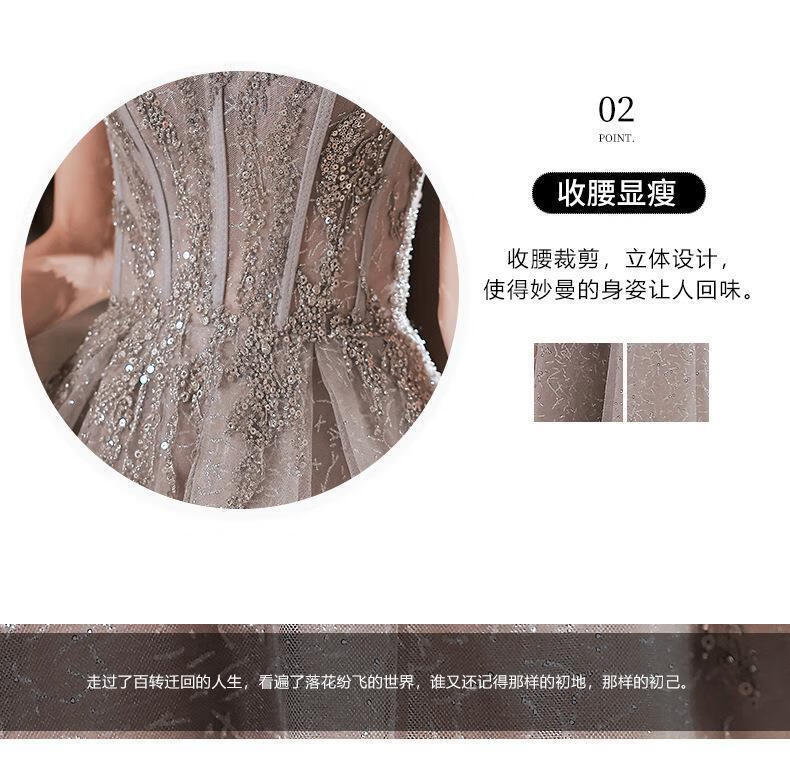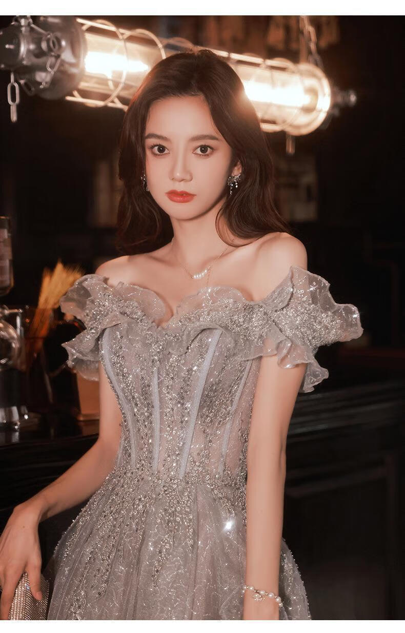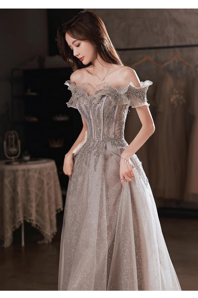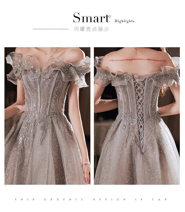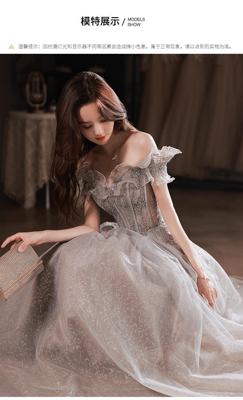 Gray banquet evening dress 2025 new one-shoulder elegant annual meeting host fairy temperament birthday party dress gray long S
