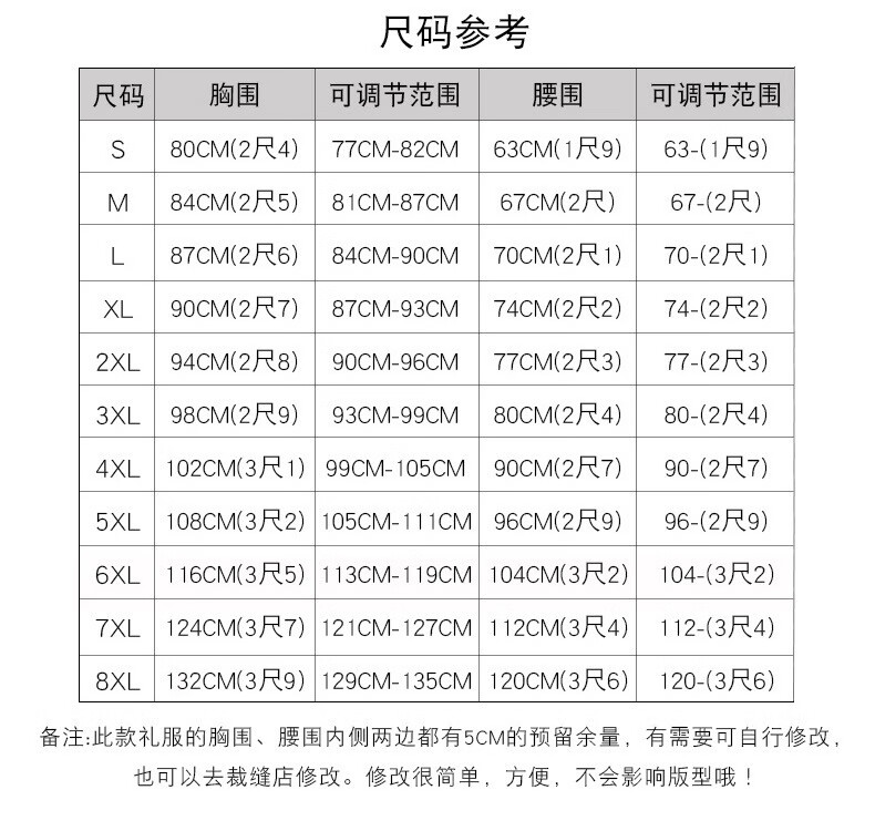 China (cm) 160-165/84-86 165-170 / 88-90 167-172 / 92-96 168-173 / 98-102 170-176 / 106-110