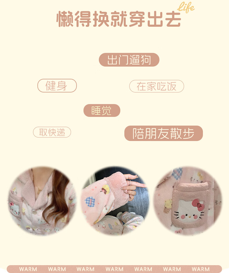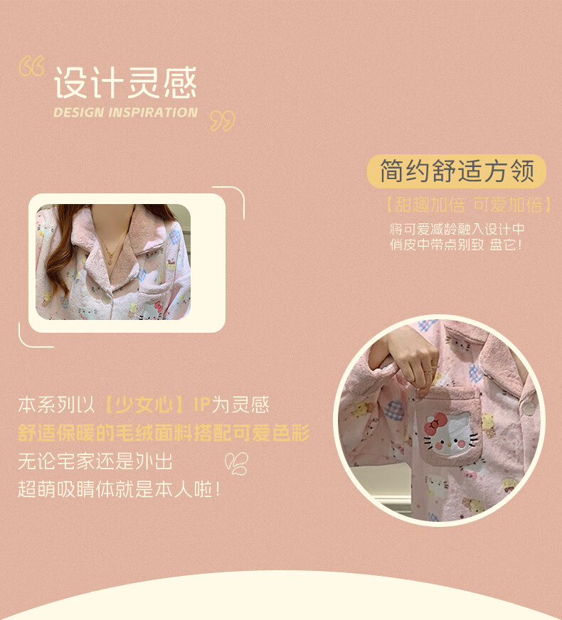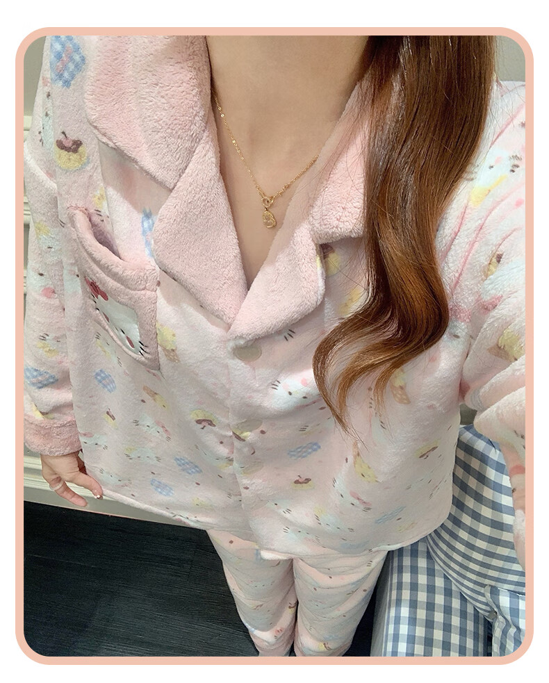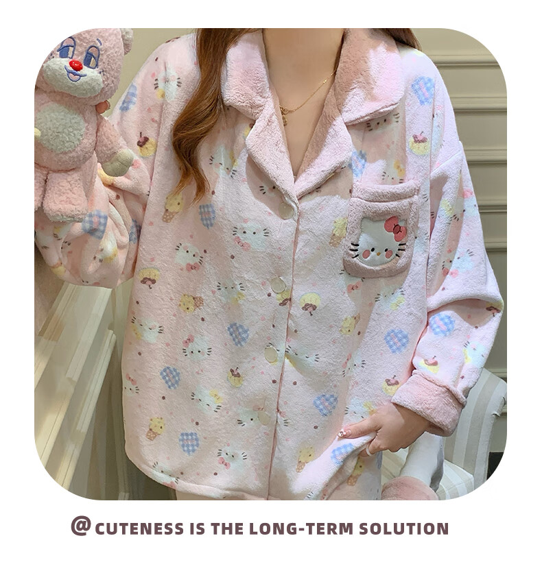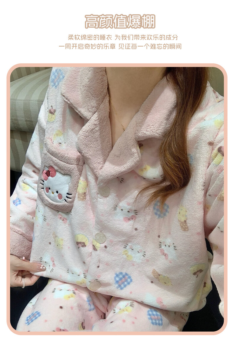 Also about autumn and winter pajamas for women, plus velvet and thickened coral velvet long-sleeved trousers, sweet and cute Hellokitty home clothes 2637 Sweetheart Pink Cat M
