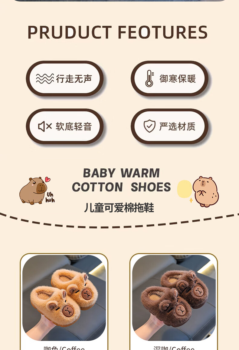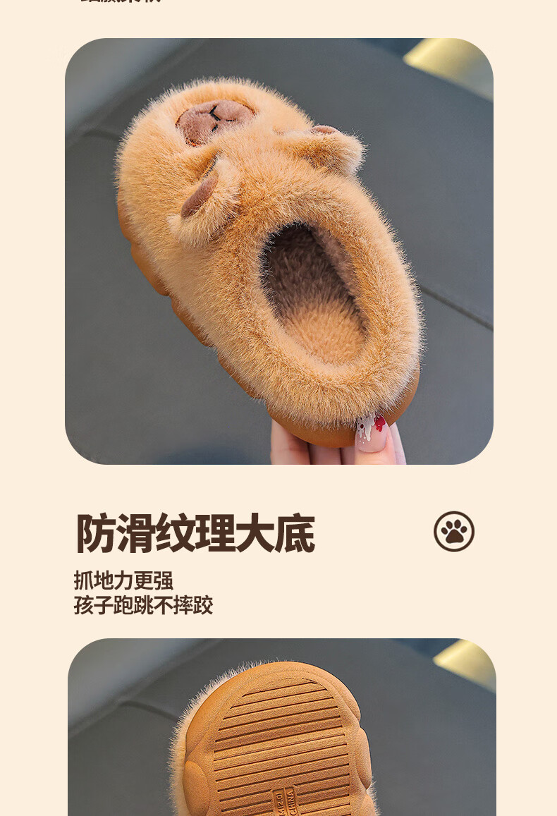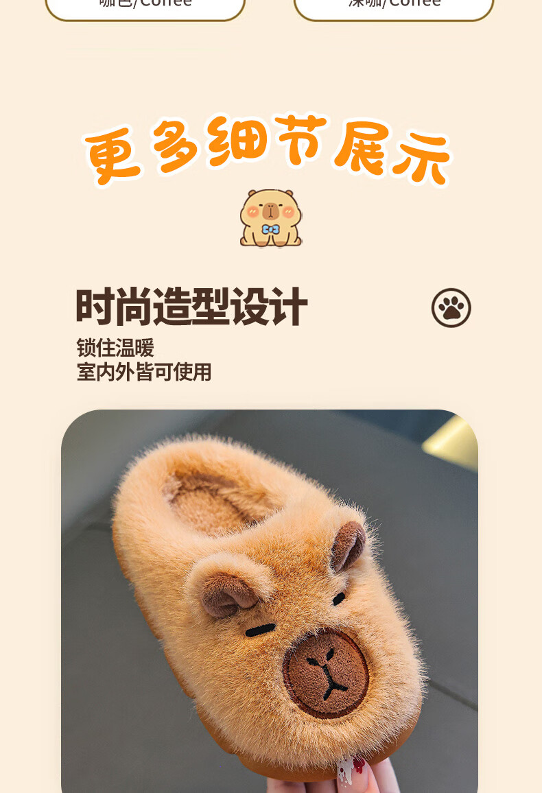 Kapibala children feel like stepping on shit, girls winter cartoon cute non-slip indoor home soft-soled slippers baby slippers upgraded environmentally friendly material light coffee slippers 12 32/33 size (shoe inner length 19CM suitable for feet 18