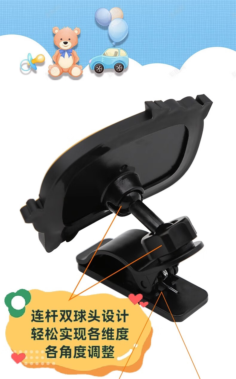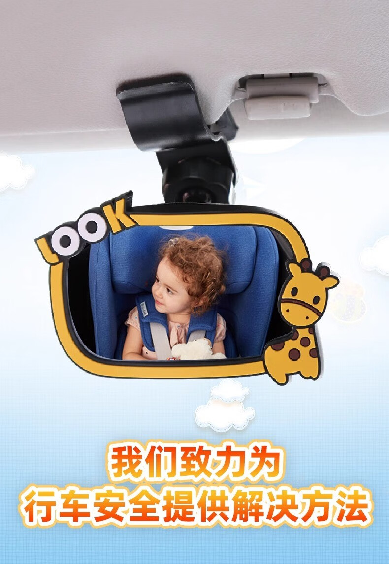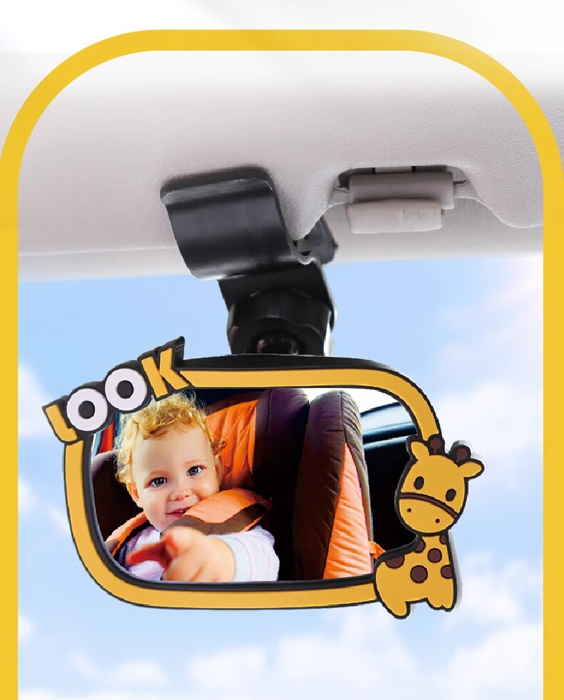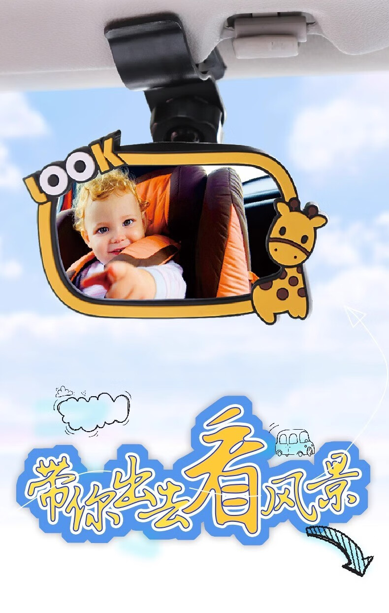 Drilling safety seat observation mirror car baby rearview mirror baby car mirror children's reflective mirror cognitive mirror auxiliary cartoon style in-car observation mirror