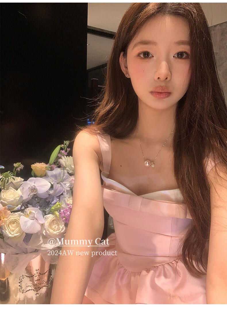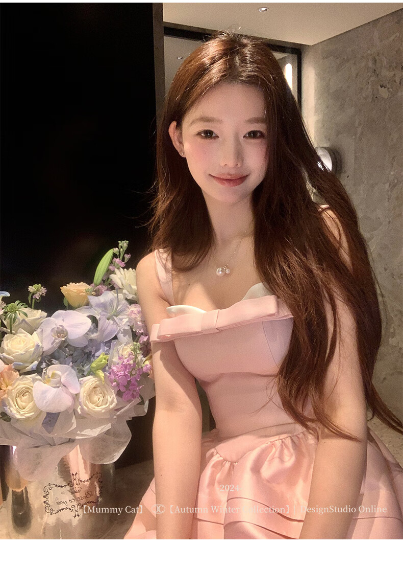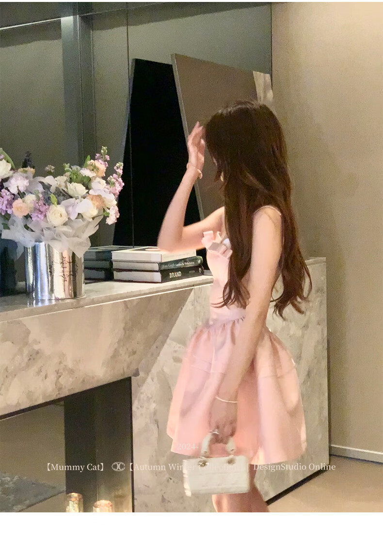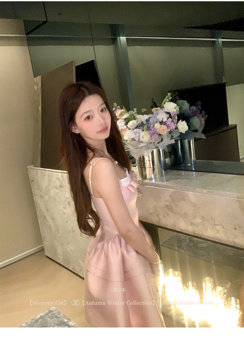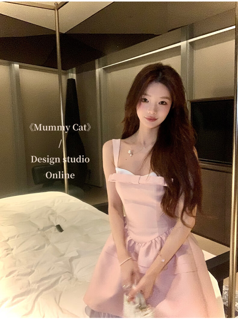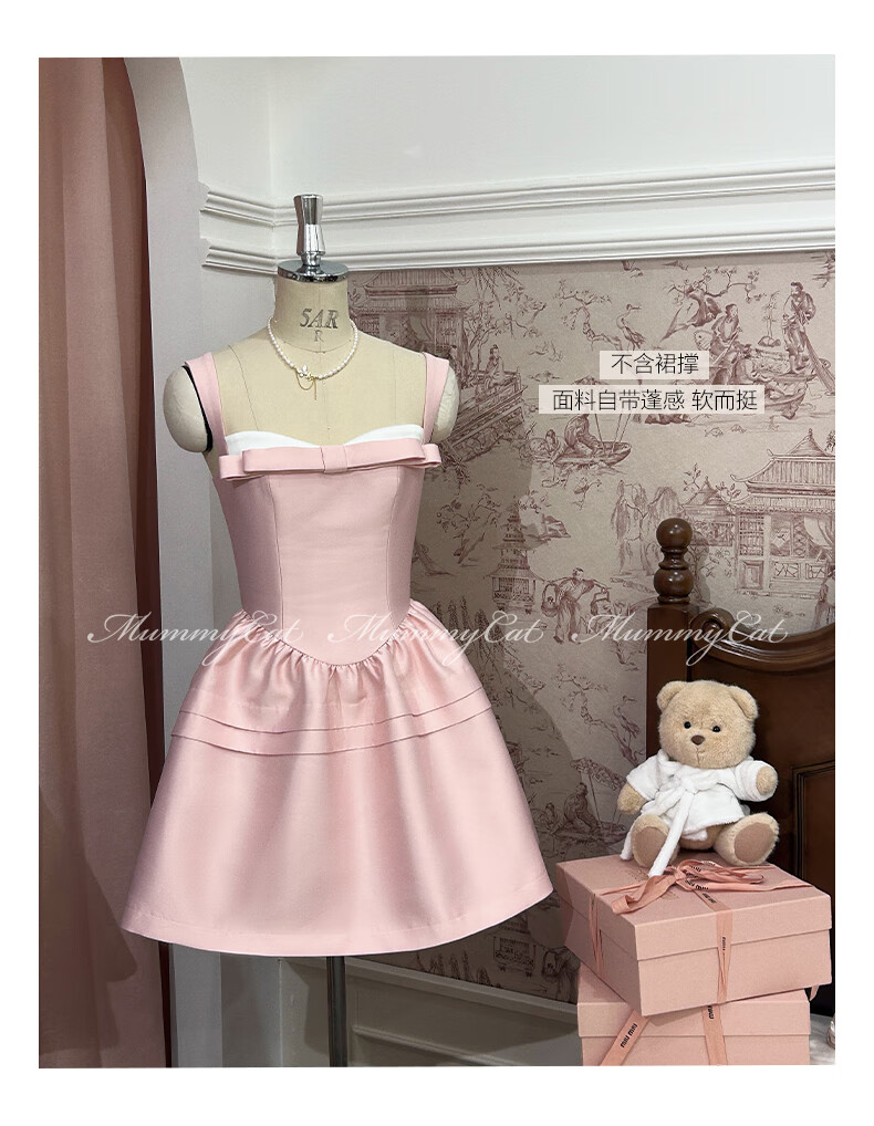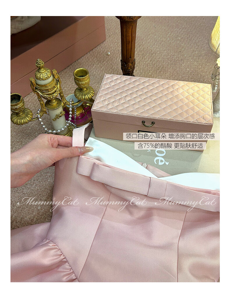 ACJKMummyCat laying cat kitten ears bow stitched imitation silk fur princess day dress cherry blossom pink L