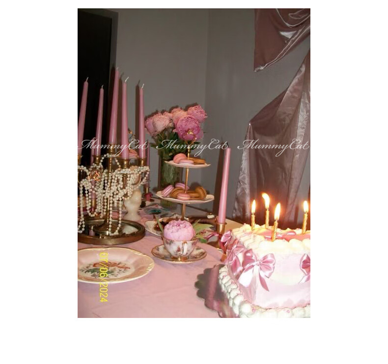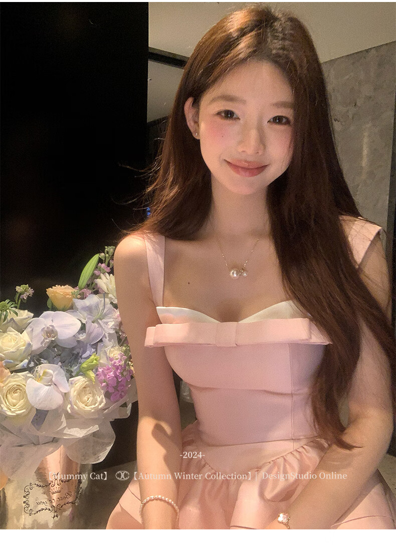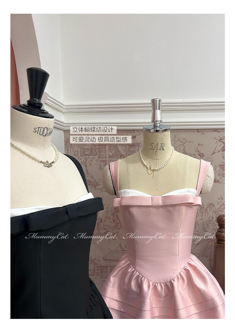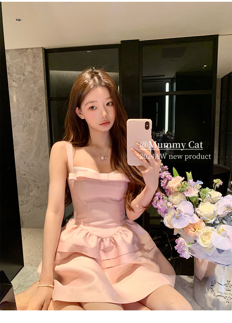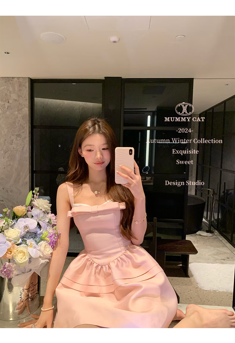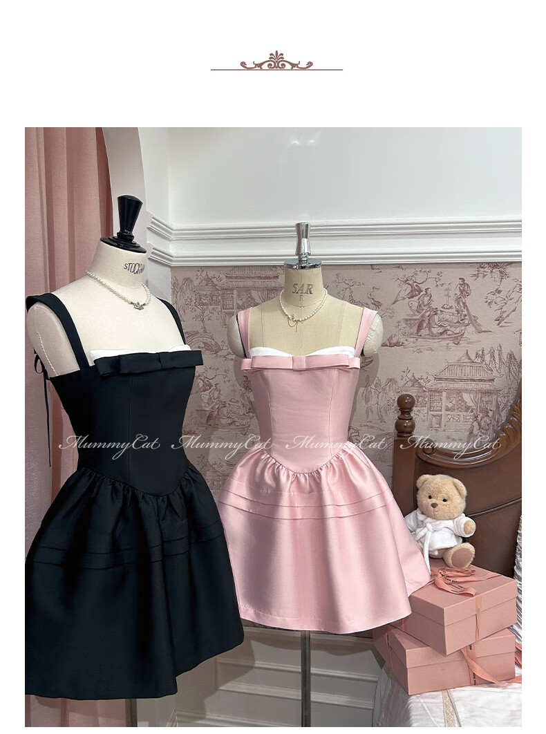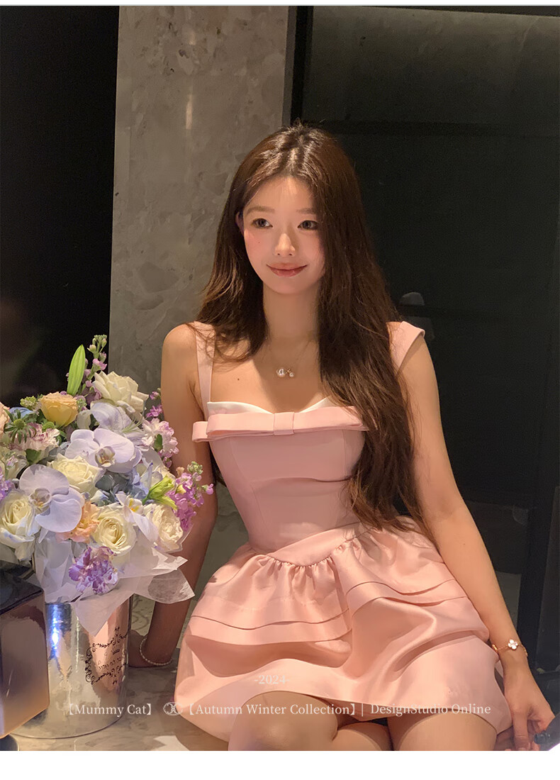 ACJKMummyCat laying cat kitten ears bow stitched imitation silk fur princess day dress cherry blossom pink L