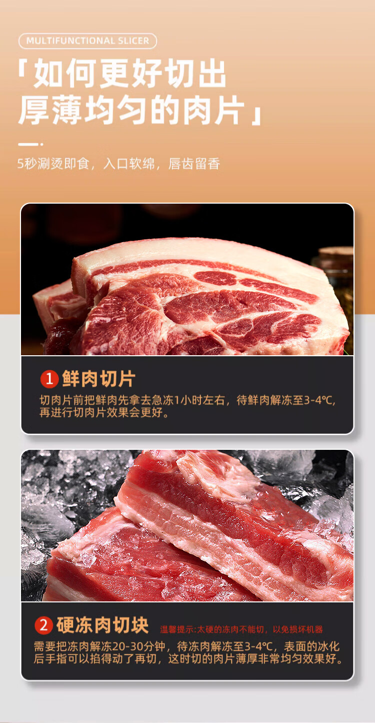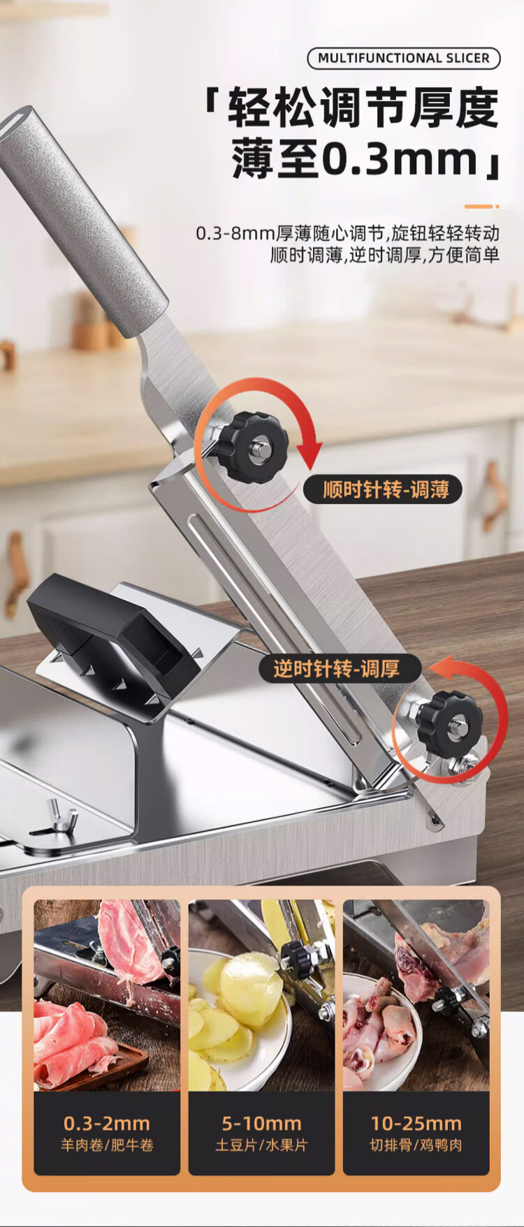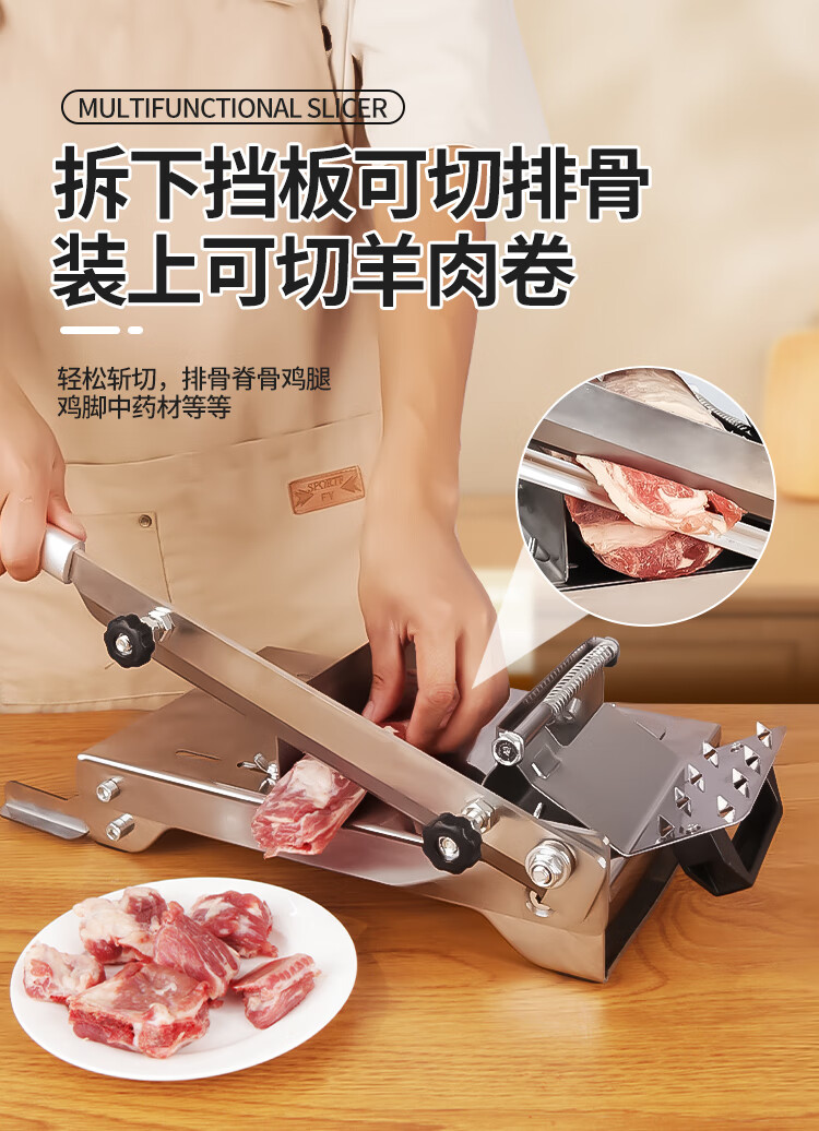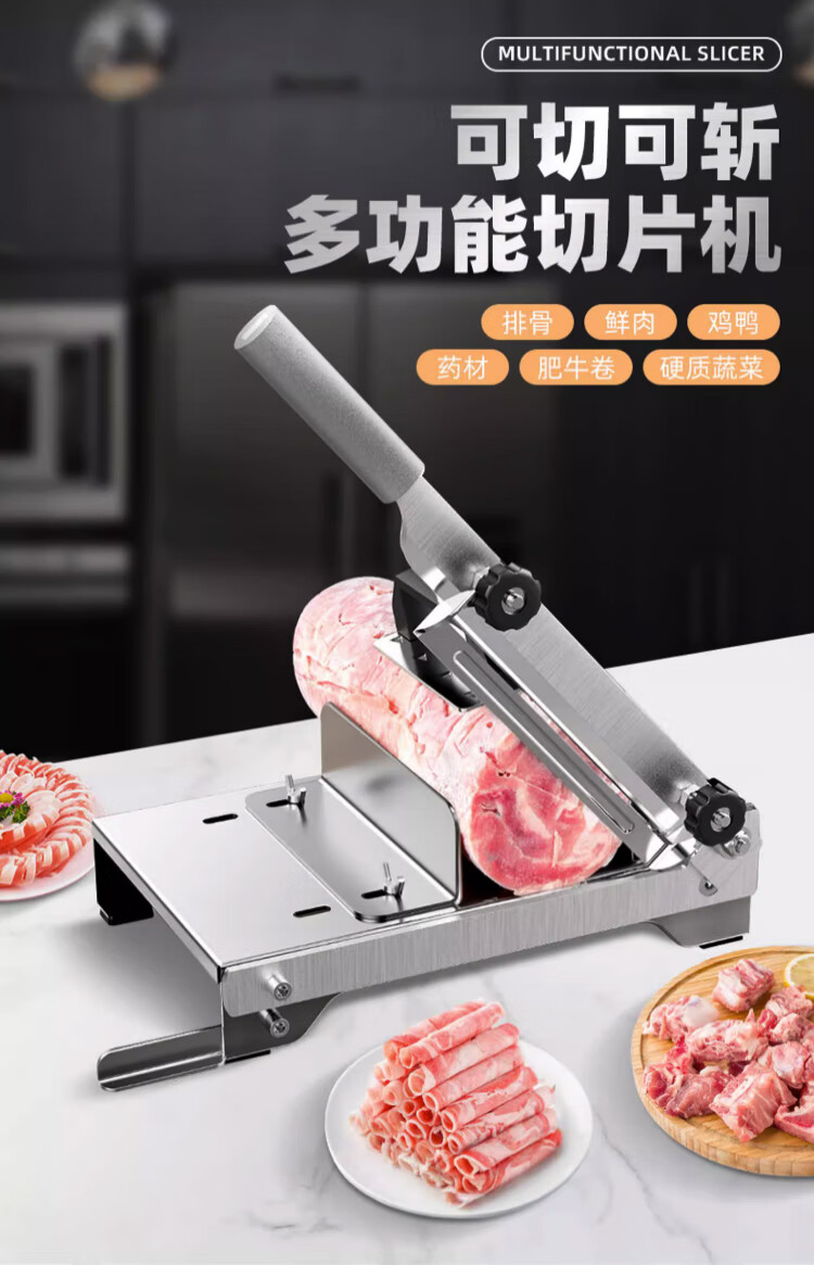 Baijie (BJ) 304 meat slicer, household multi-functional frozen meat bone cutter, meat planer artifact, manual mutton roll slicer, thickened 304 stainless steel, dual-purpose slicing/bone cutting
