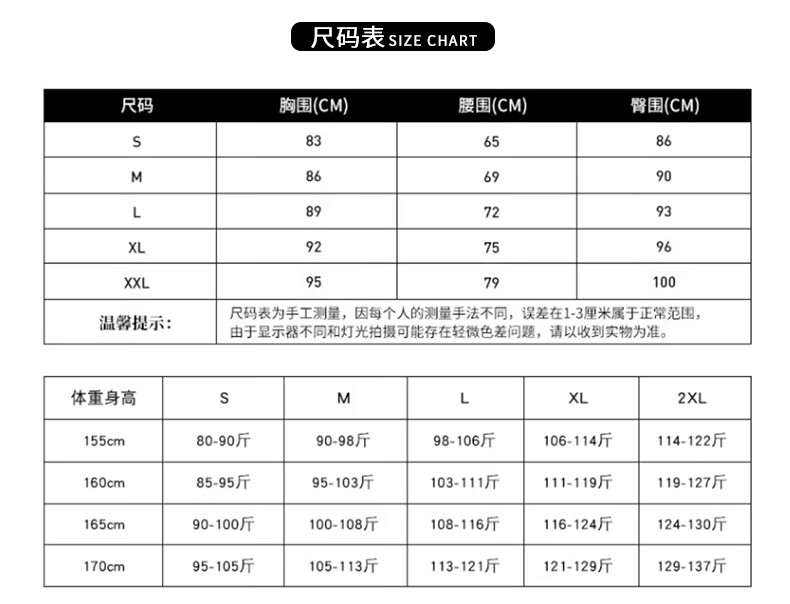 China (cm) 160-165/84-86 165-170 / 88-90 167-172 / 92-96 168-173 / 98-102 170-176 / 106-110