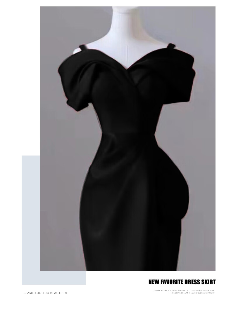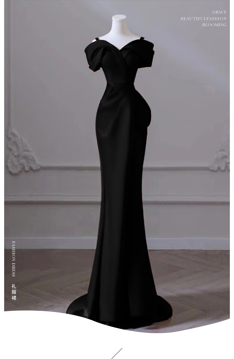 ACJK one-shoulder black evening dress 2025 new banquet-feel fishtail skirt for women light luxury niche host high-end burgundy _ tail M _ one-shoulder style