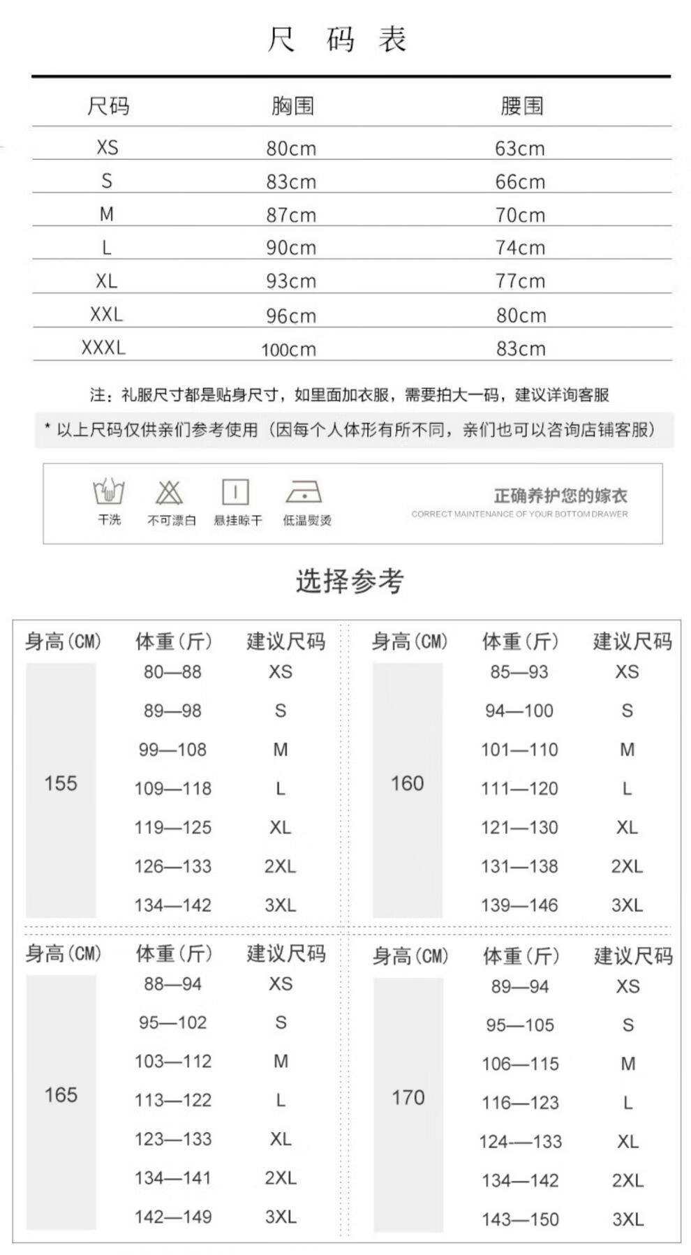 China (cm) 160-165/84-86 165-170 / 88-90 167-172 / 92-96 168-173 / 98-102 170-176 / 106-110