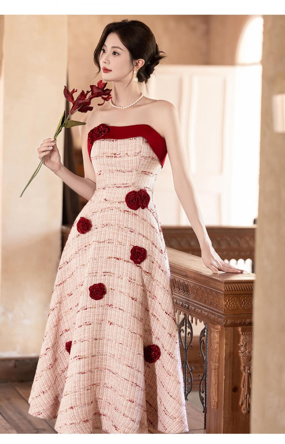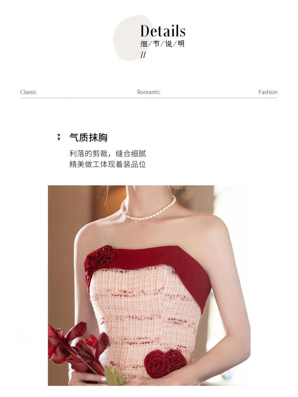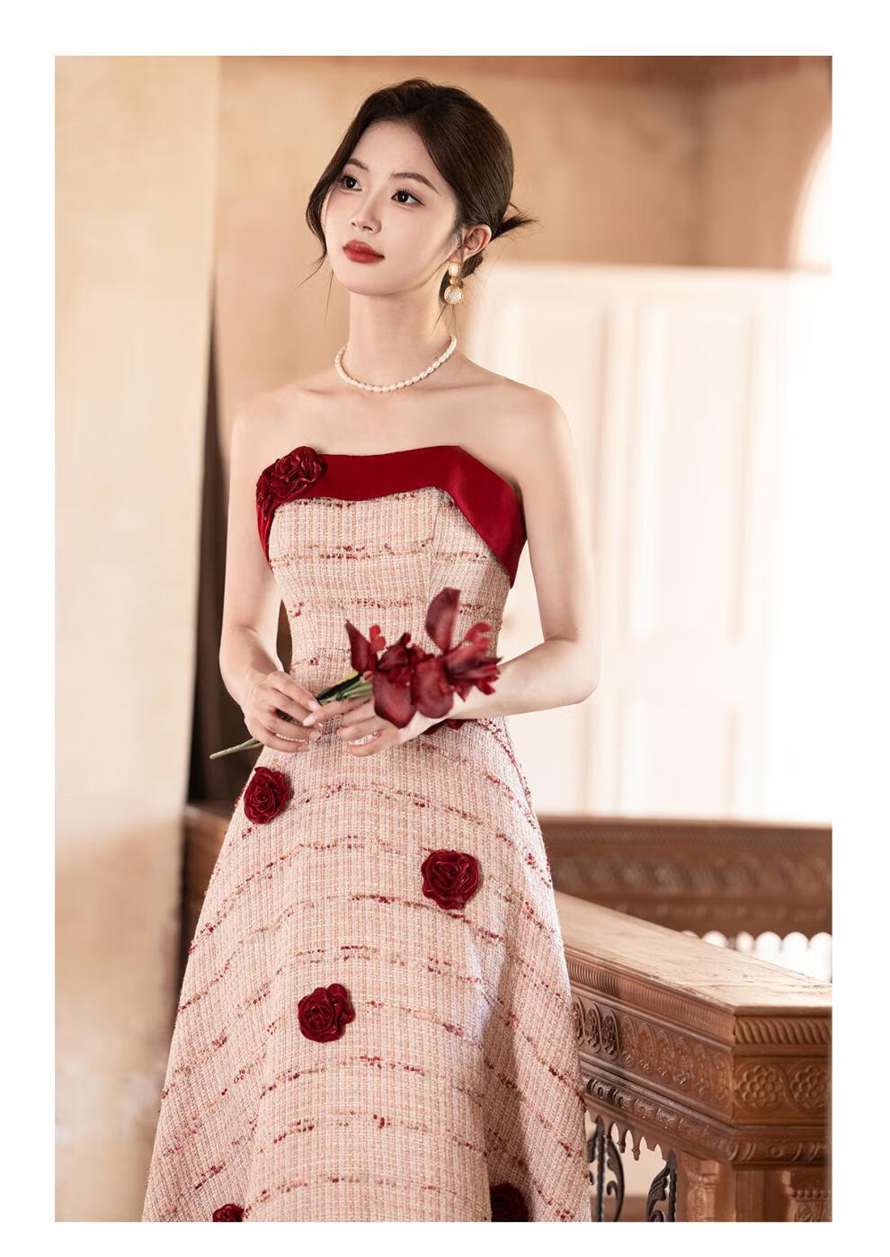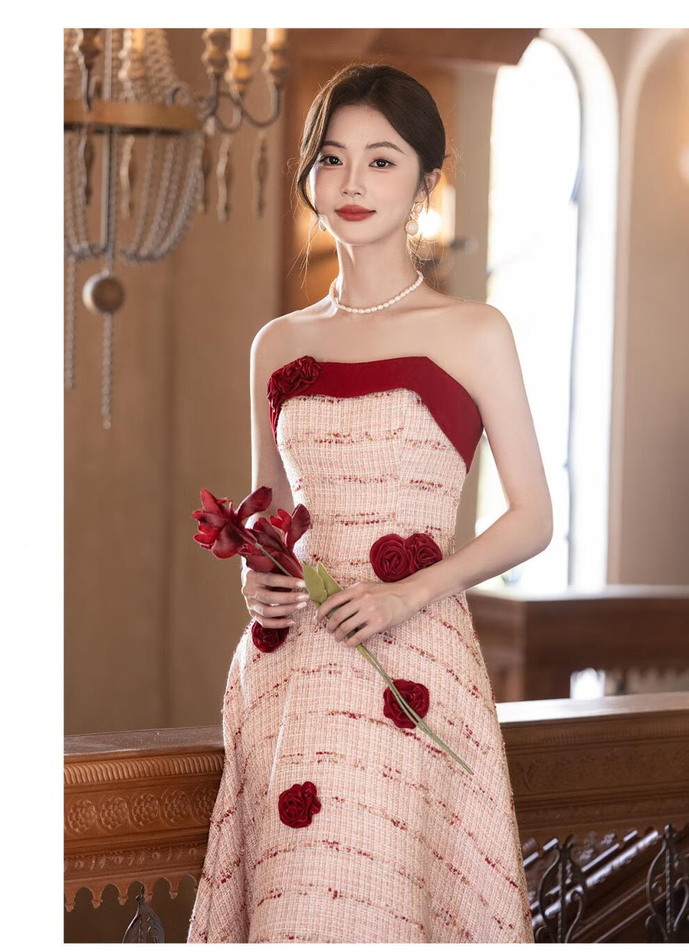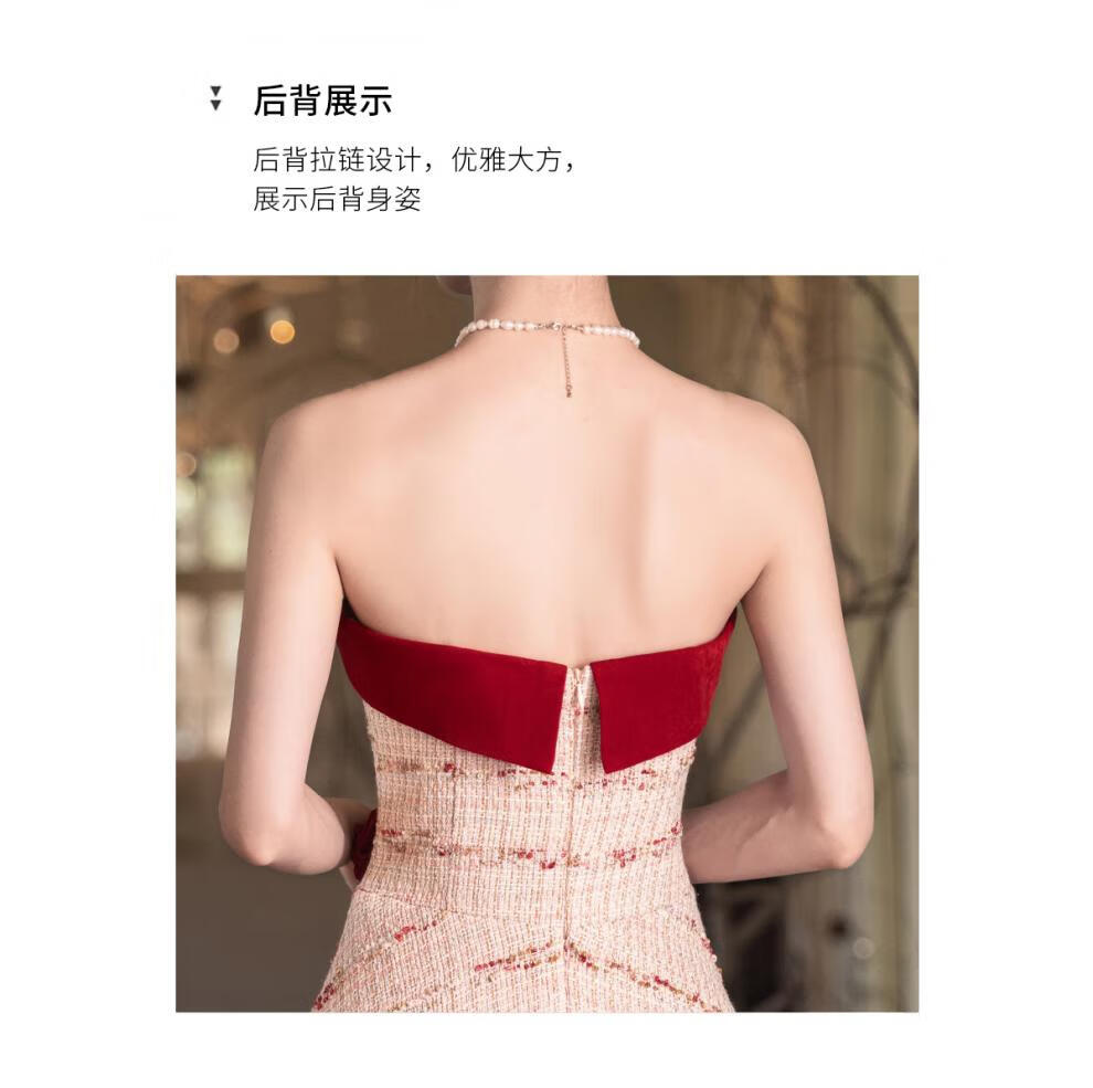 ACJK French toast dress bride 2025 new sexy tube top engagement dress dress pink home dressing gown for women pink_22352 M