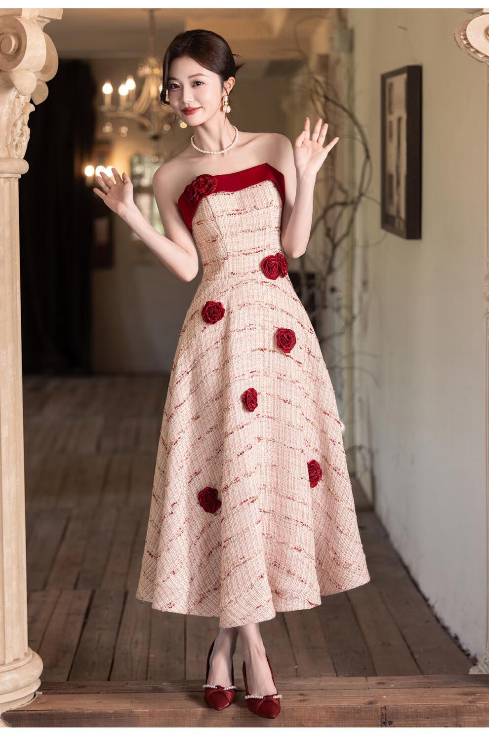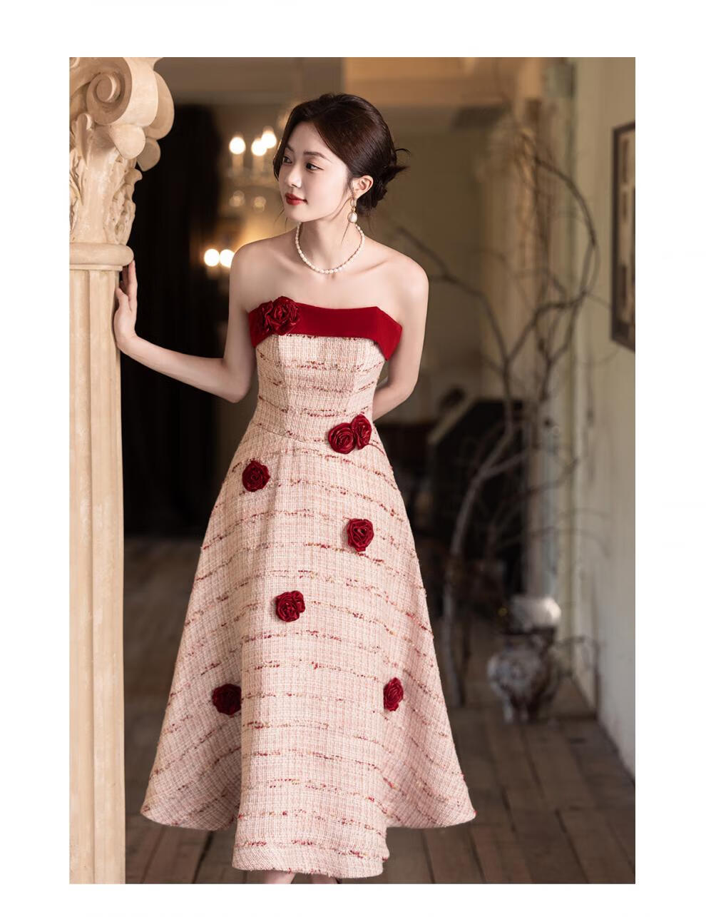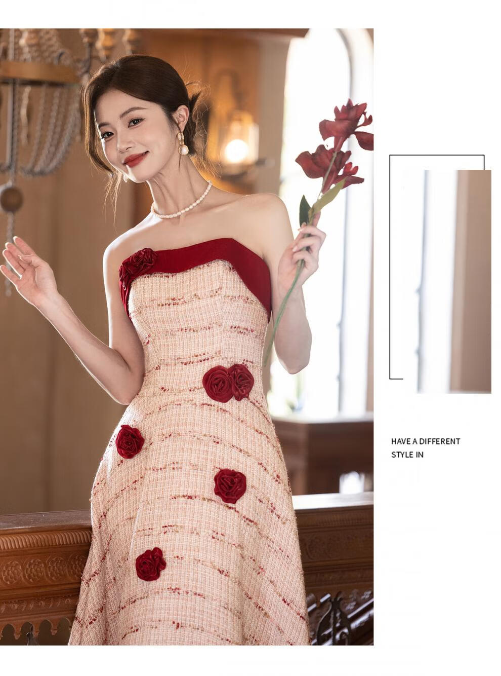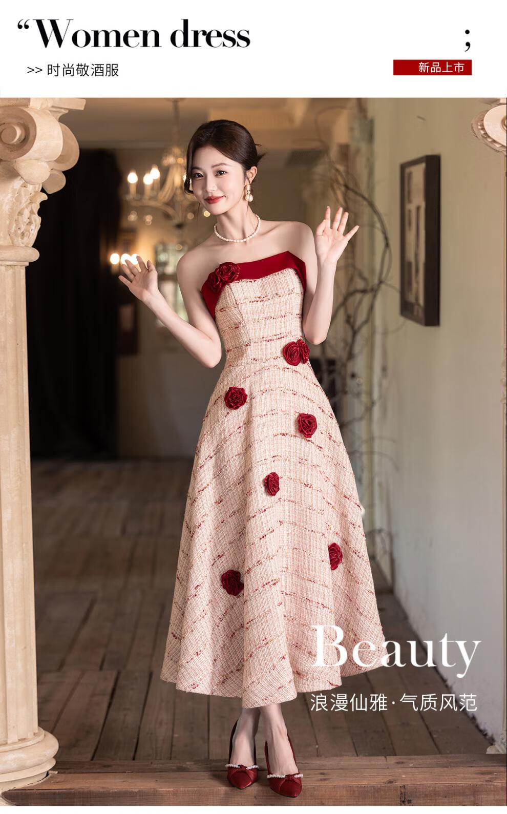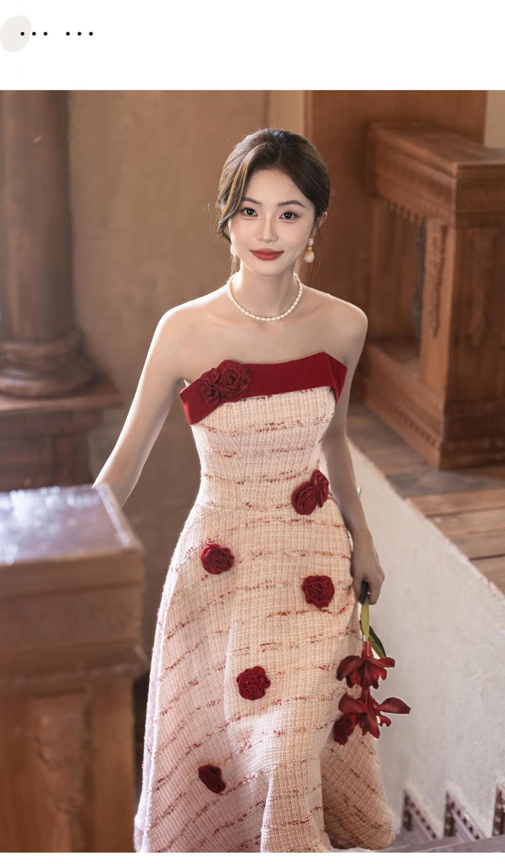 ACJK French toast dress bride 2025 new sexy tube top engagement dress dress pink home dressing gown for women pink_22352 M
