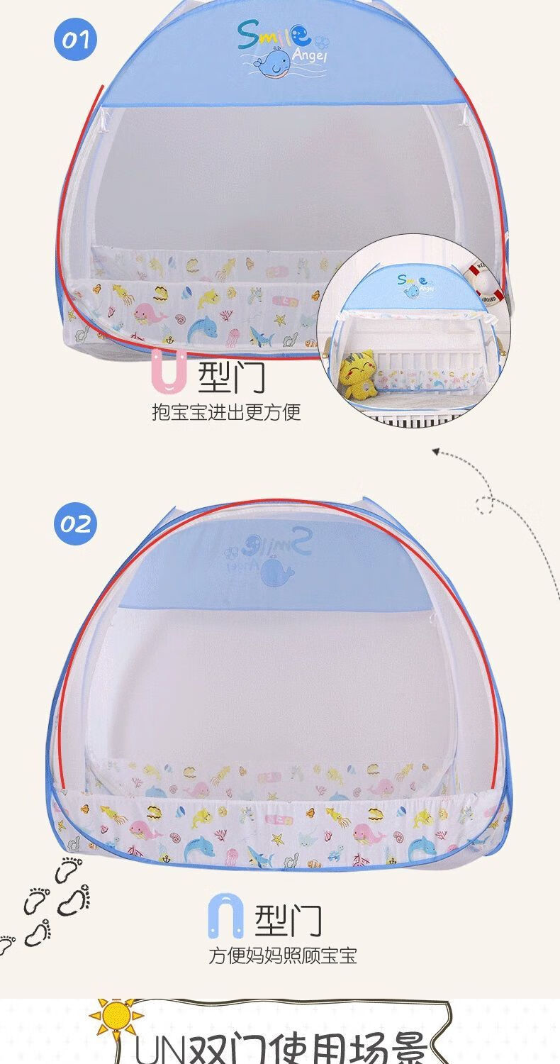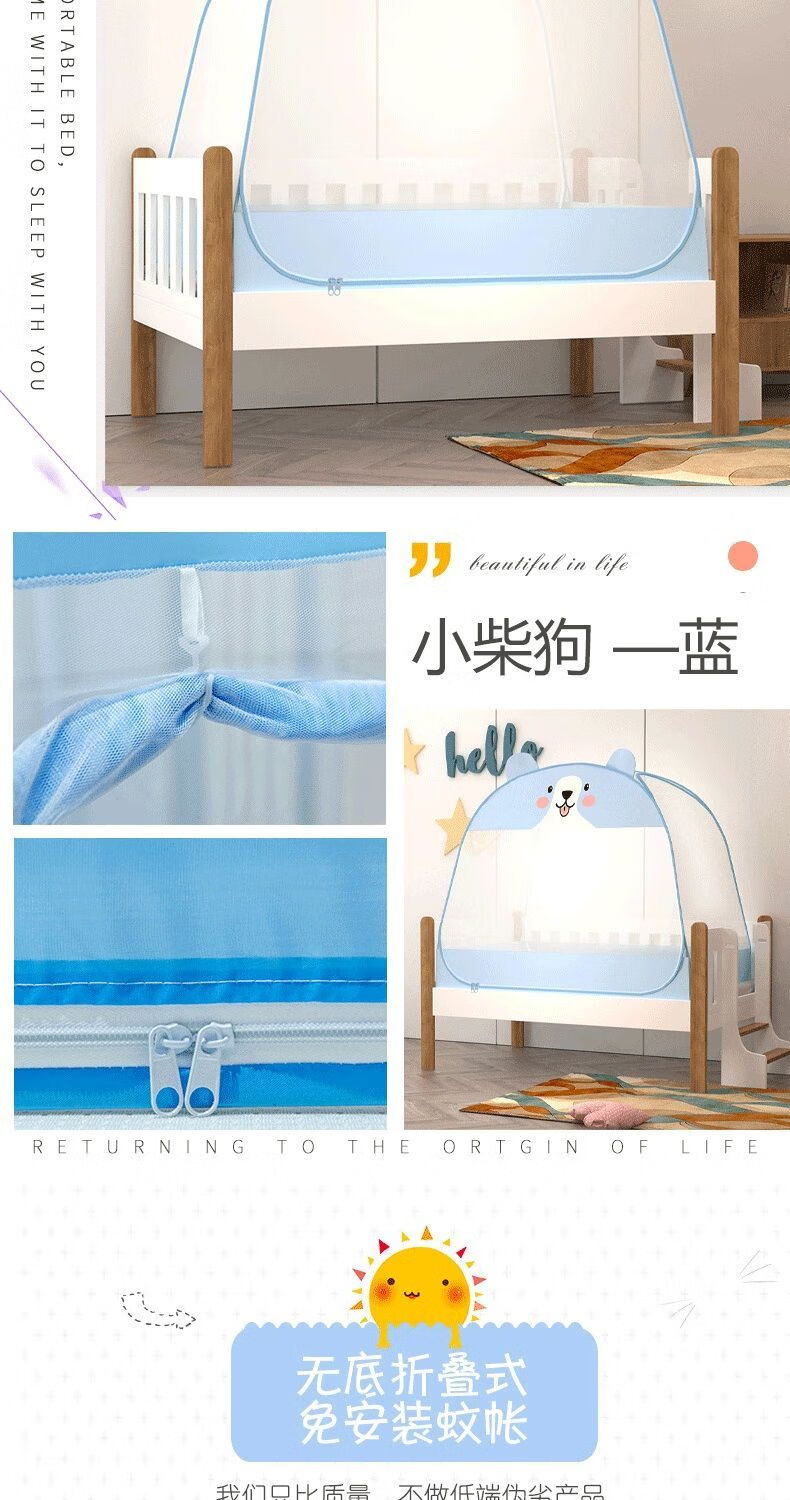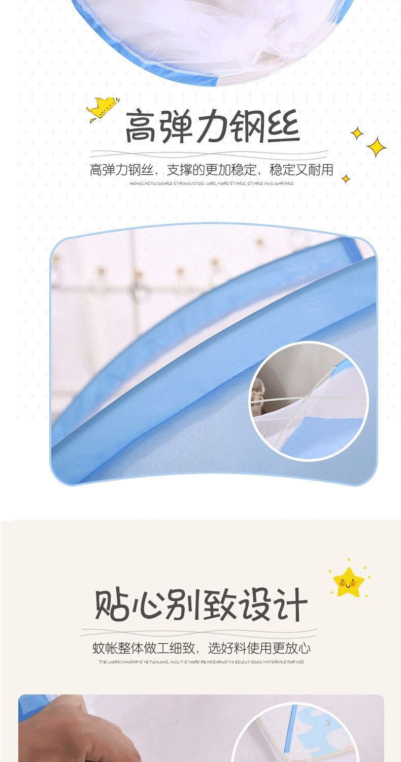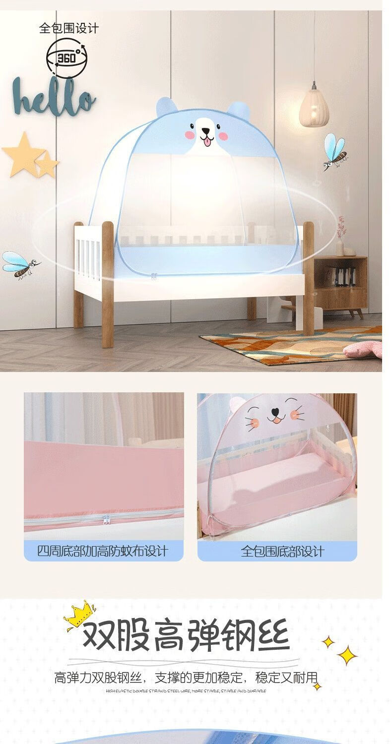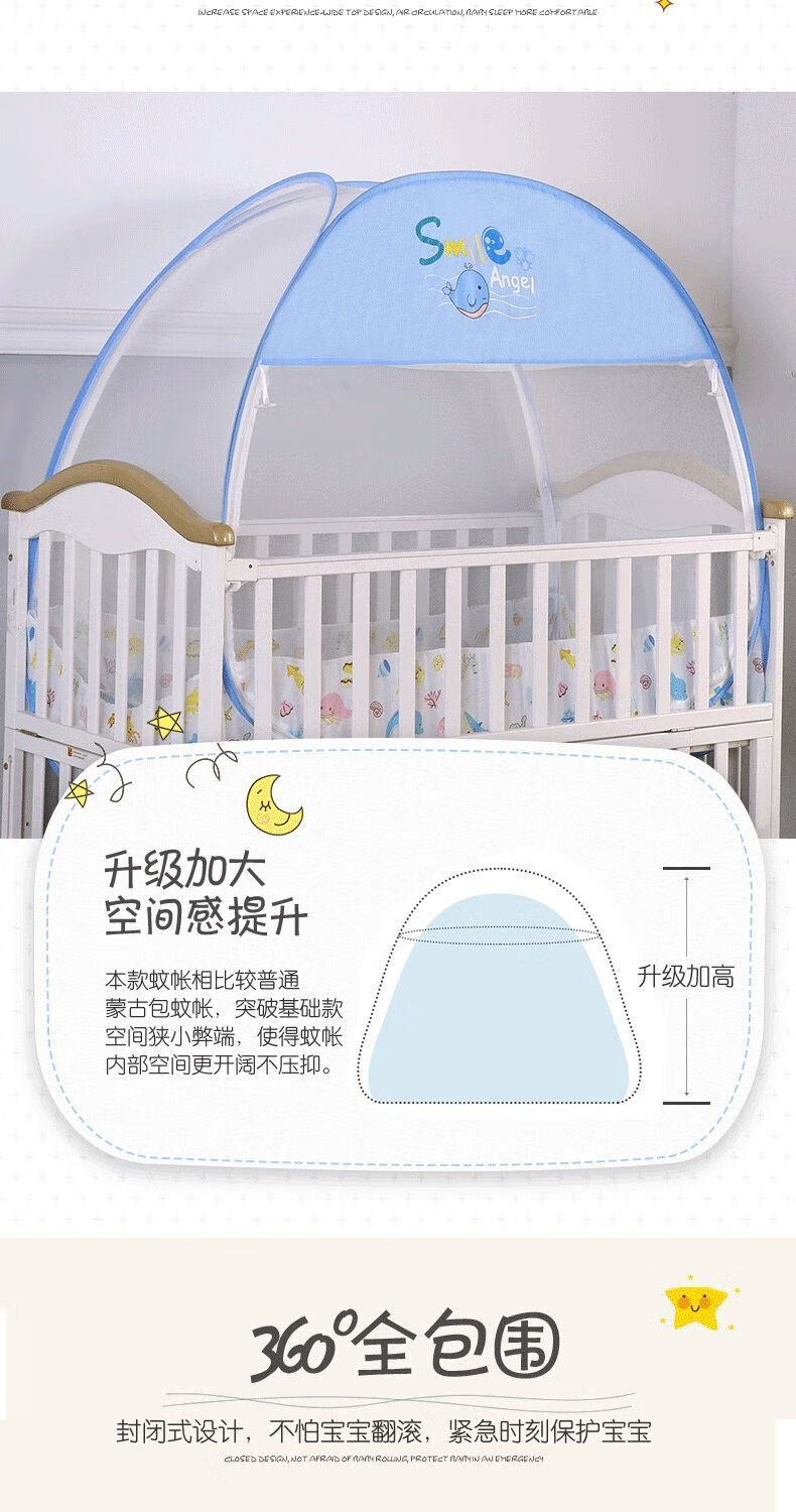Children's crib mosquito net Mongolian yurt full cover universal BB bed baby kindergarten mosquito net free of installation and foldable English three-door encrypted full bottom blue length 200*width 100*height 110cm