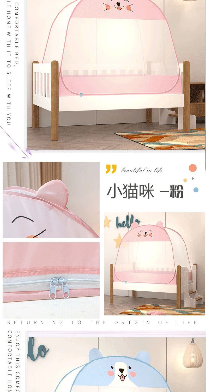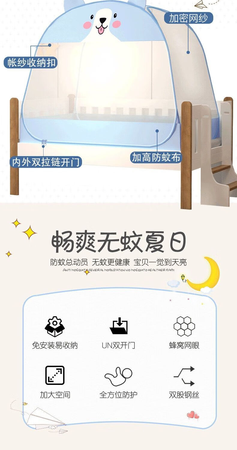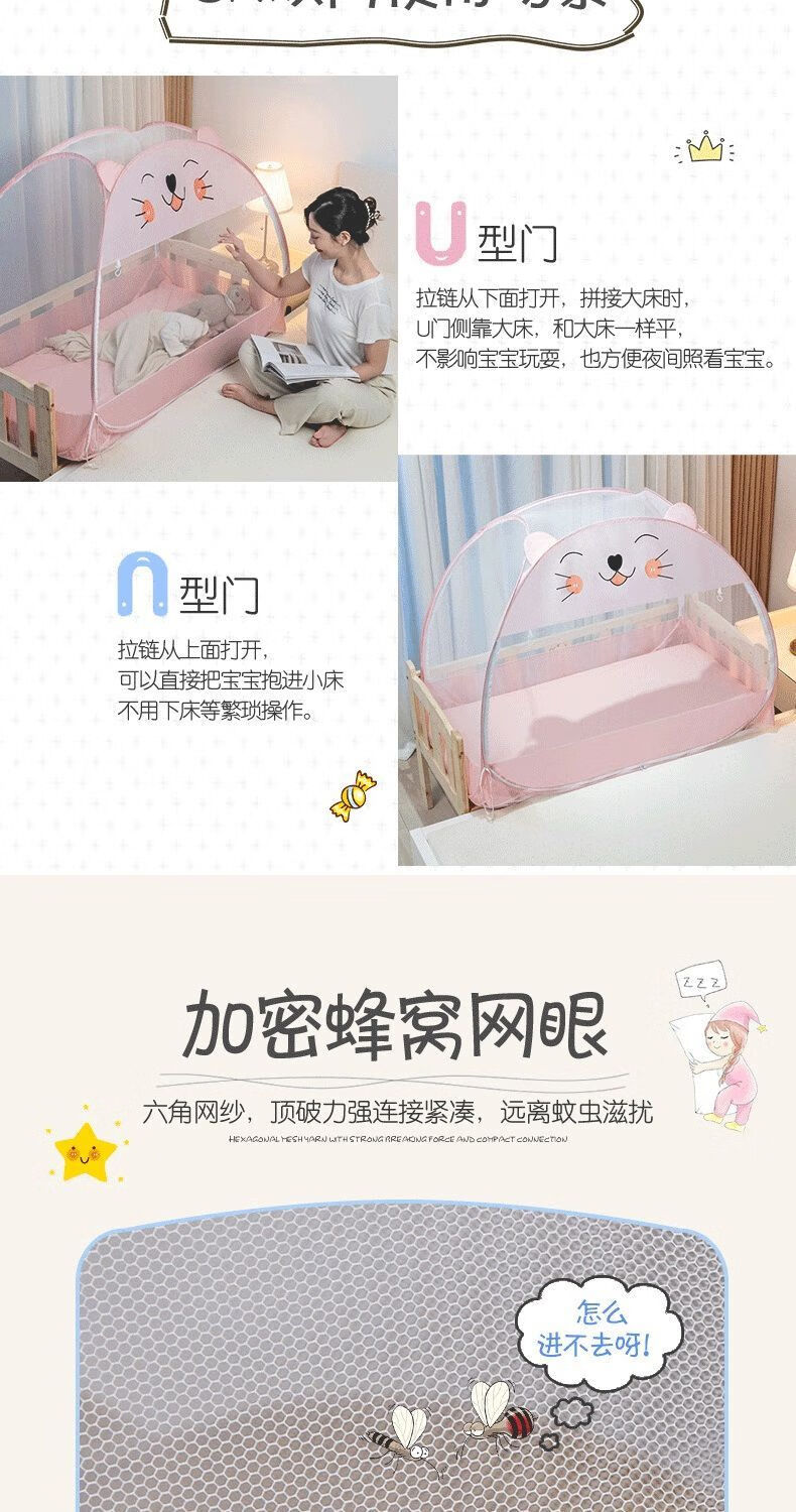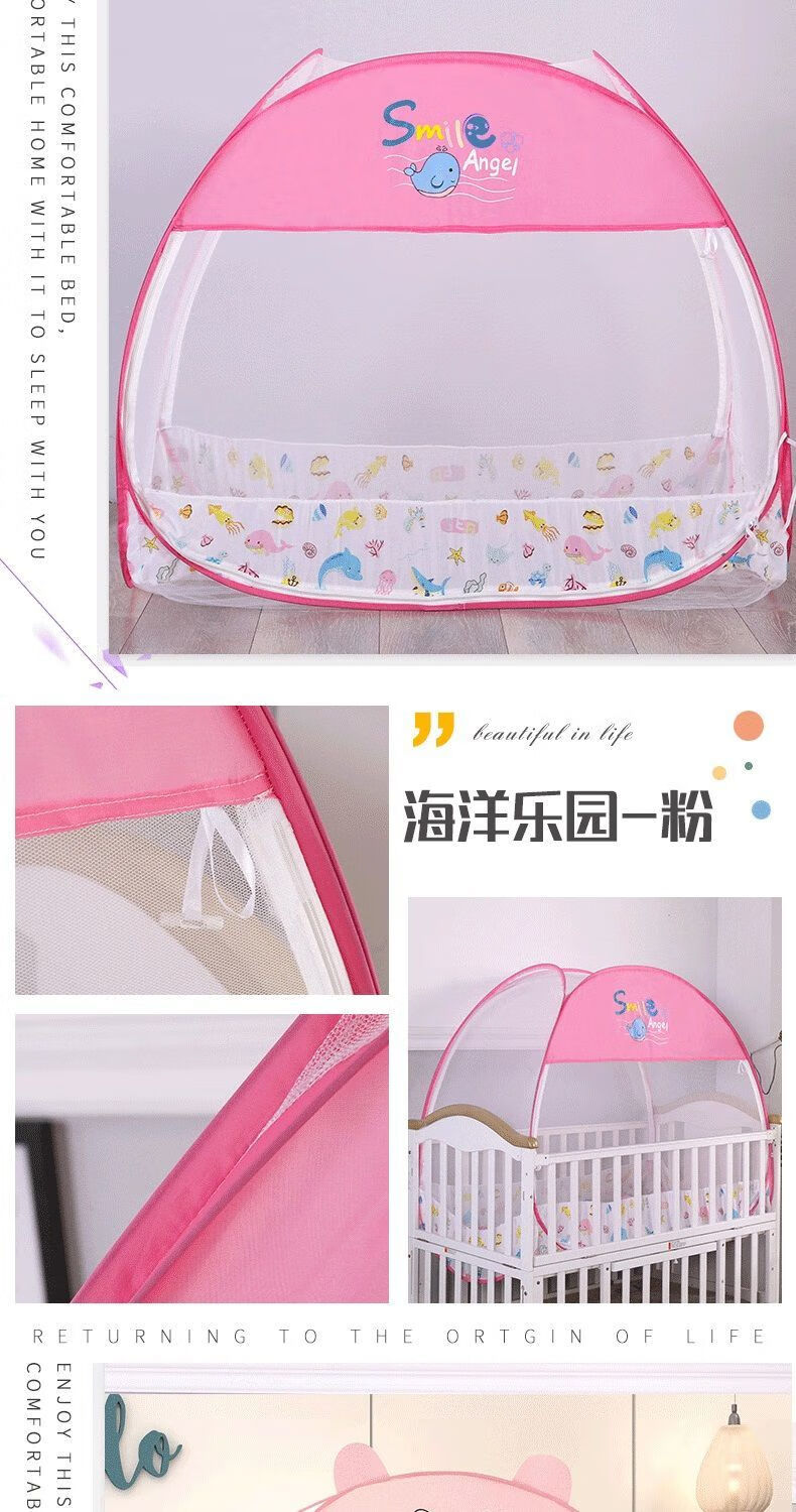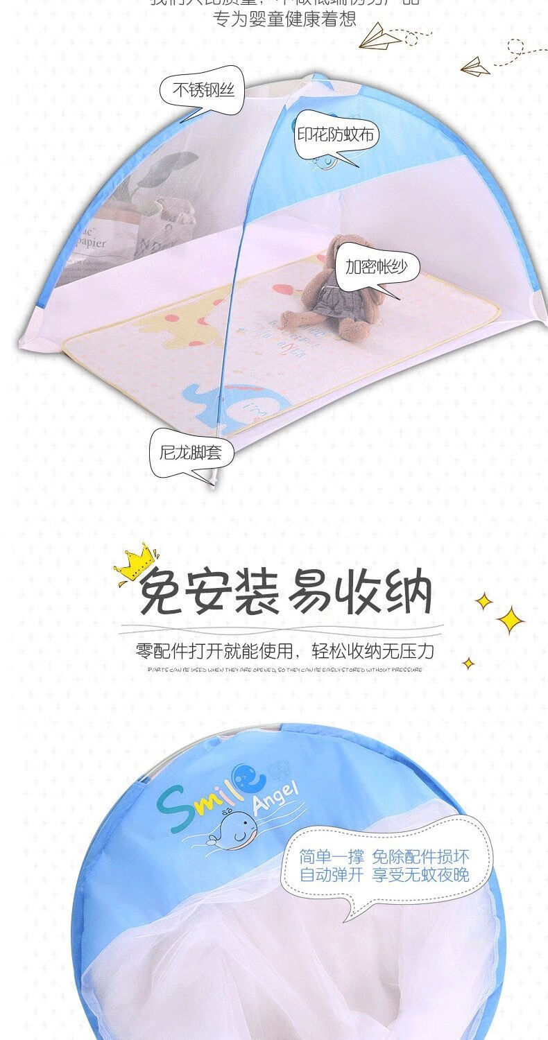 Children's crib mosquito net Mongolian yurt full cover universal BB bed baby kindergarten mosquito net free of installation and foldable English three-door encrypted full bottom blue length 200*width 100*height 110cm