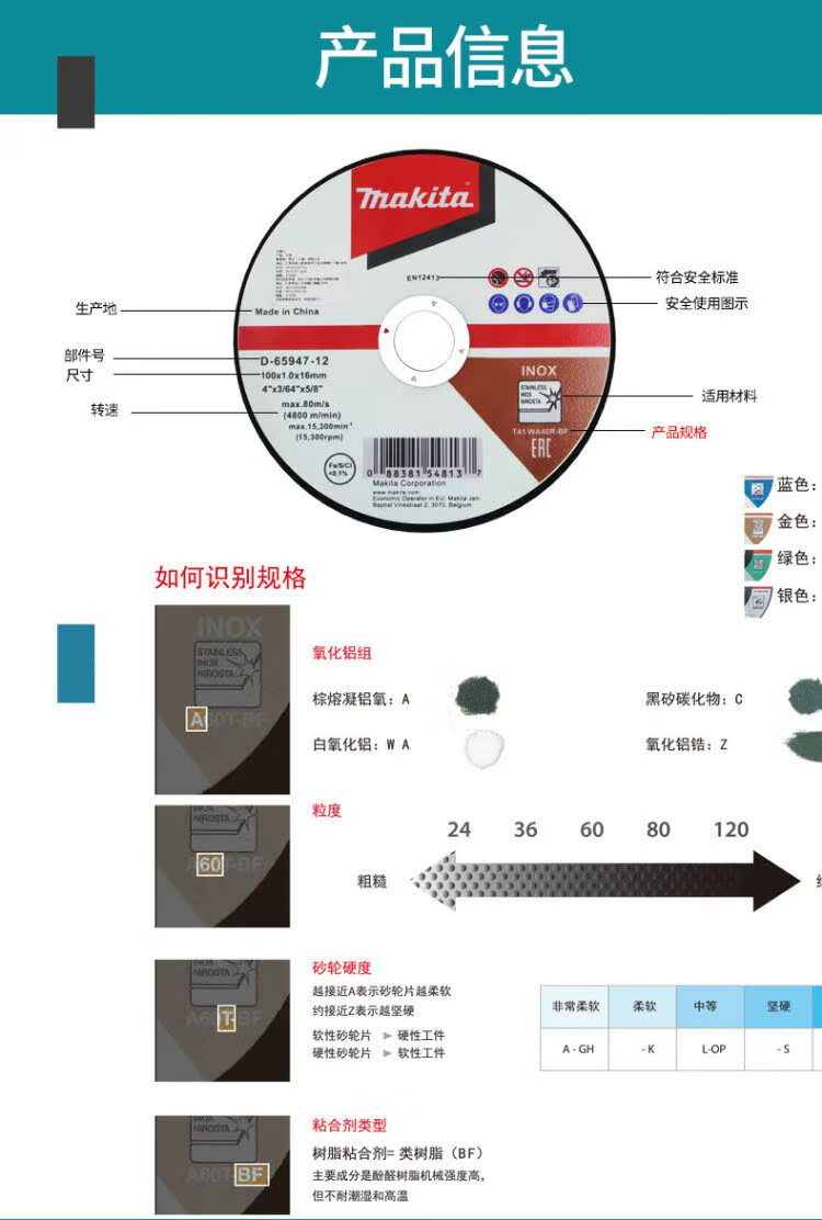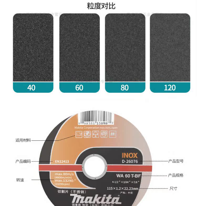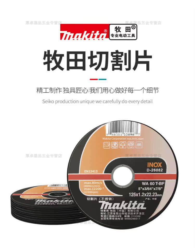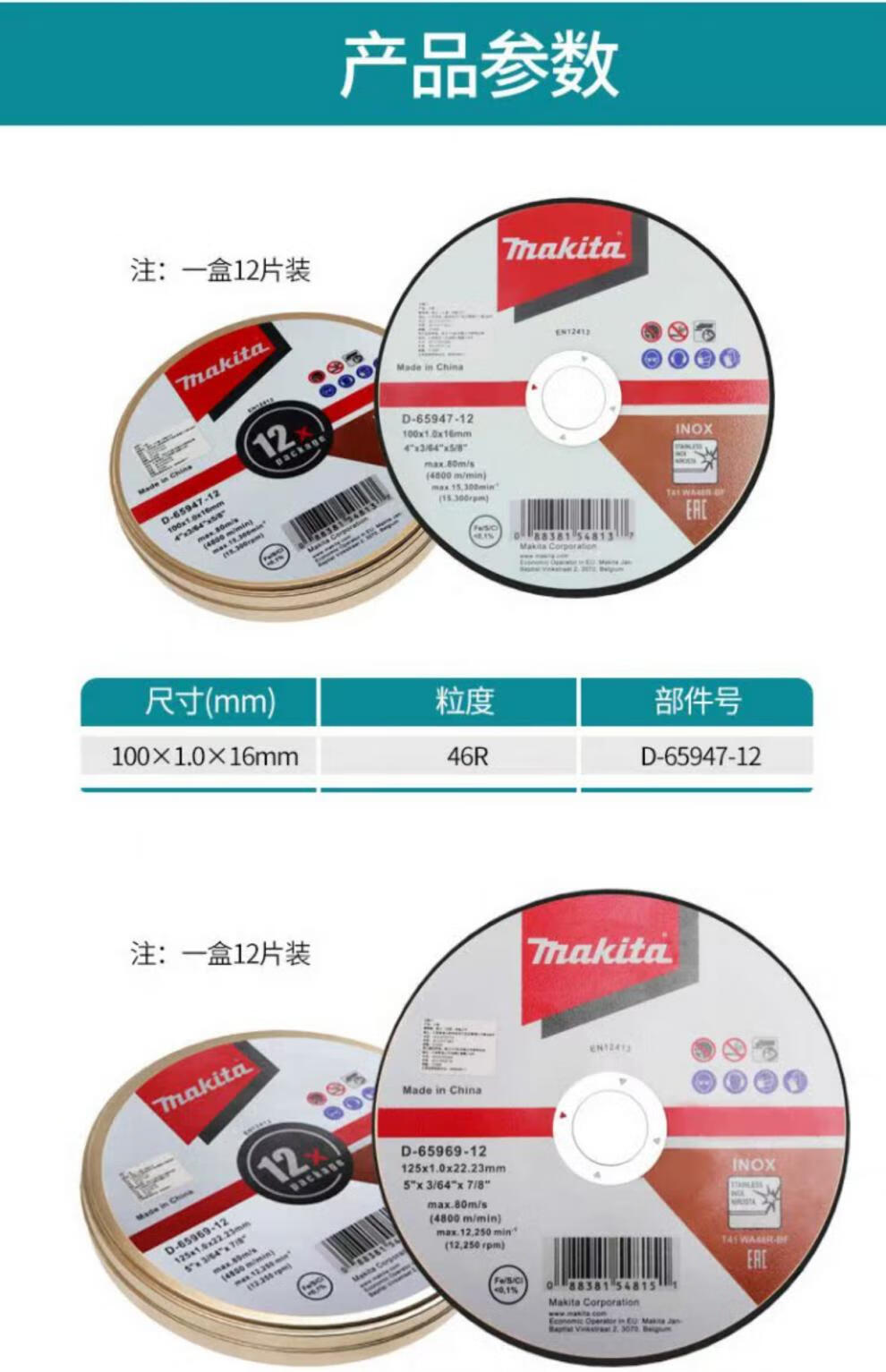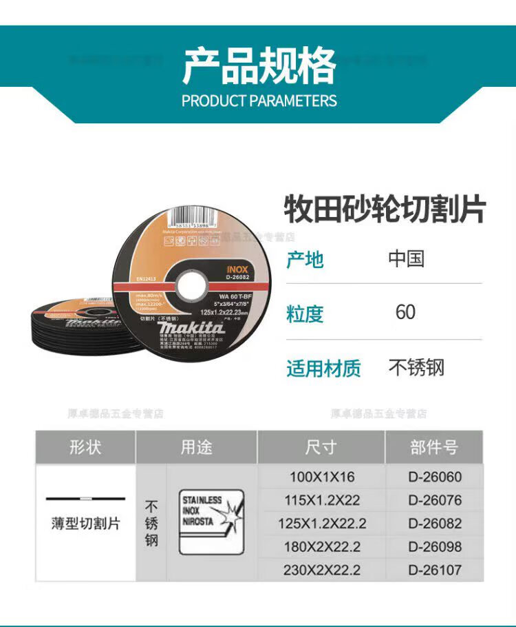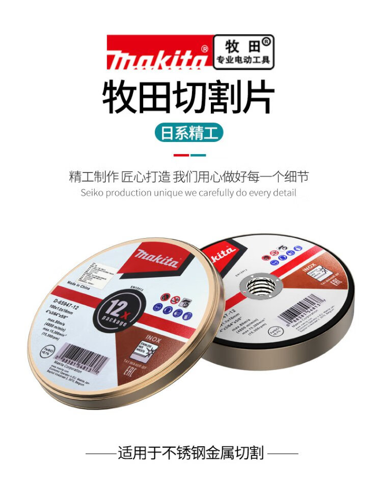 MAKITA Makita cutting disc 100 angle grinder metal stainless steel slicing grinding wheel disc set 125 Makita 100 1.0 16 twelve-piece iron box D-659