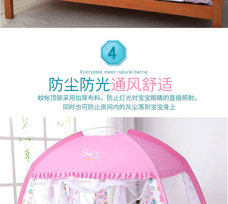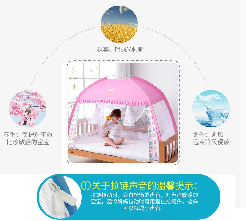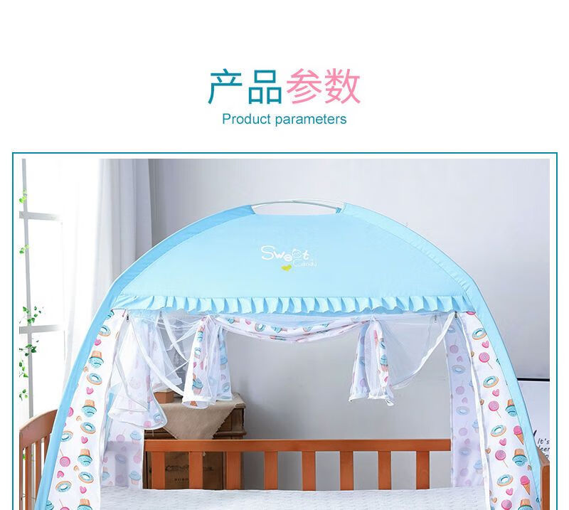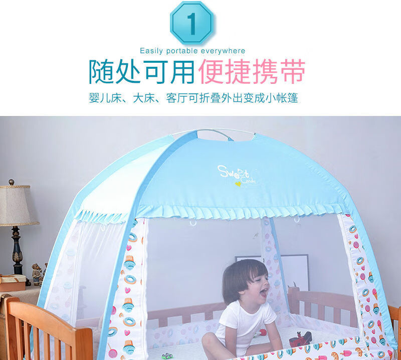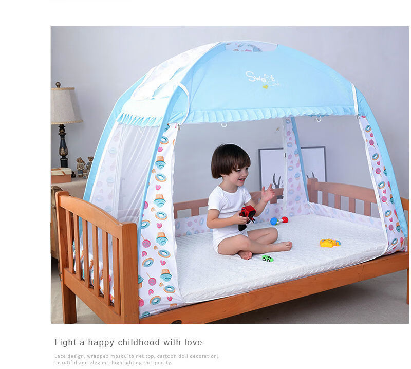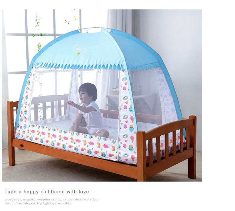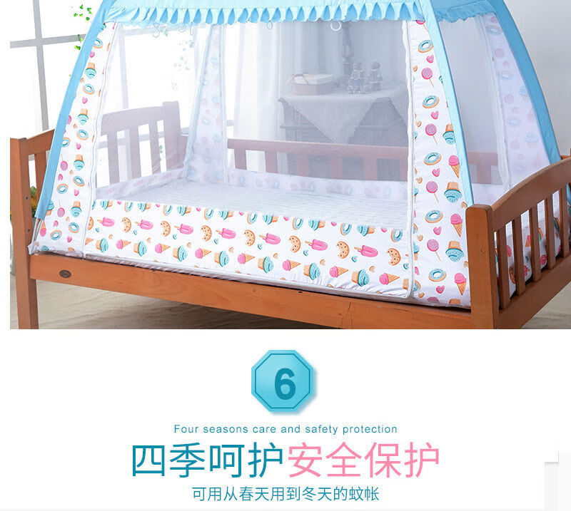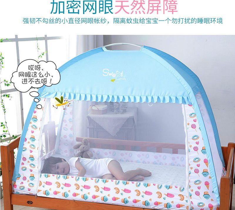 Children's bed mosquito net baby girl princess style pink boy baby universal folding anti-mosquito cover anti-fall yurt sky blue (length 150 width 80 height 120)