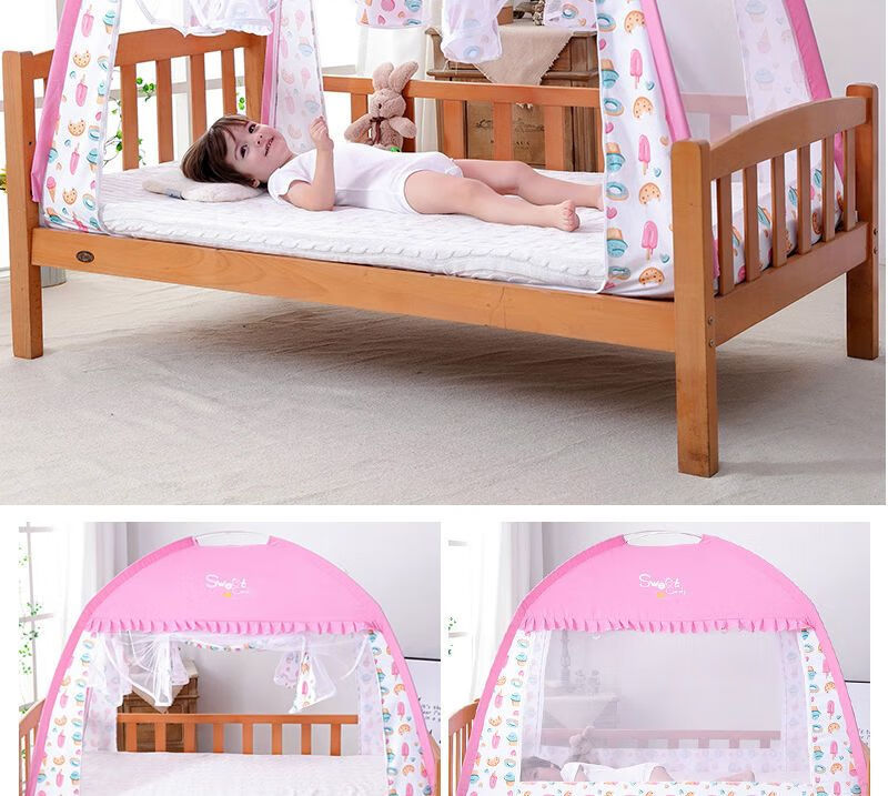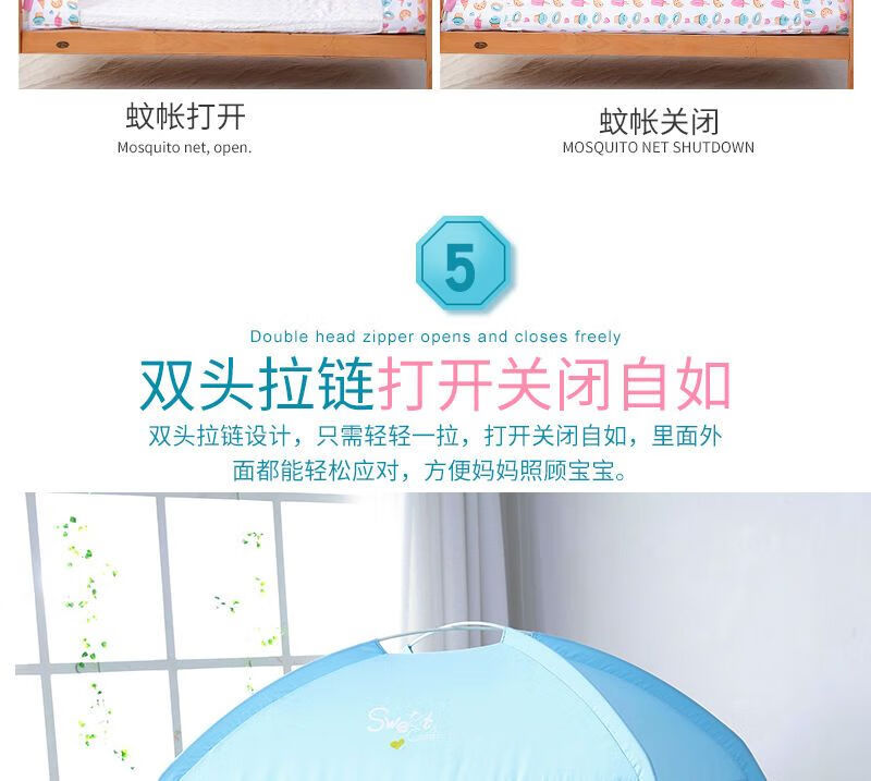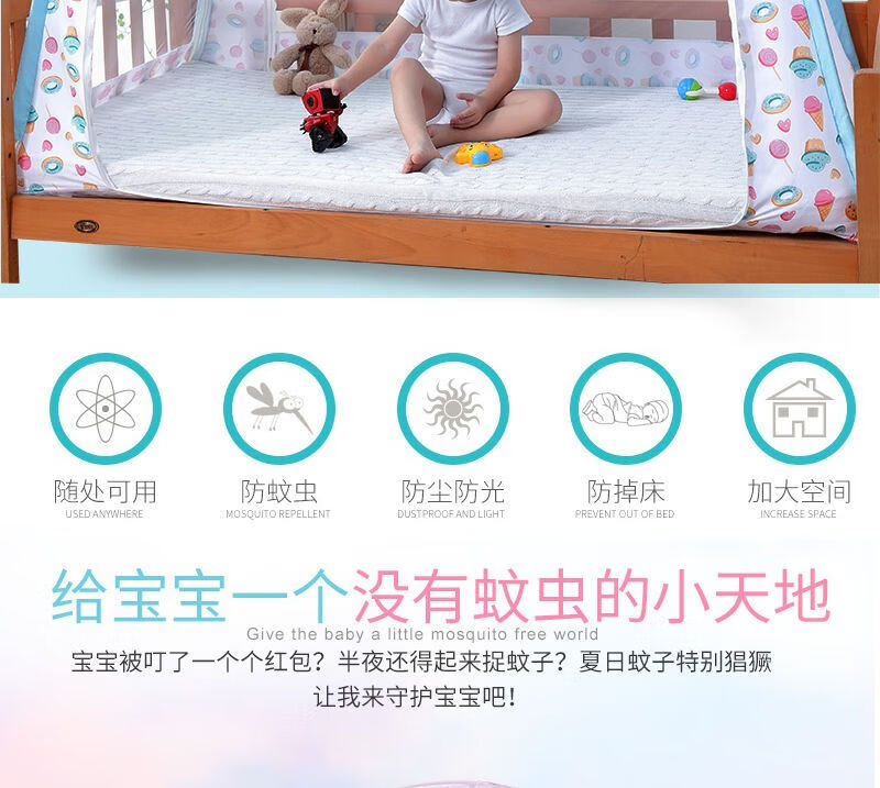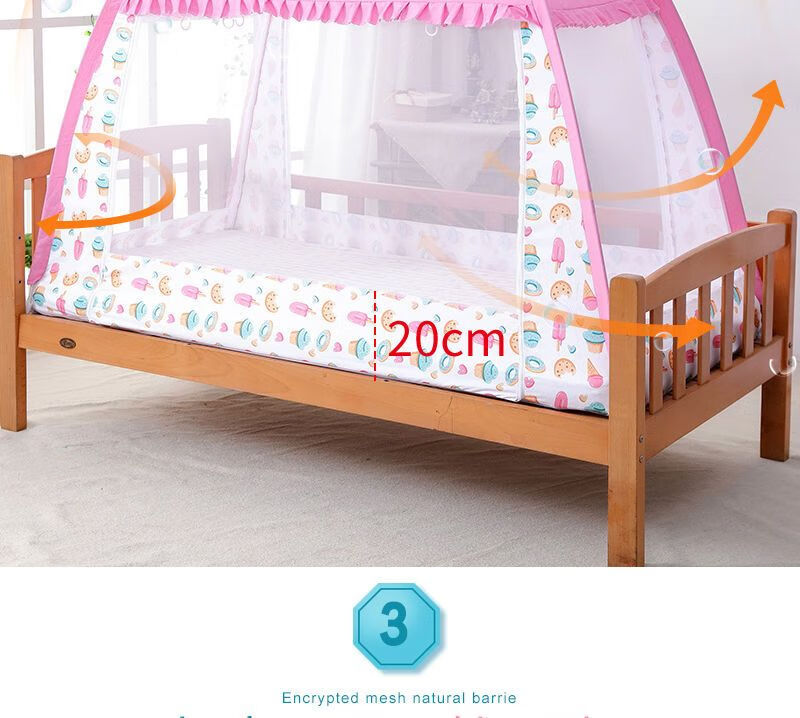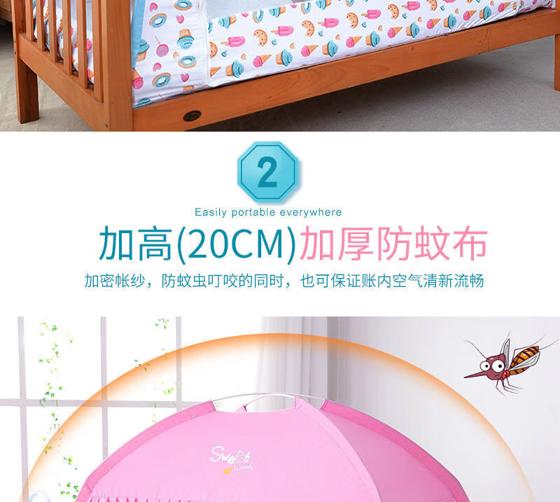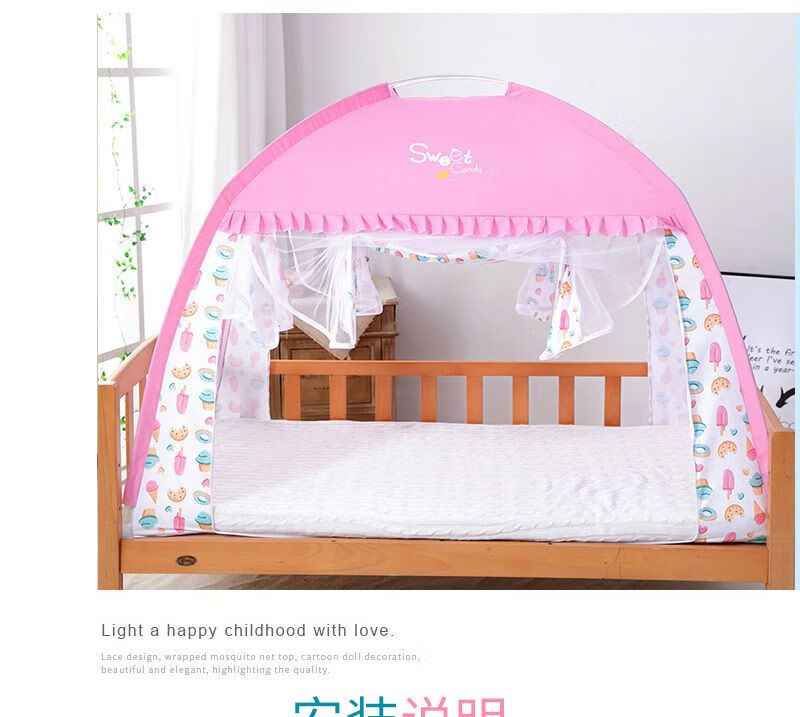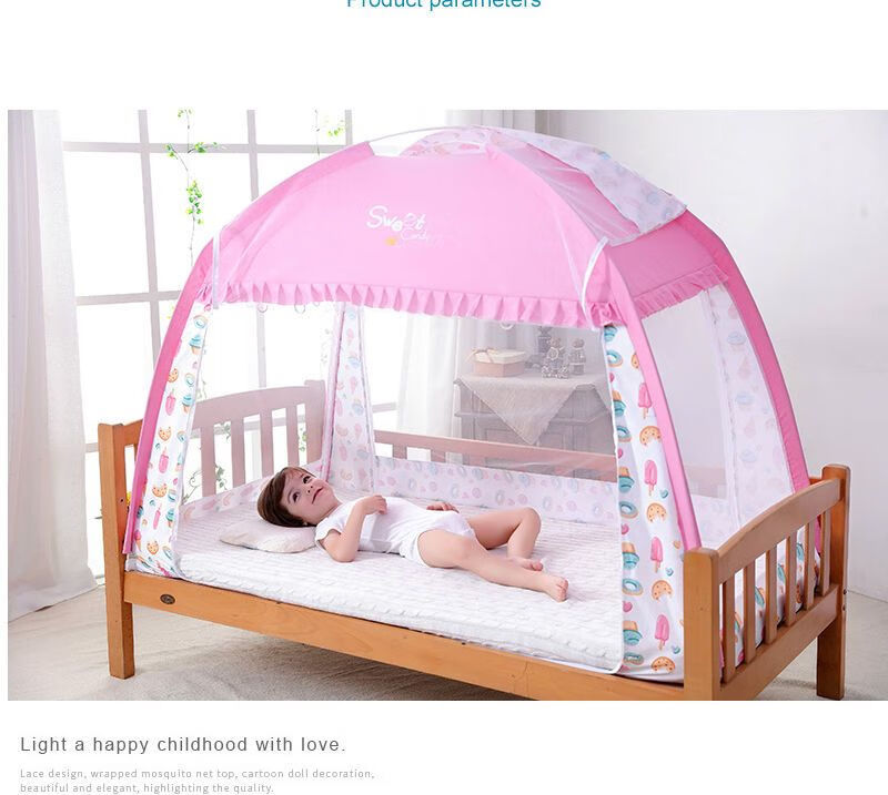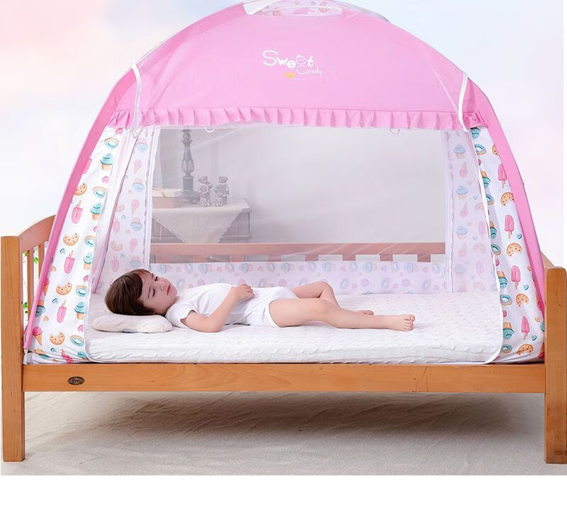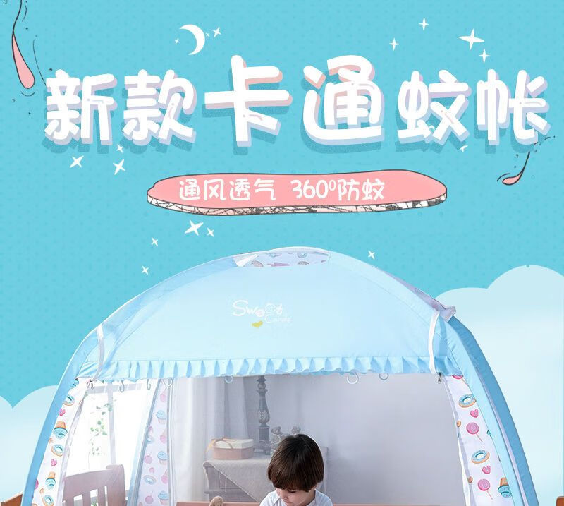 Children's bed mosquito net baby girl princess style pink boy baby universal folding anti-mosquito cover anti-fall yurt sky blue (length 150 width 80 height 120)
