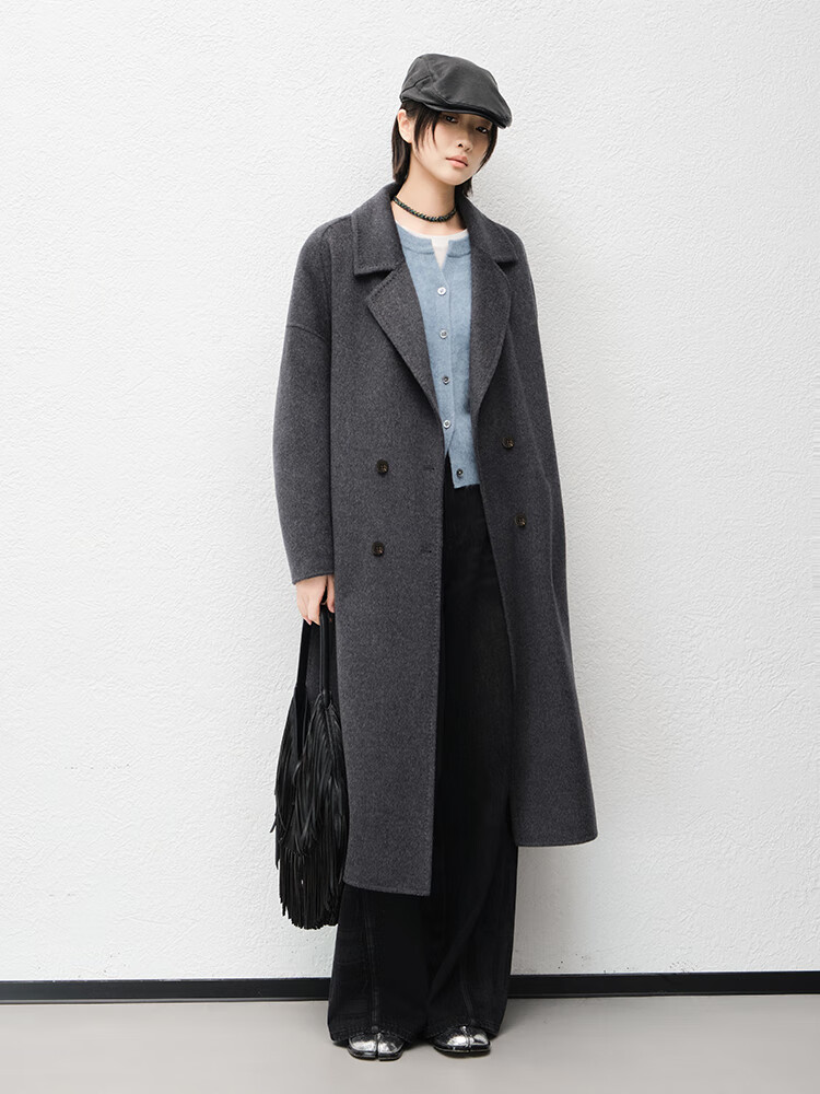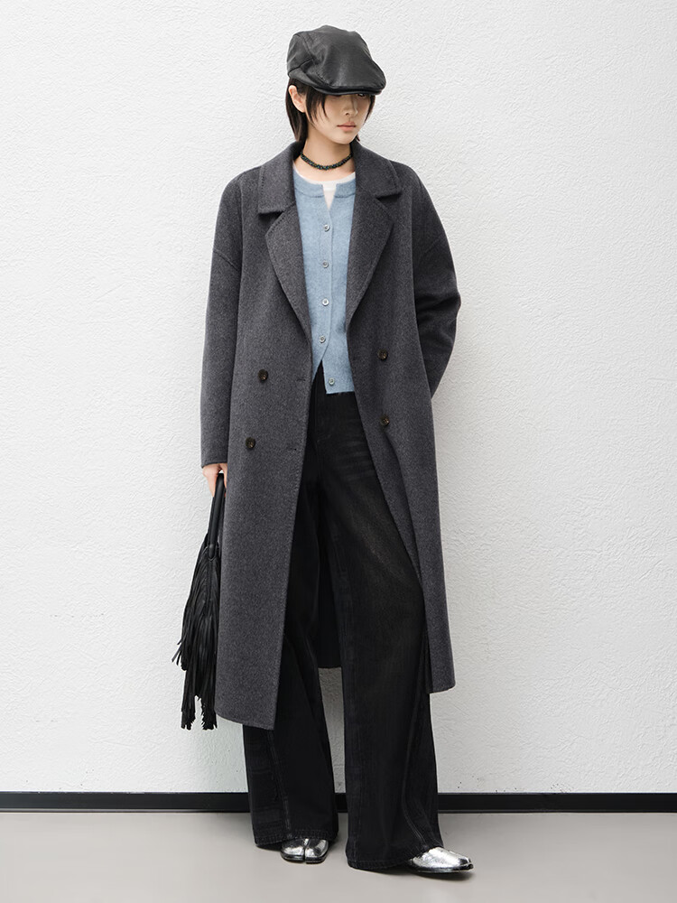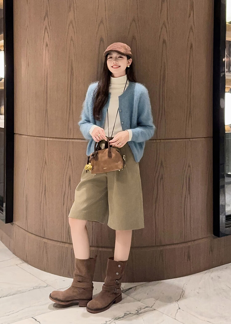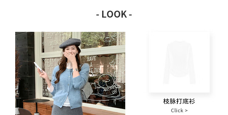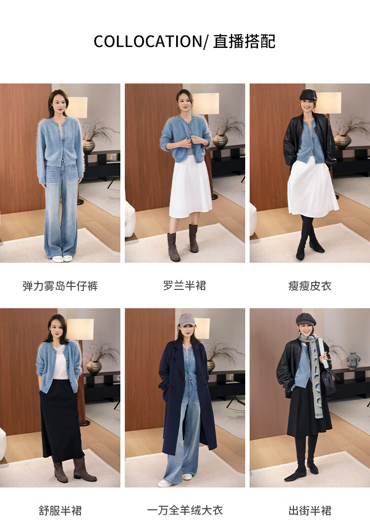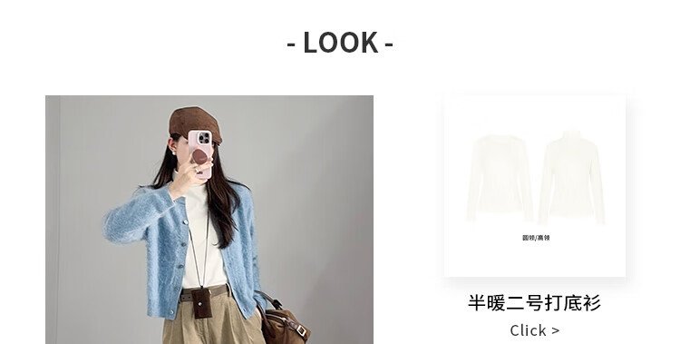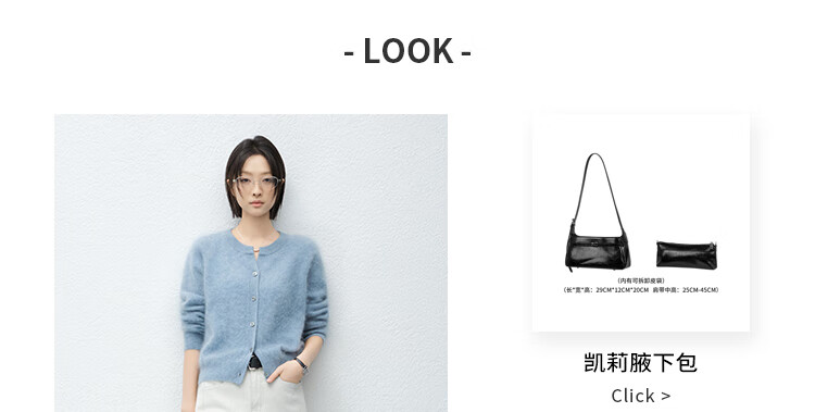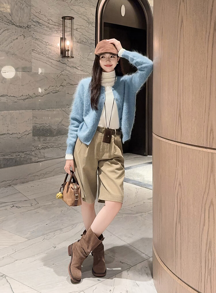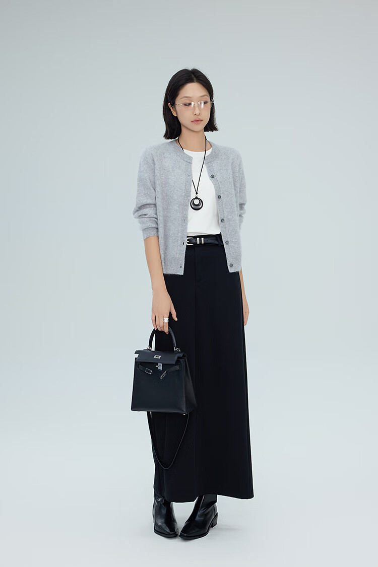MEIYANG cloud-like cashmere cardigan, all cashmere brushed round neck buttoned short sweater, soft and gentle winter style, blue gray M