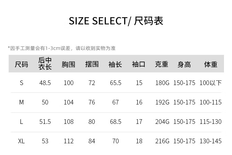 China (cm) 165 / 88-90 170 / 96-98 175 / 108-110 180 / 118-122 185 / 126-130