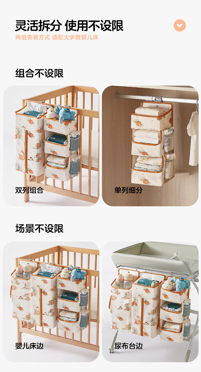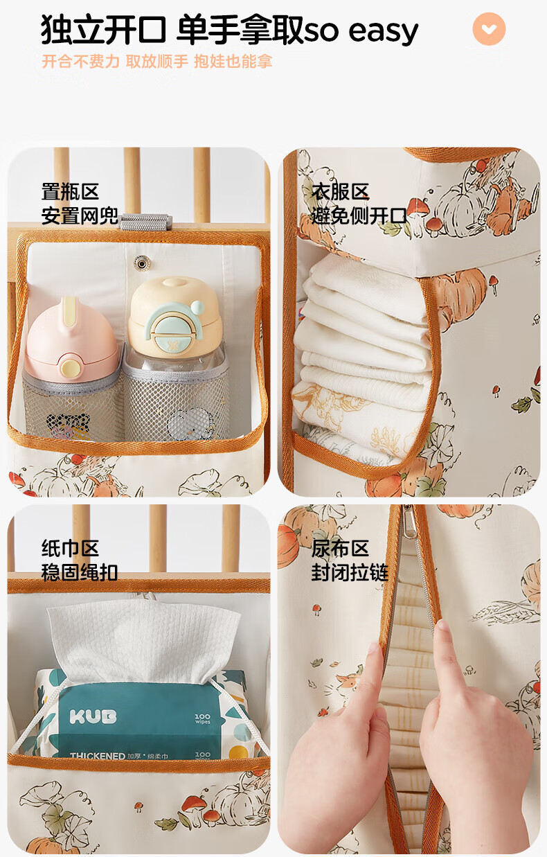 KUB KUB crib hanging storage bag hanging bag multifunctional diaper bag diaper storage bag hanging basket storage basic style of Downton Abbey