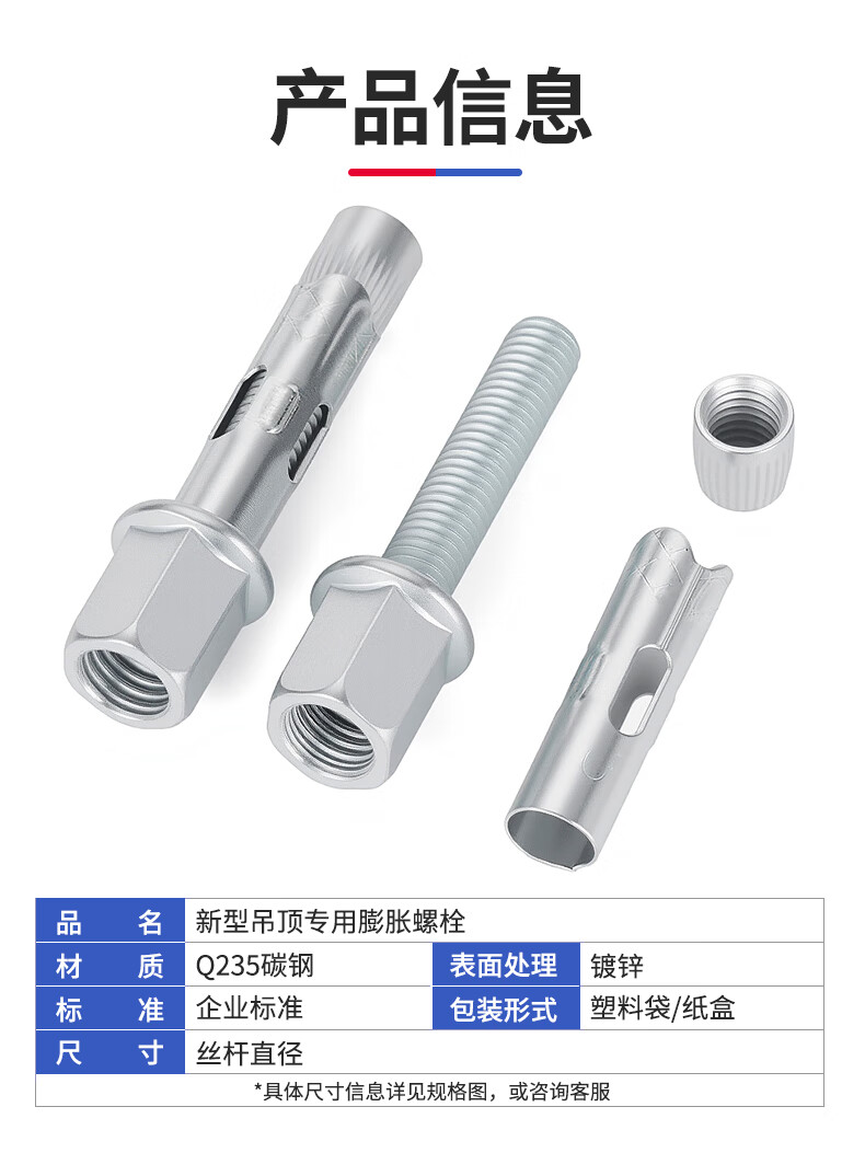 JINGGONG's new one-piece ceiling expansion bolts, self-cut expansion screws, one-piece screws, pull-expansion M8M10, new M8 screw rods for ceiling expansion (100 pcs/box)