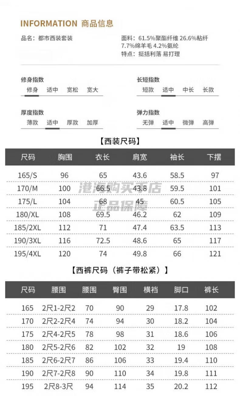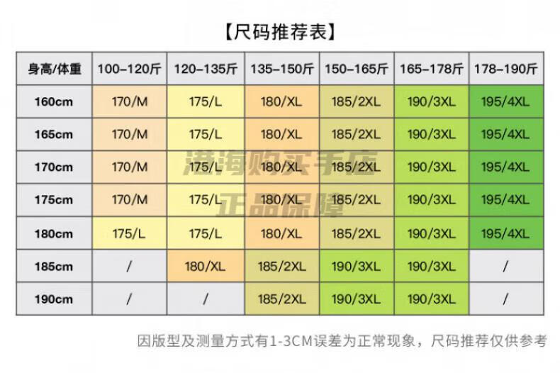 China (cm) 165 / 88-90 170 / 96-98 175 / 108-110 180 / 118-122 185 / 126-130