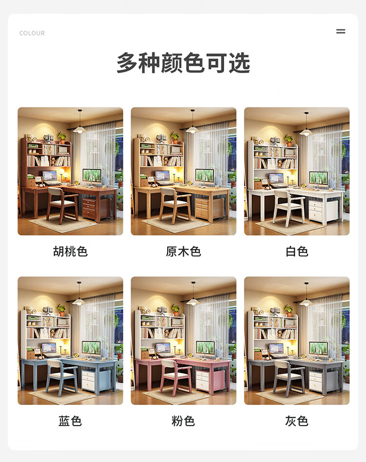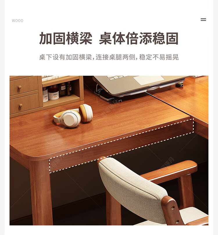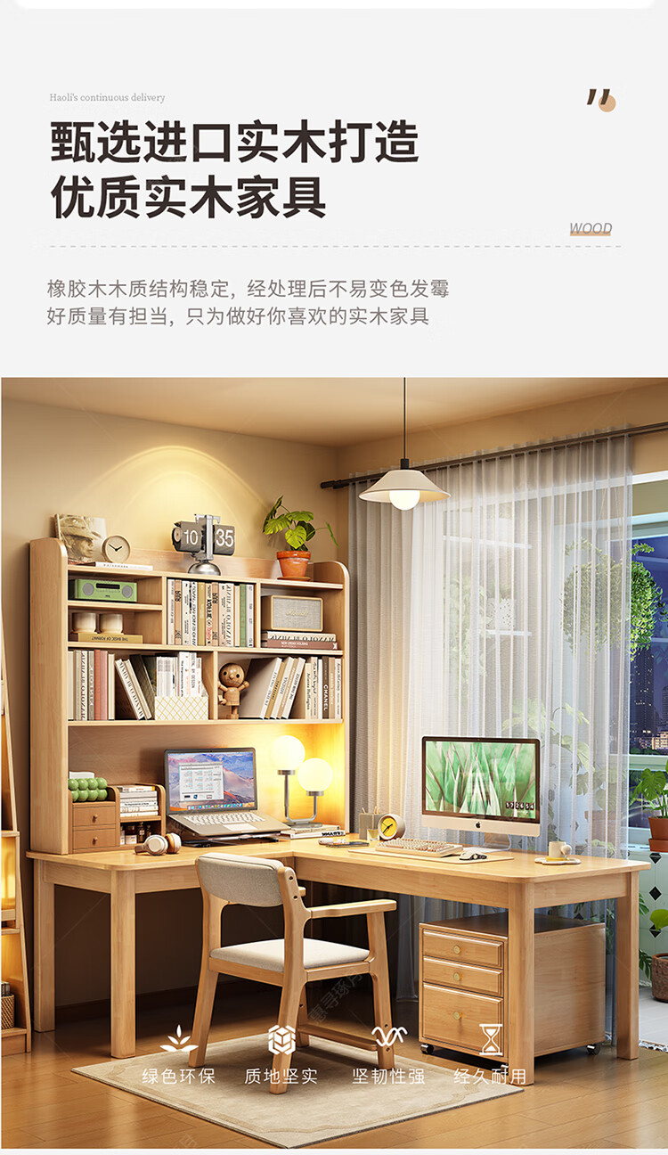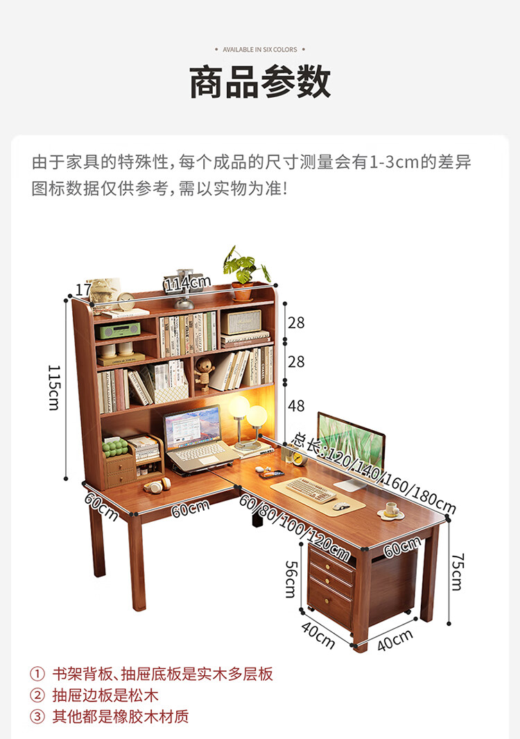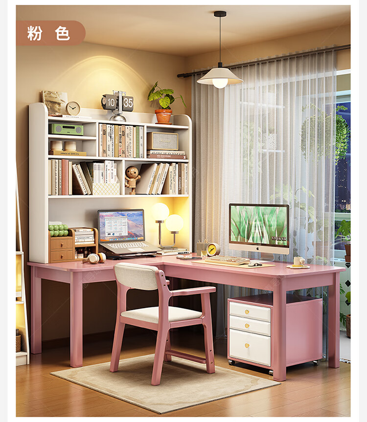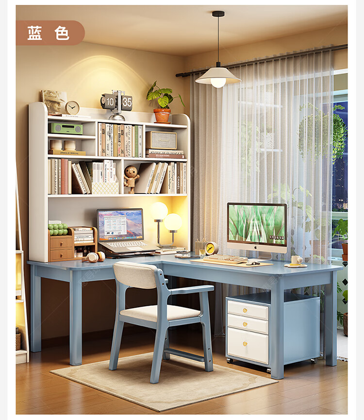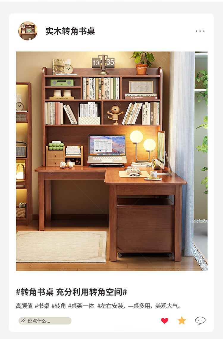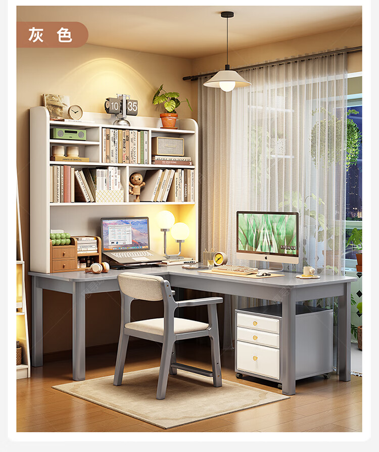 Huixun solid wood corner desk bookshelf integrated home corner L-shaped computer desk 7-shaped workbench semi-surrounded study table walnut color #desk + bookshelf 120cm*60cm*190cm auxiliary seat length 120cm