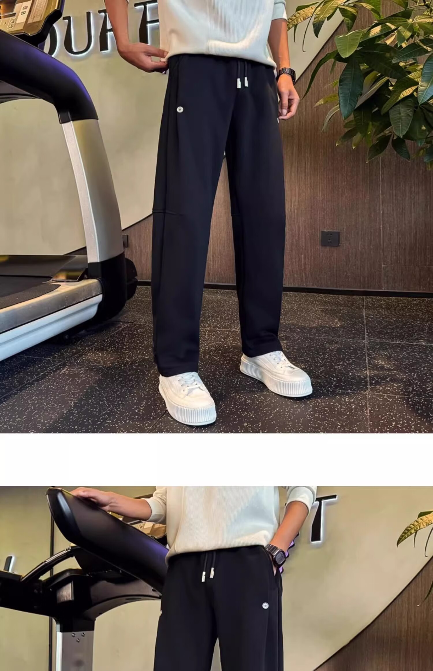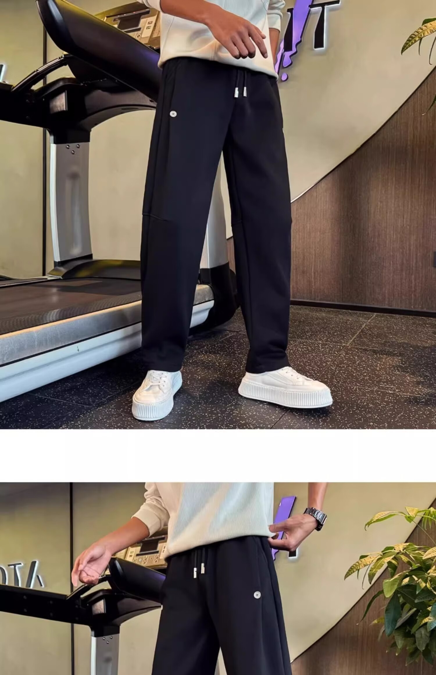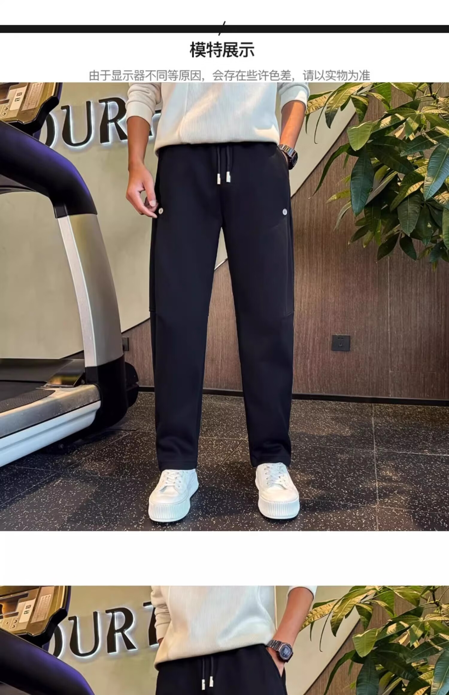 Kuraishi Kazuki autumn and winter straight sweatpants men's plus velvet wide-leg loose sports pants handsome trendy men's pants new casual pants black plus velvet 3XL