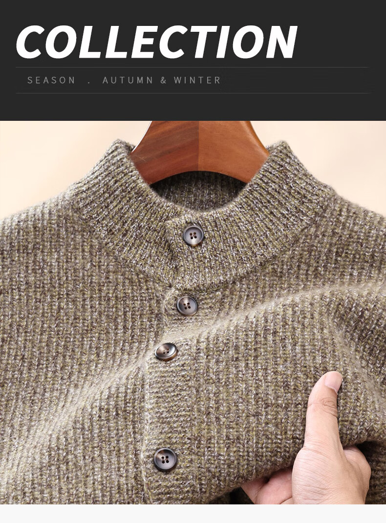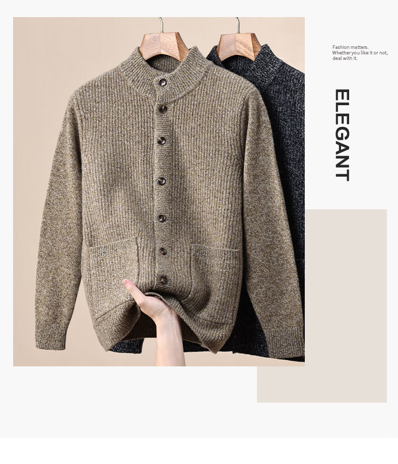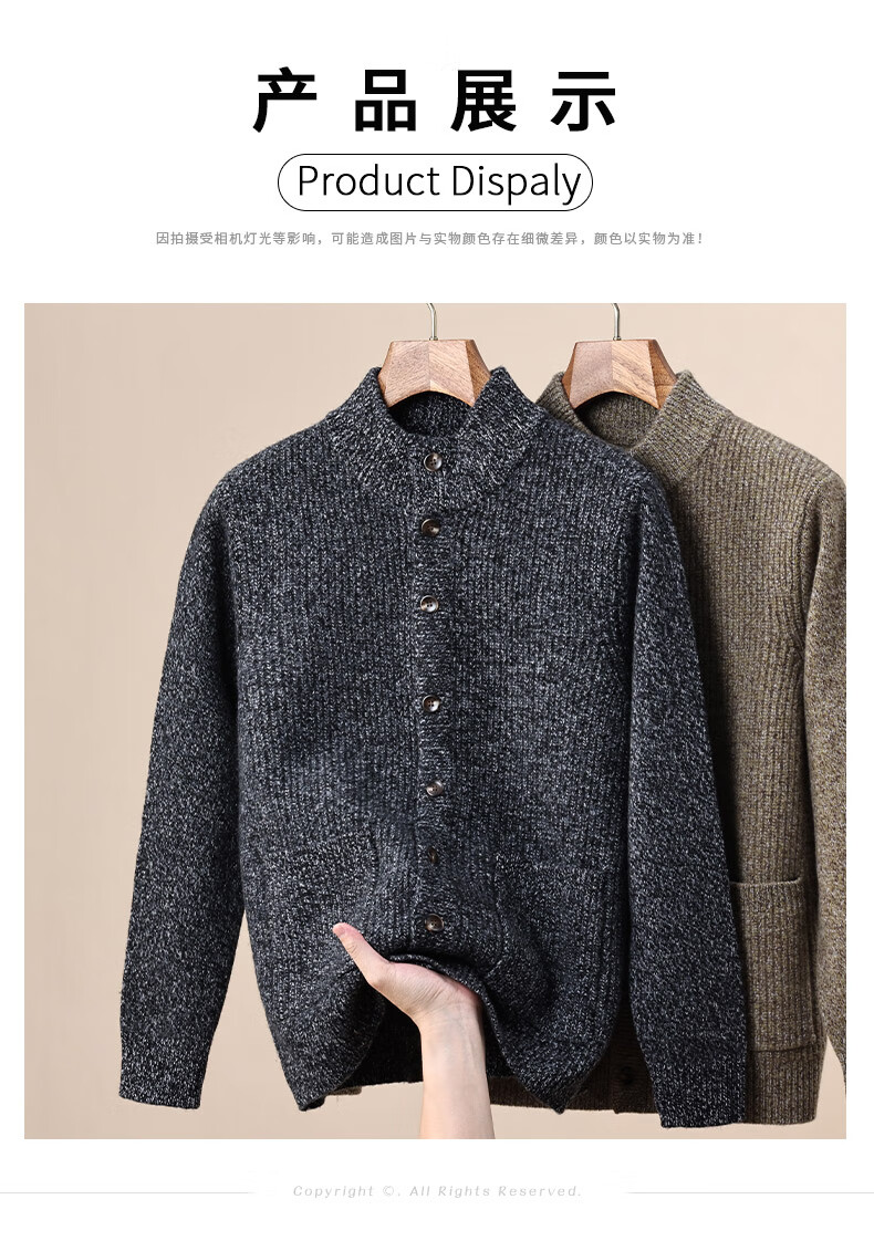 Hengyuanxiang 100% Pure Wool Sweater Men's Autumn and Winter New Casual Real Pocket Sweater Men's Knitted Cardigan Jacket with Buttons for Men Sand Brown XL Recommended 140-160 Jin Jin equals 0.5 kg