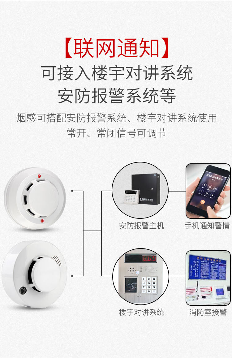 Fire wired smoke alarm 12V24V smoke switch signal can be linked to the video intercom system. 100 pieces only. Contact customer service. Large quantity discount.